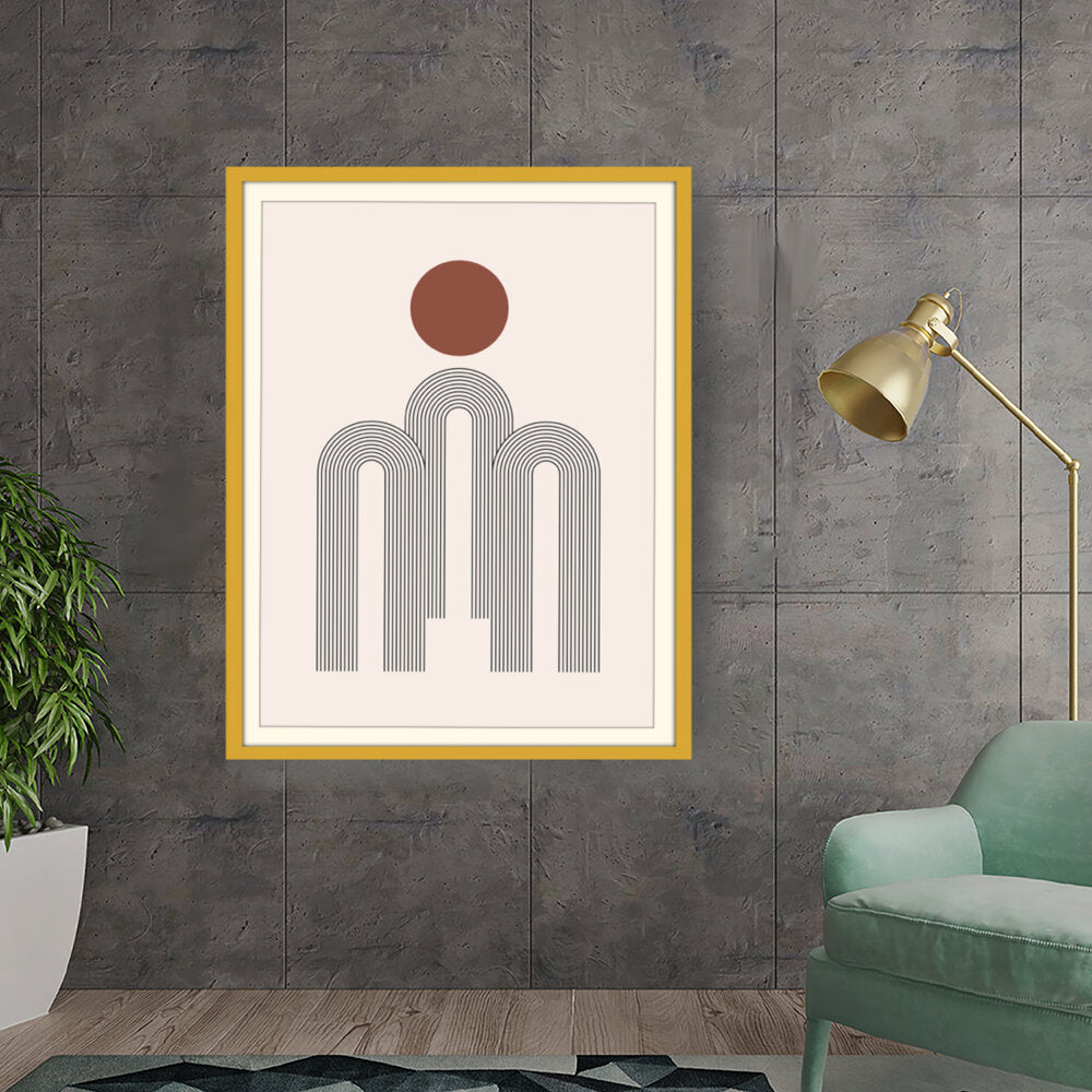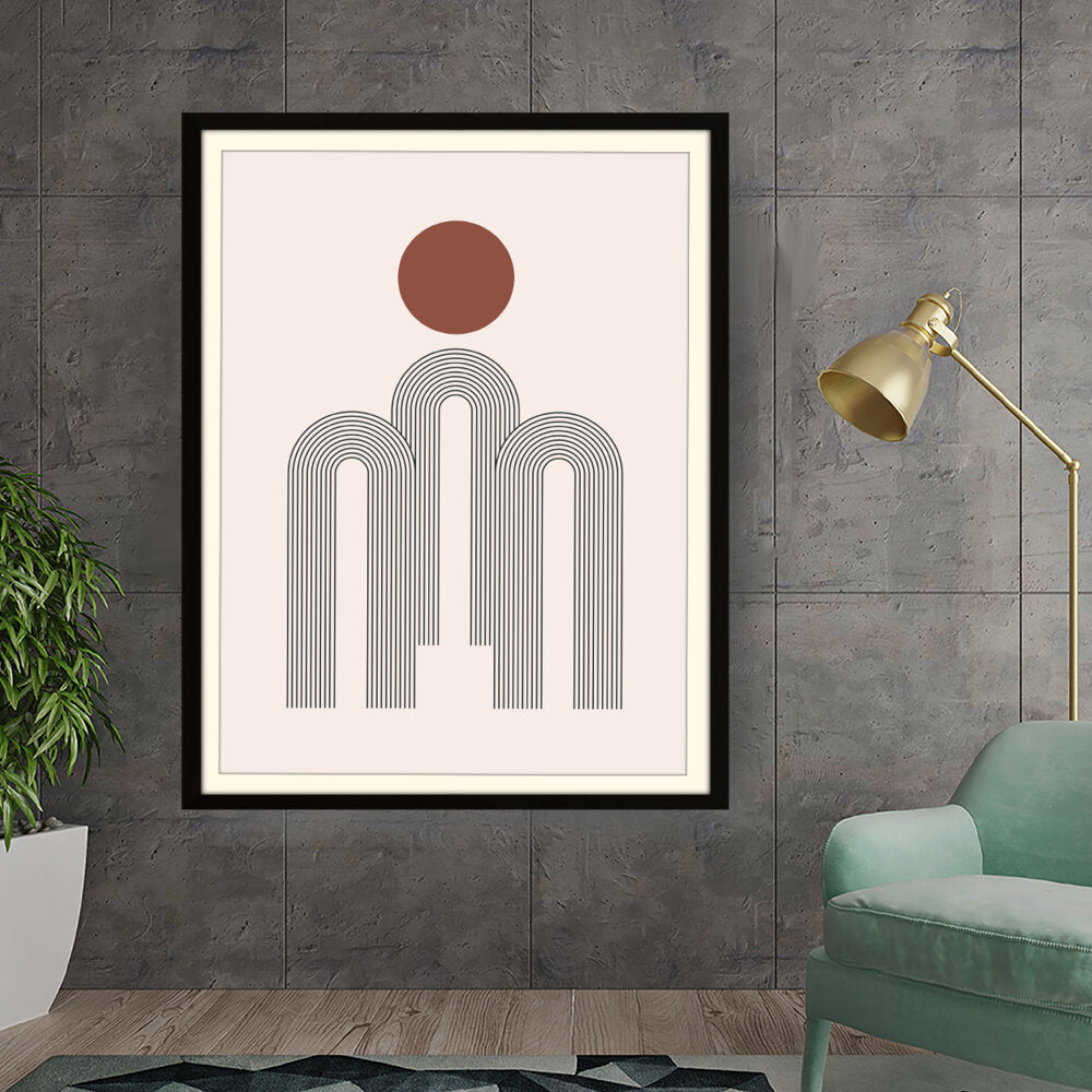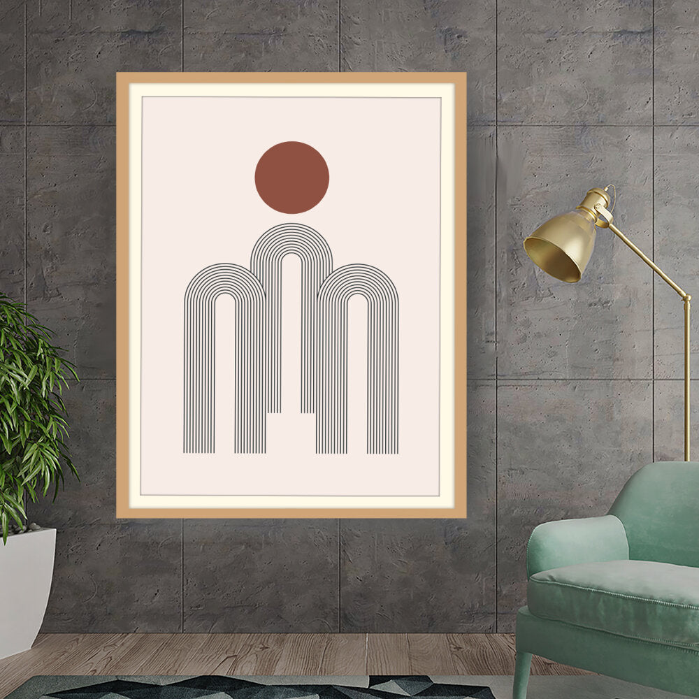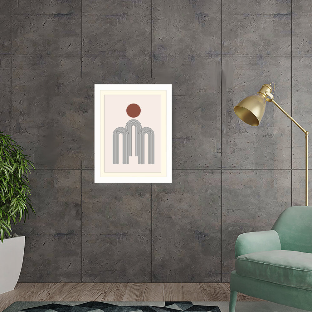 This artwork features a harmonious composition of geometric shapes with minimalistic design. The contrasting colors create a soothing and modern aesthetic suitable for various interiors.