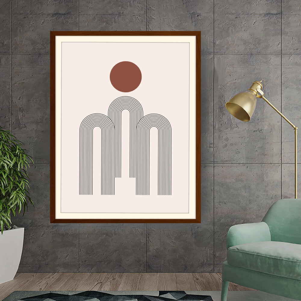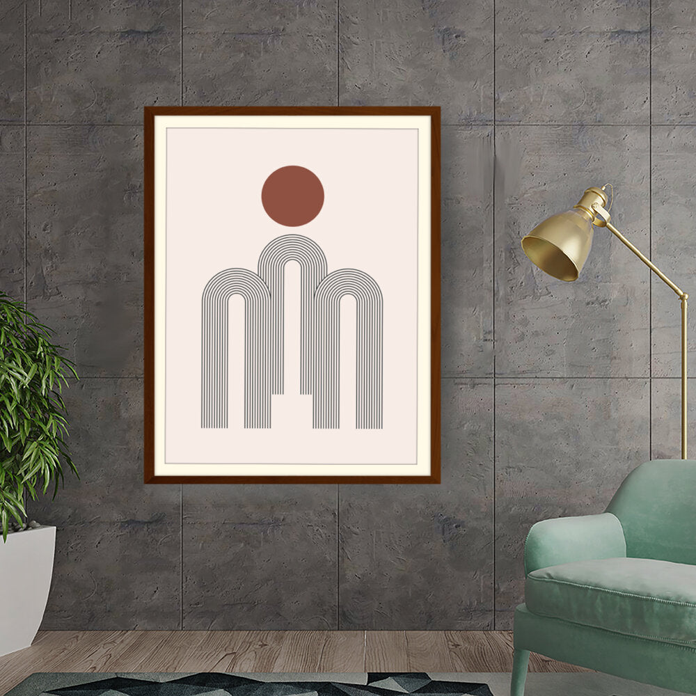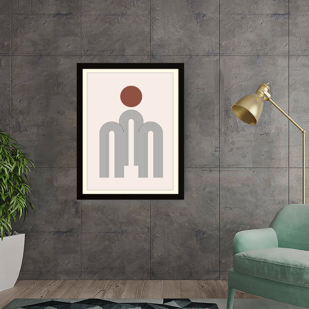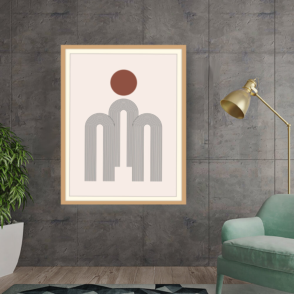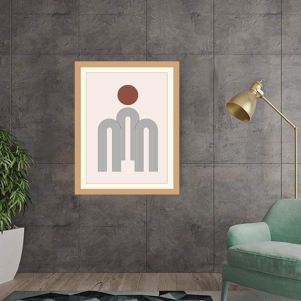 This artwork features a harmonious composition of geometric shapes with minimalistic design. The contrasting colors create a soothing and modern aesthetic suitable for various interiors.