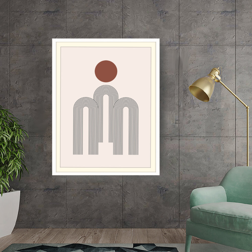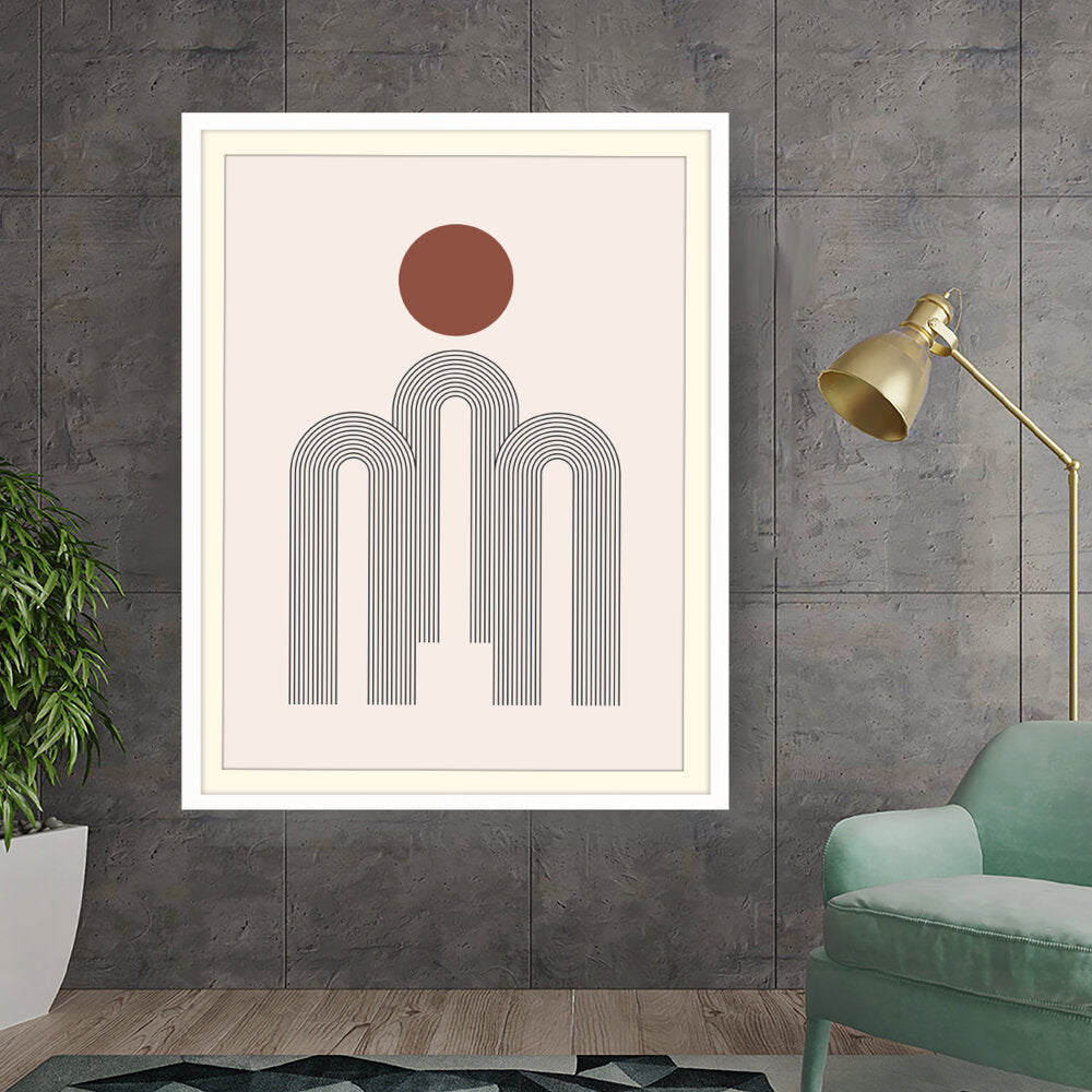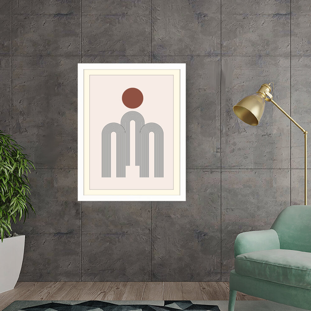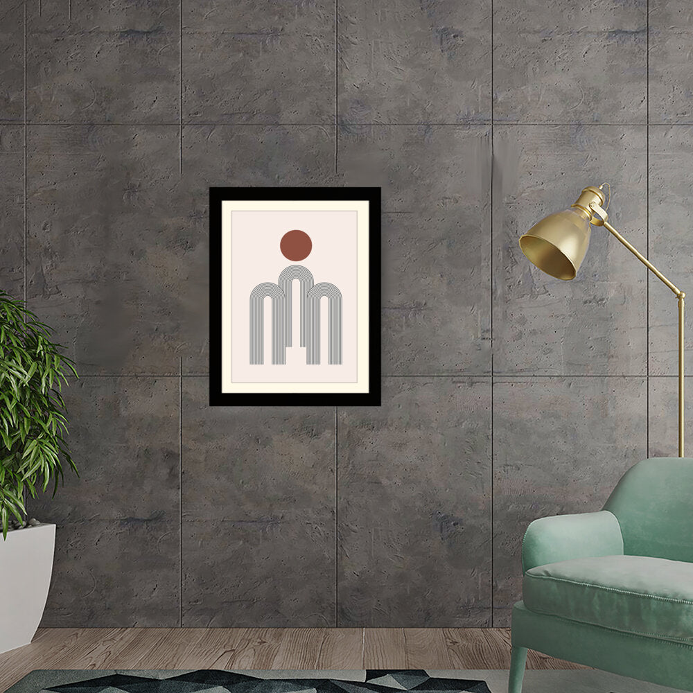 This artwork features a harmonious composition of geometric shapes with minimalistic design. The contrasting colors create a soothing and modern aesthetic suitable for various interiors.