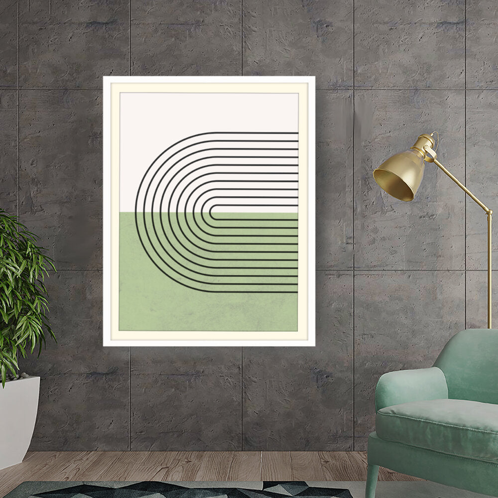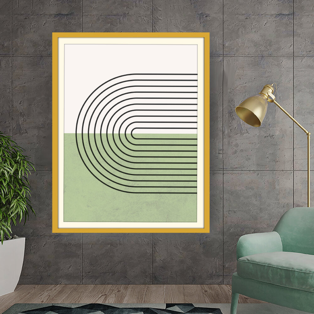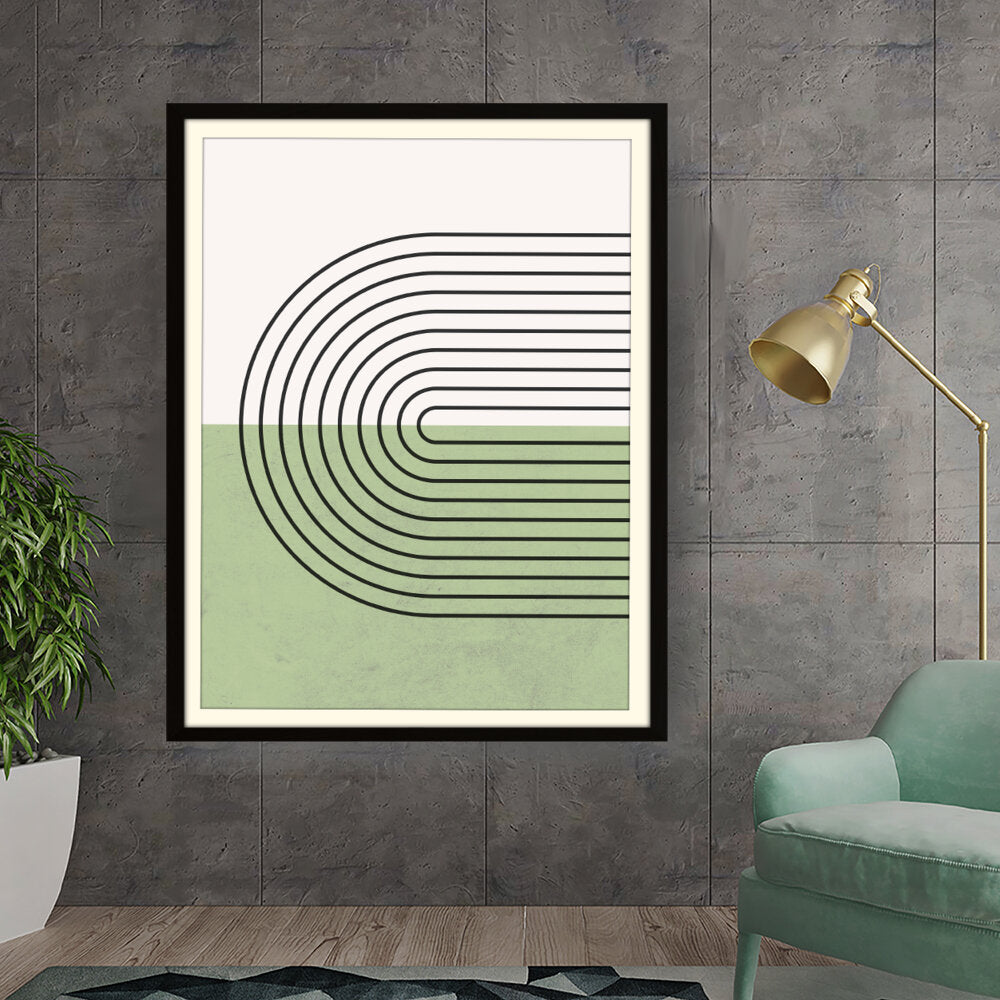 Geometric Harmony is a striking minimalistic design featuring clean, bold lines and a soothing color palette. This artwork seamlessly blends modern aesthetics with simplicity, making it a perfect addition to contemporary spaces.