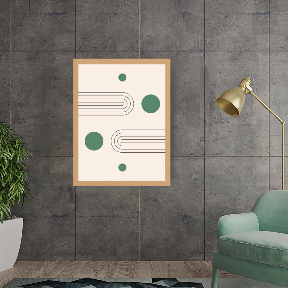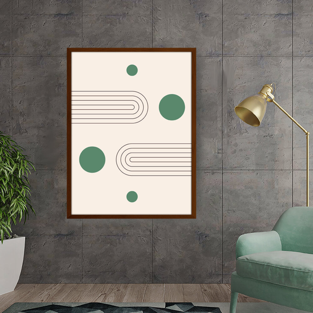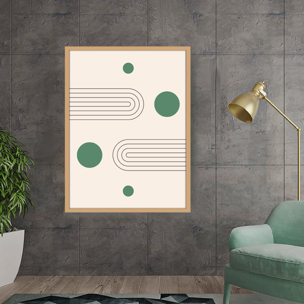 This artwork showcases a minimalist design featuring geometric shapes that create a soothing and modern aesthetic. The harmonious blend of curves and circles invites contemplation and complements various interior styles.