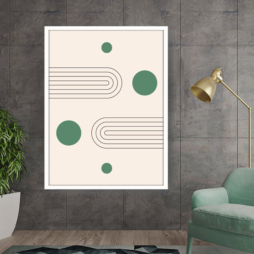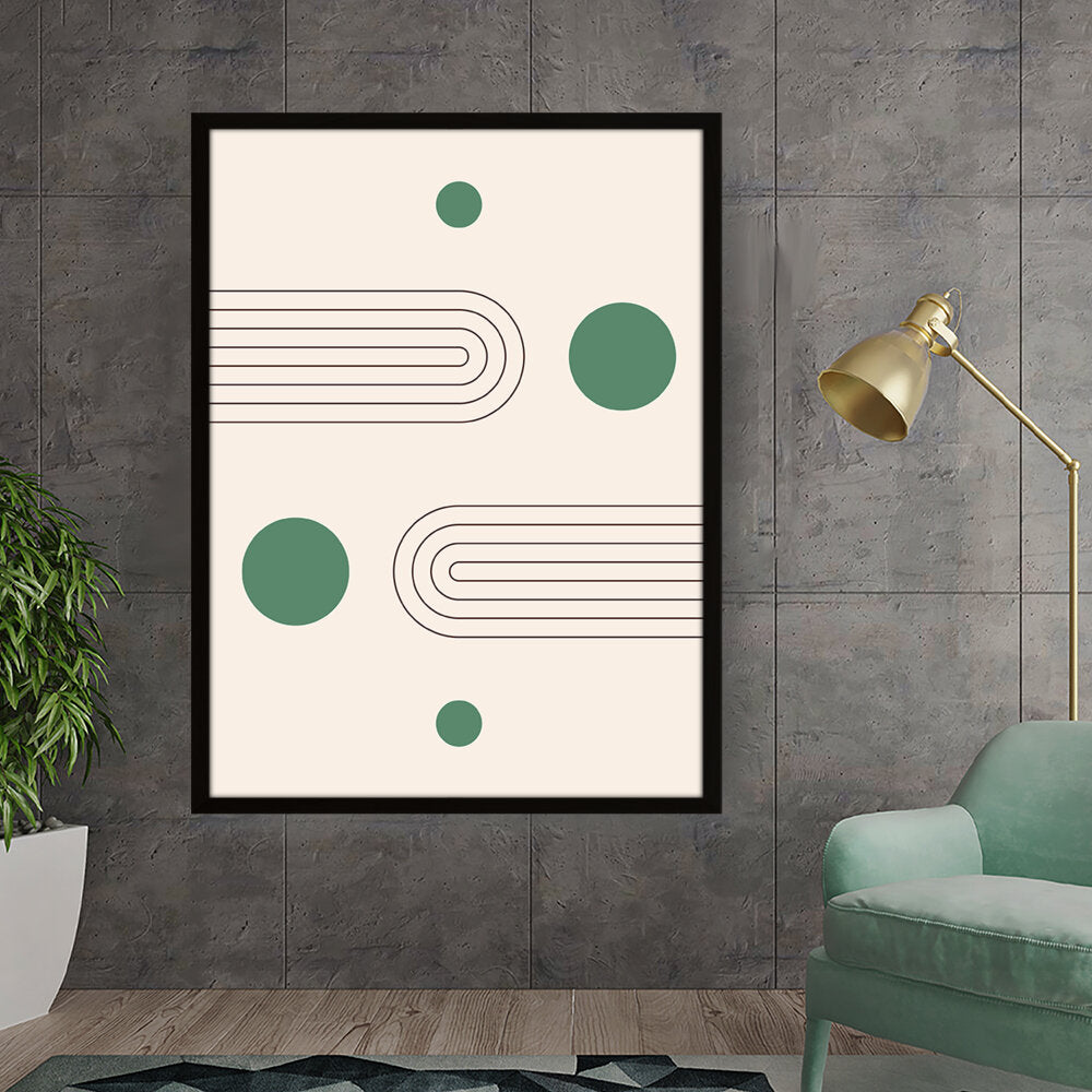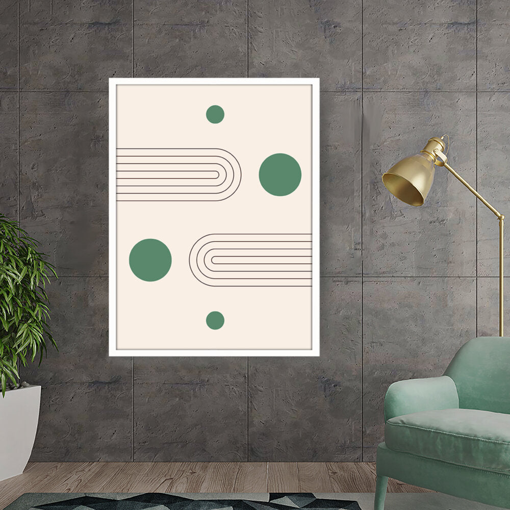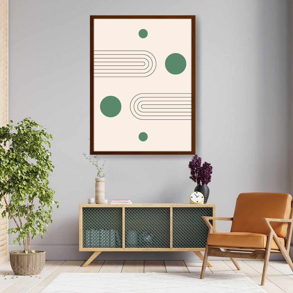 This artwork showcases a minimalist design featuring geometric shapes that create a soothing and modern aesthetic. The harmonious blend of curves and circles invites contemplation and complements various interior styles.