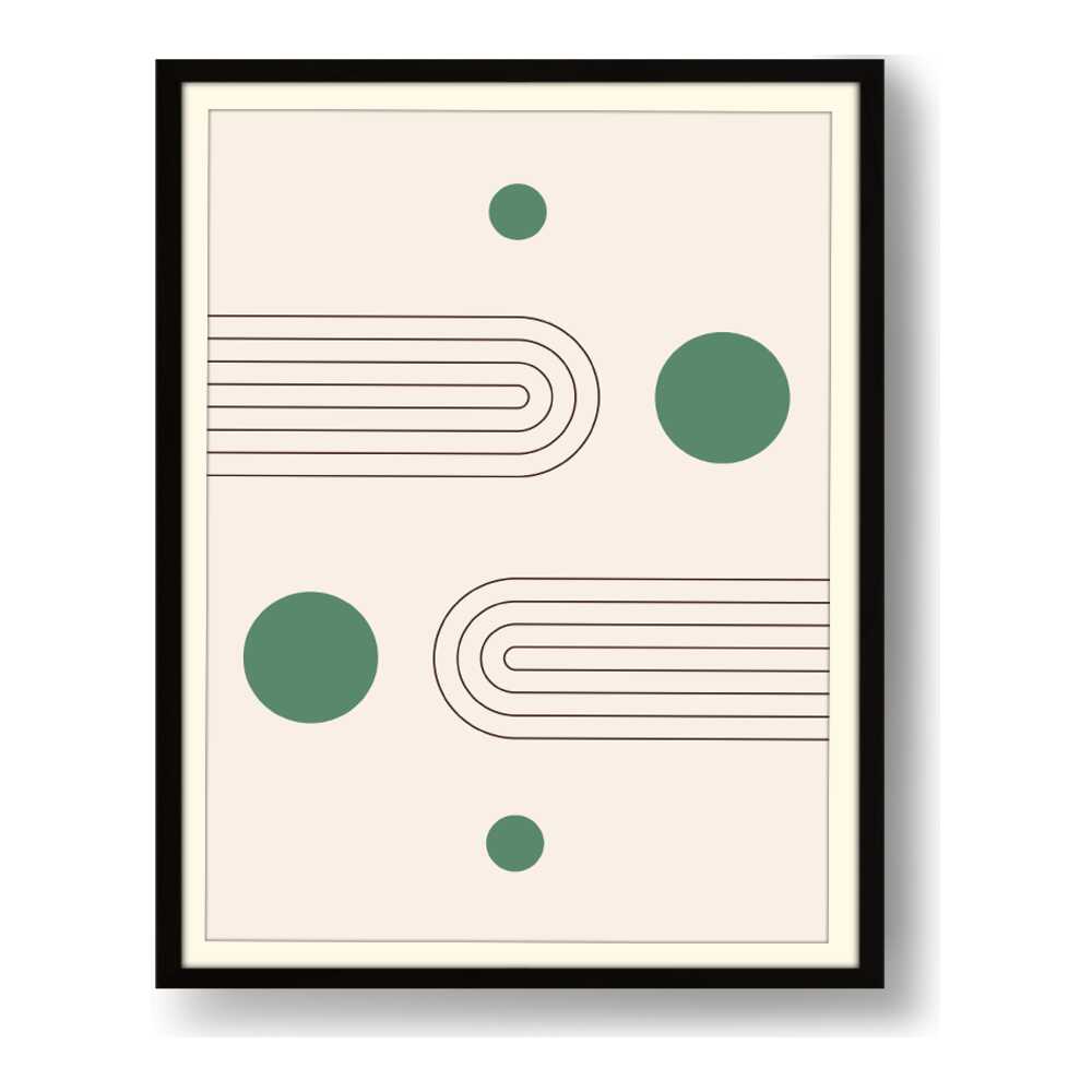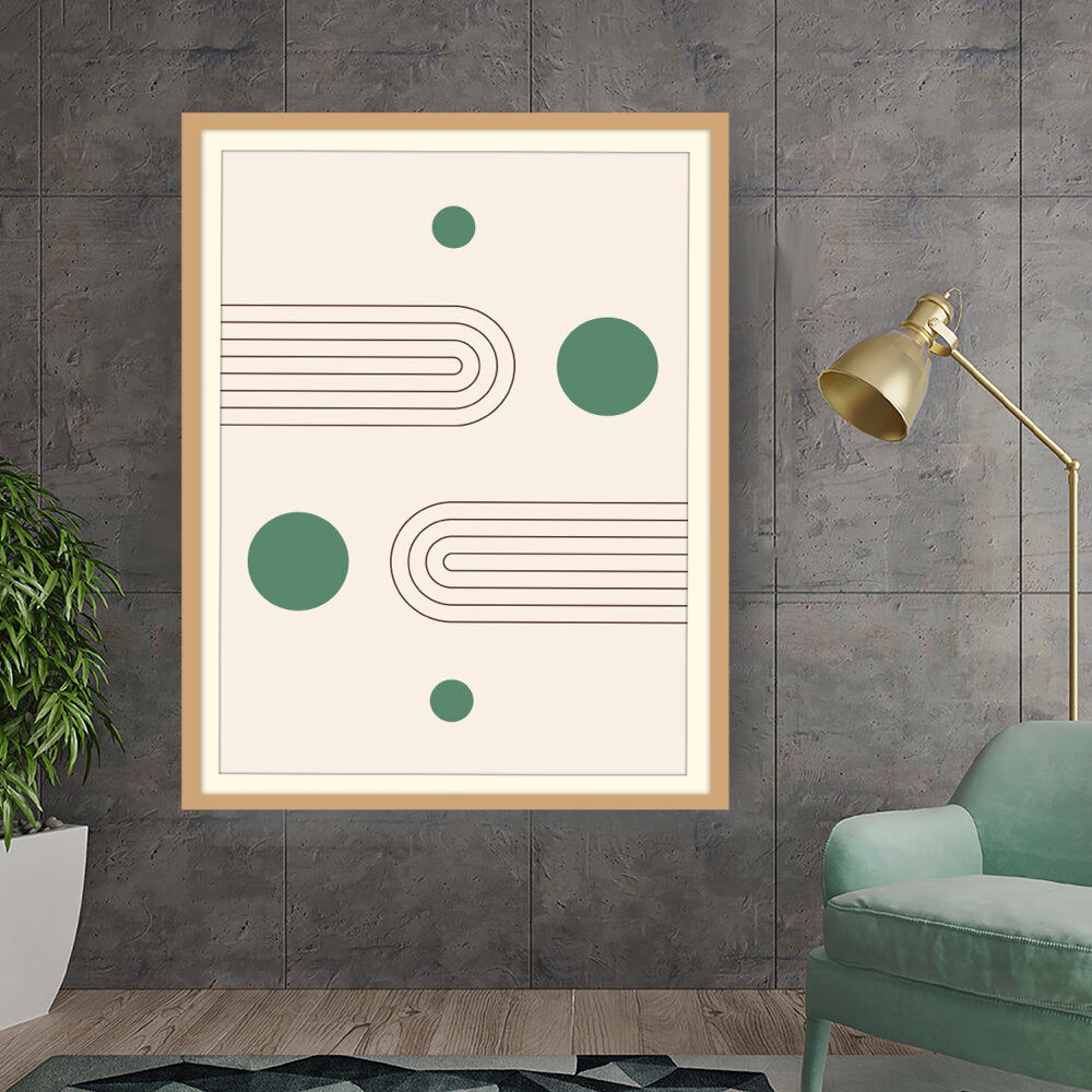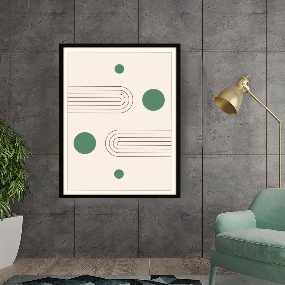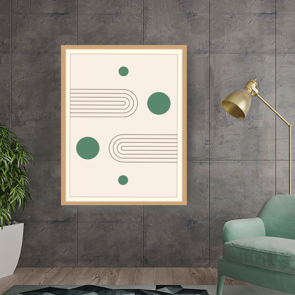 This artwork showcases a minimalist design featuring geometric shapes that create a soothing and modern aesthetic. The harmonious blend of curves and circles invites contemplation and complements various interior styles.