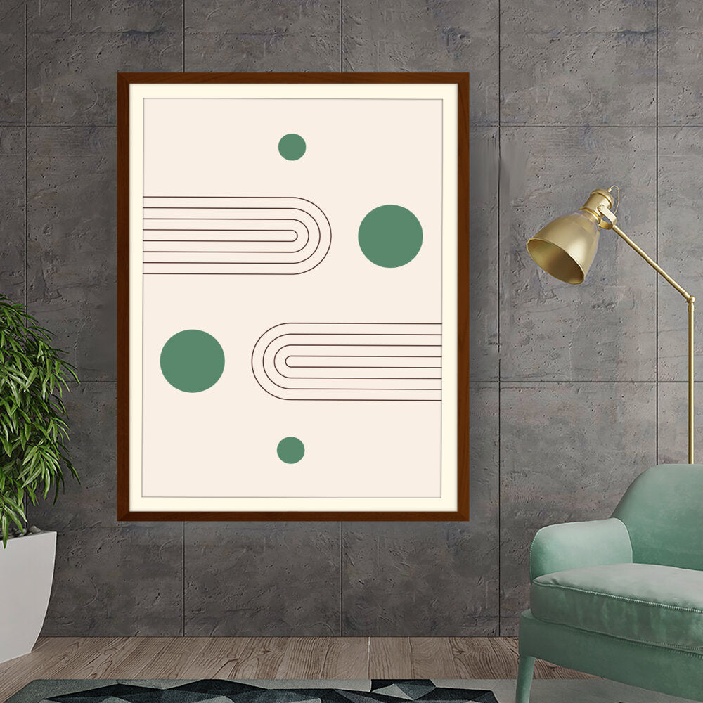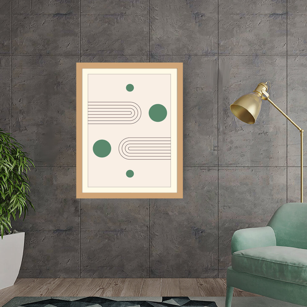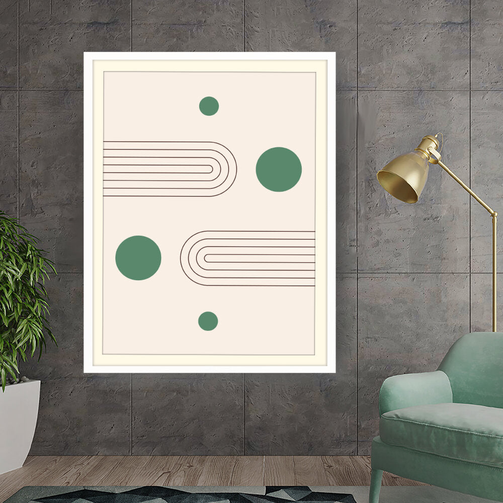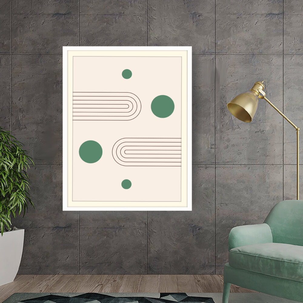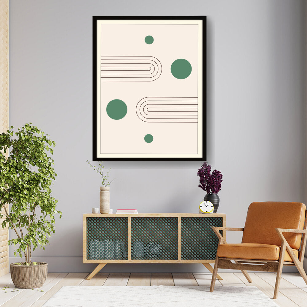 This artwork showcases a minimalist design featuring geometric shapes that create a soothing and modern aesthetic. The harmonious blend of curves and circles invites contemplation and complements various interior styles.