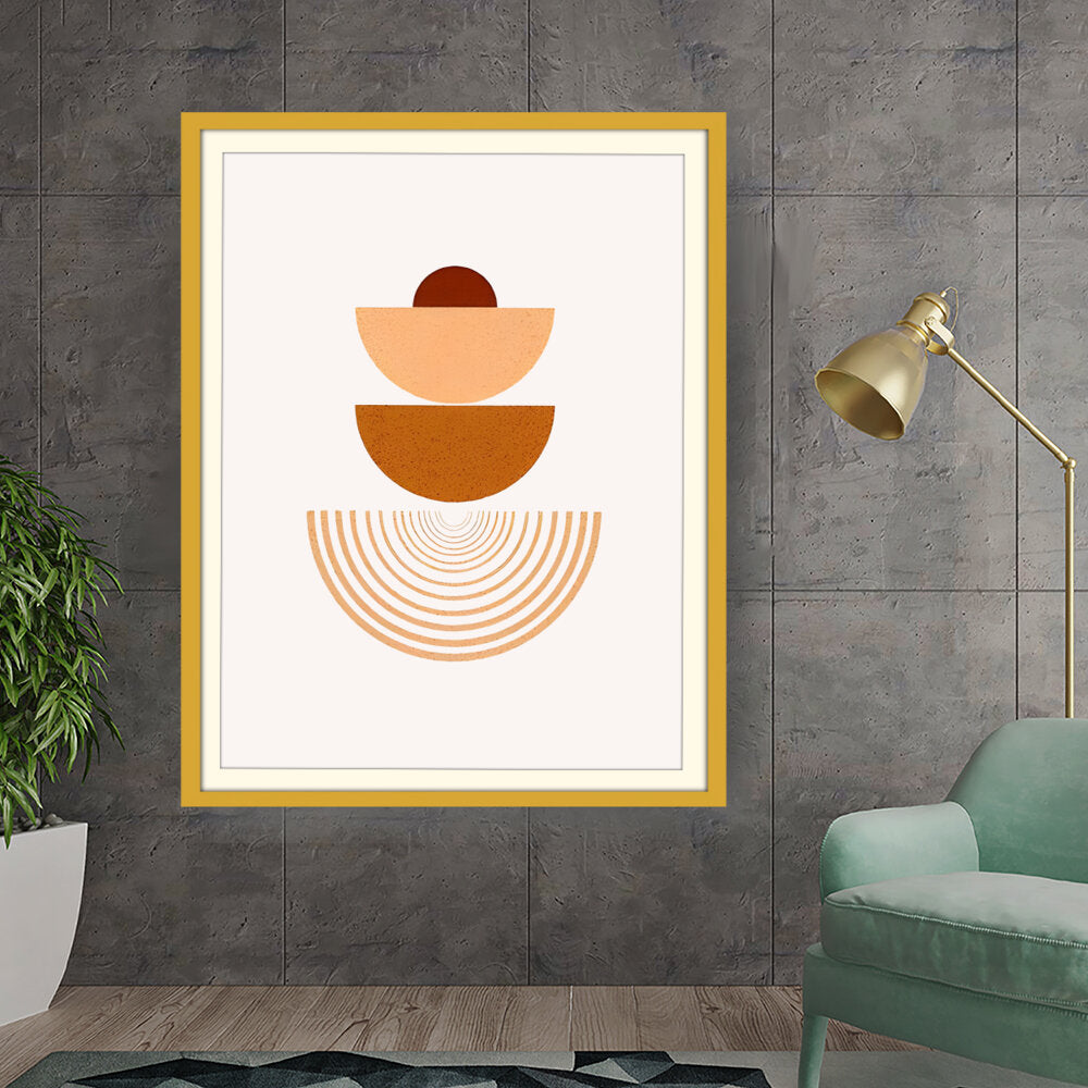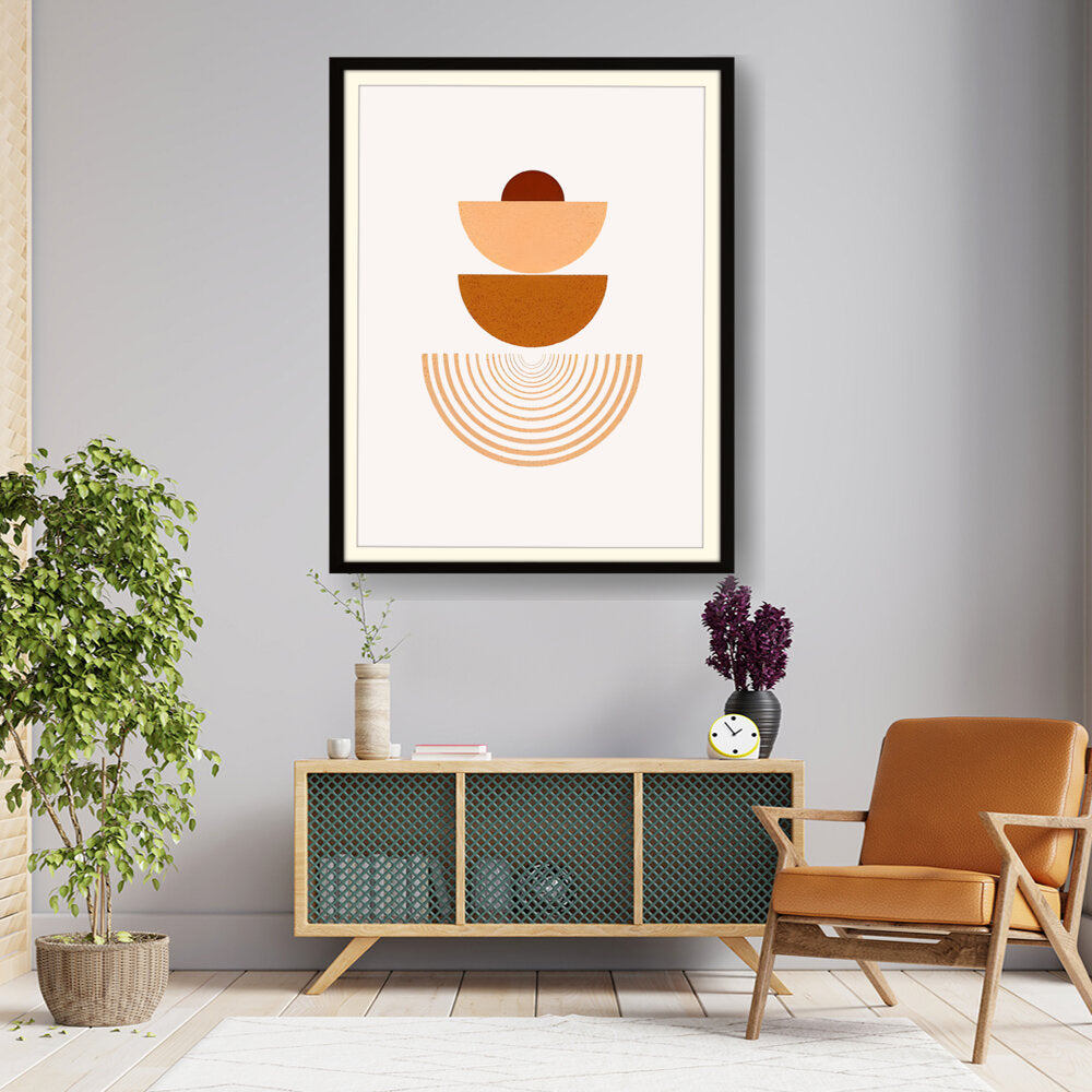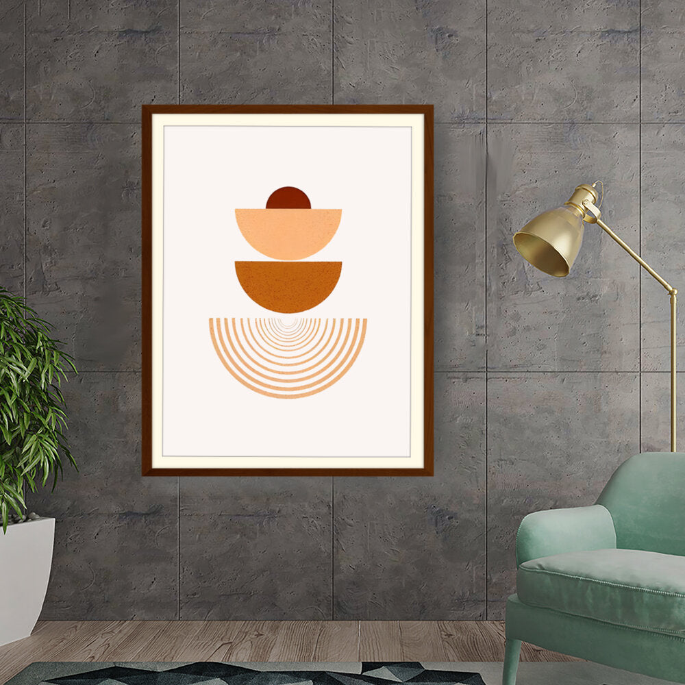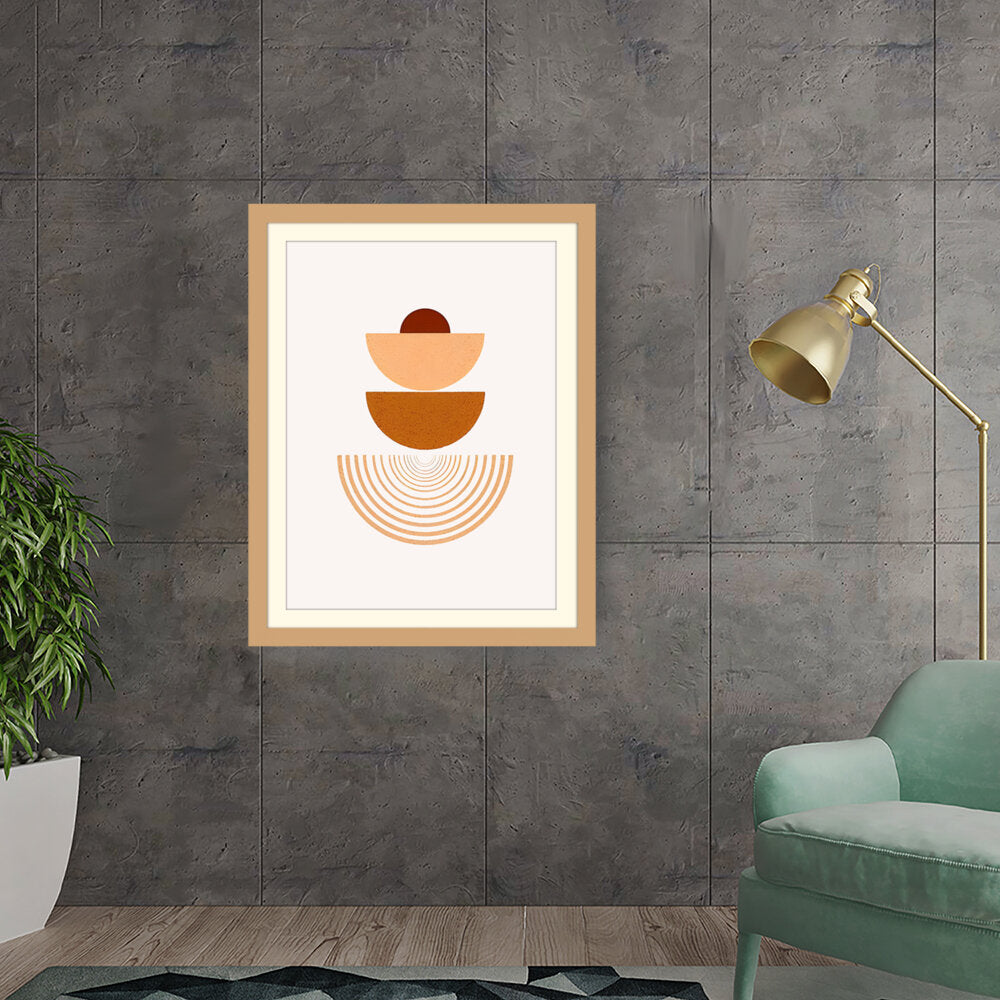 This artwork combines geometric shapes and warm earthy tones to create a serene visual experience. Perfect for modern interiors, it adds a touch of minimalism and harmony to any space.
