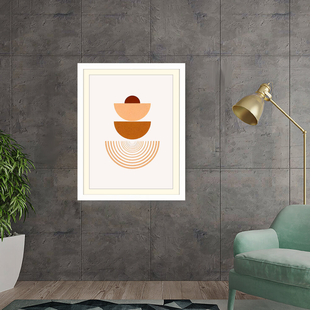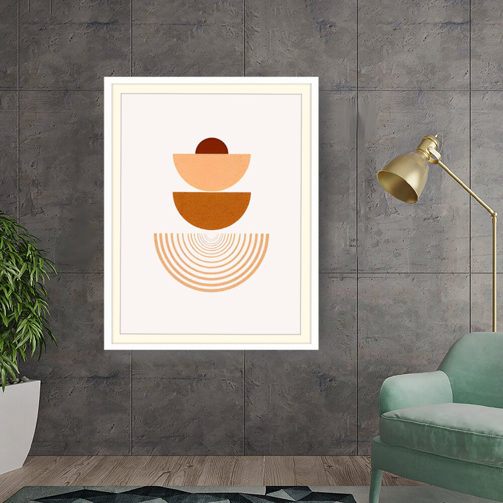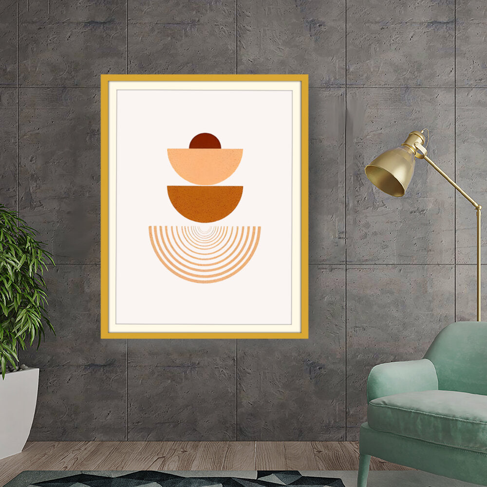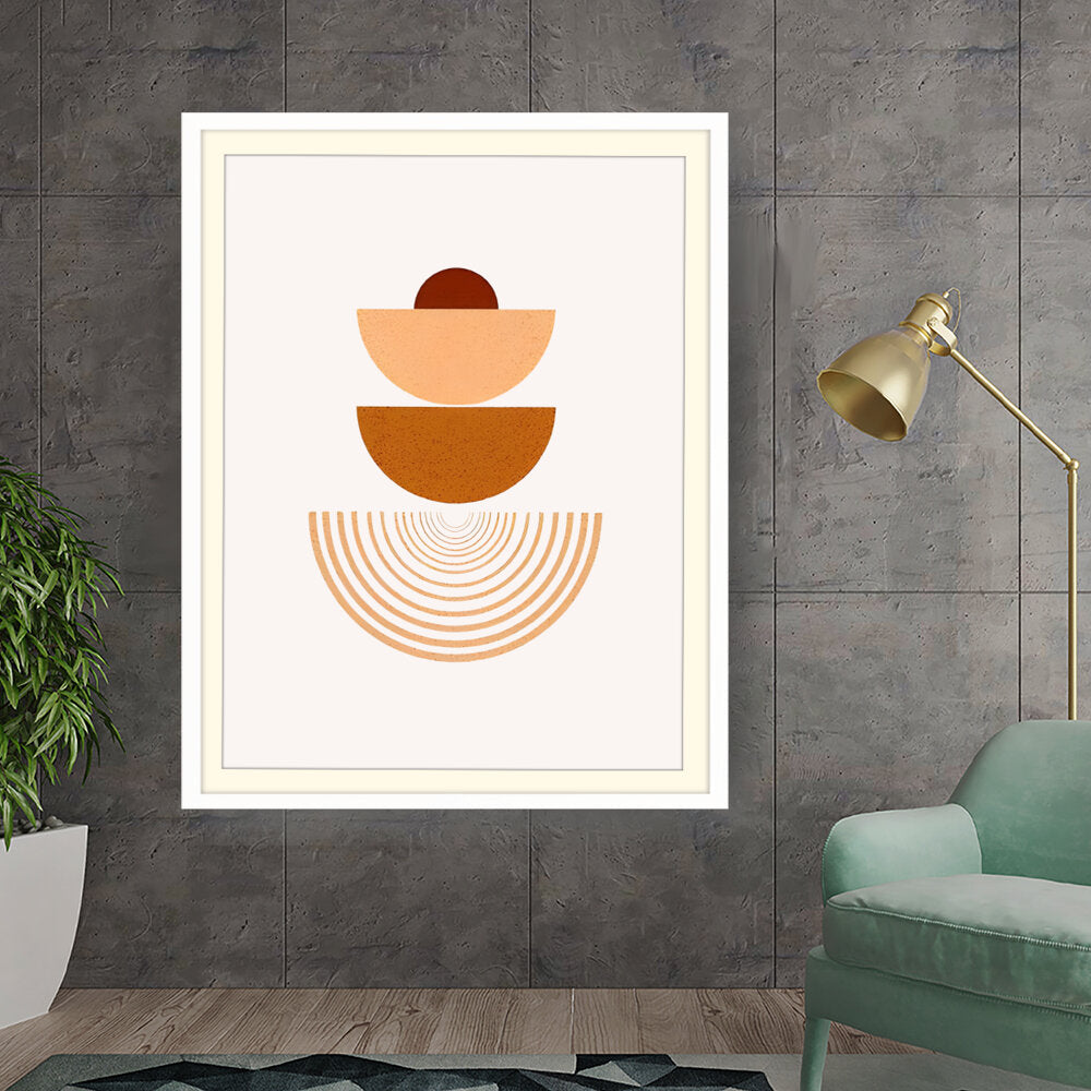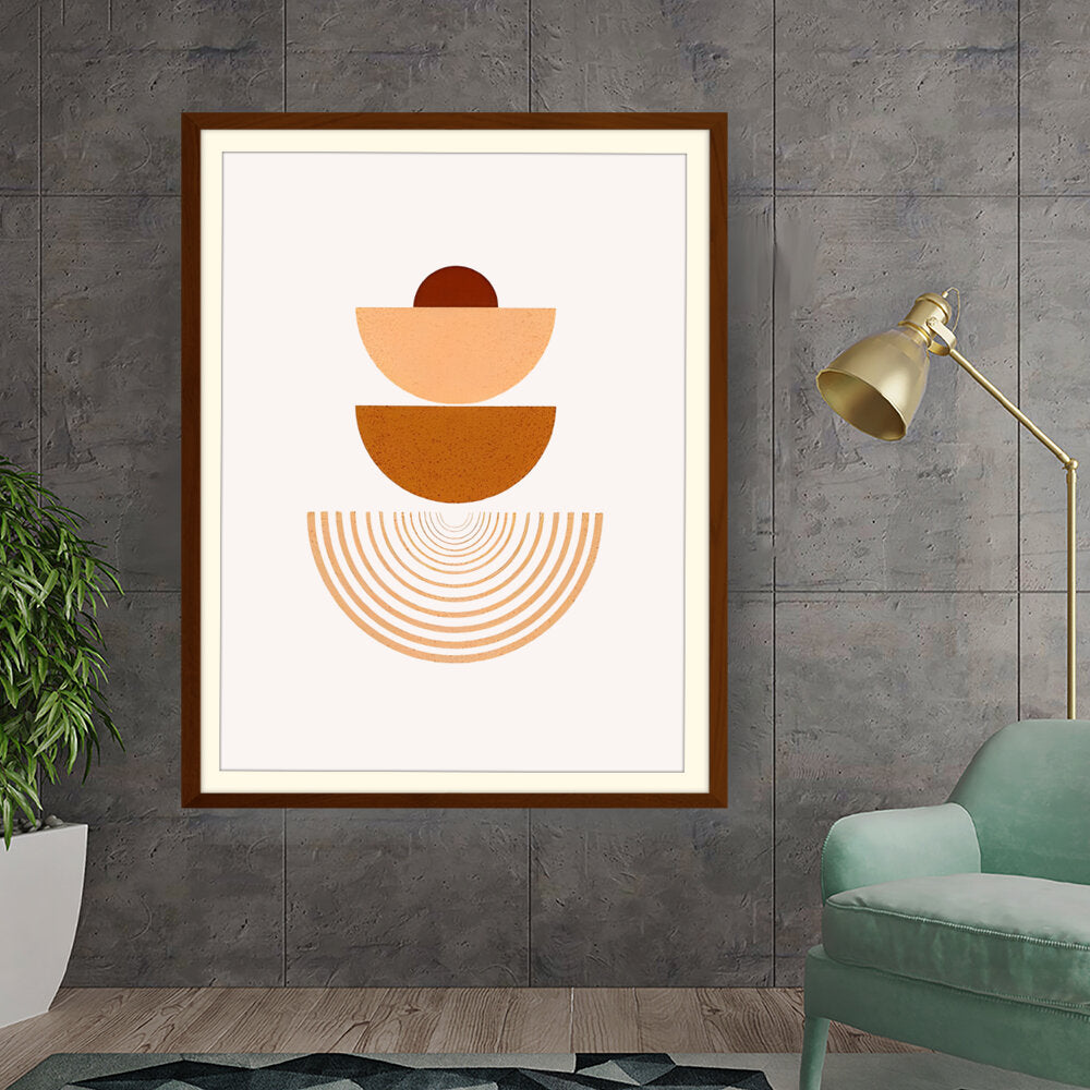 This artwork combines geometric shapes and warm earthy tones to create a serene visual experience. Perfect for modern interiors, it adds a touch of minimalism and harmony to any space.