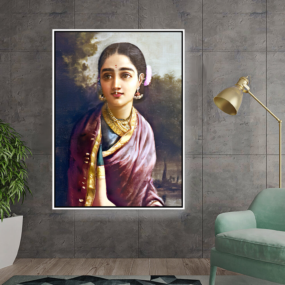 This stunning digital portrait captures the essence of elegance and tradition through the depiction of a woman adorned in beautiful traditional attire. The rich textures and colors invite viewers to appreciate the beauty and depth of cultural heritage.