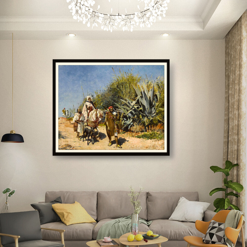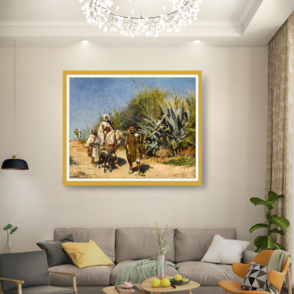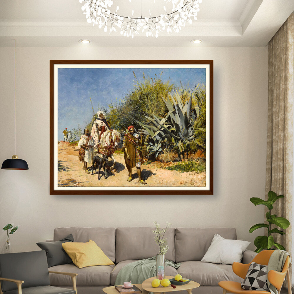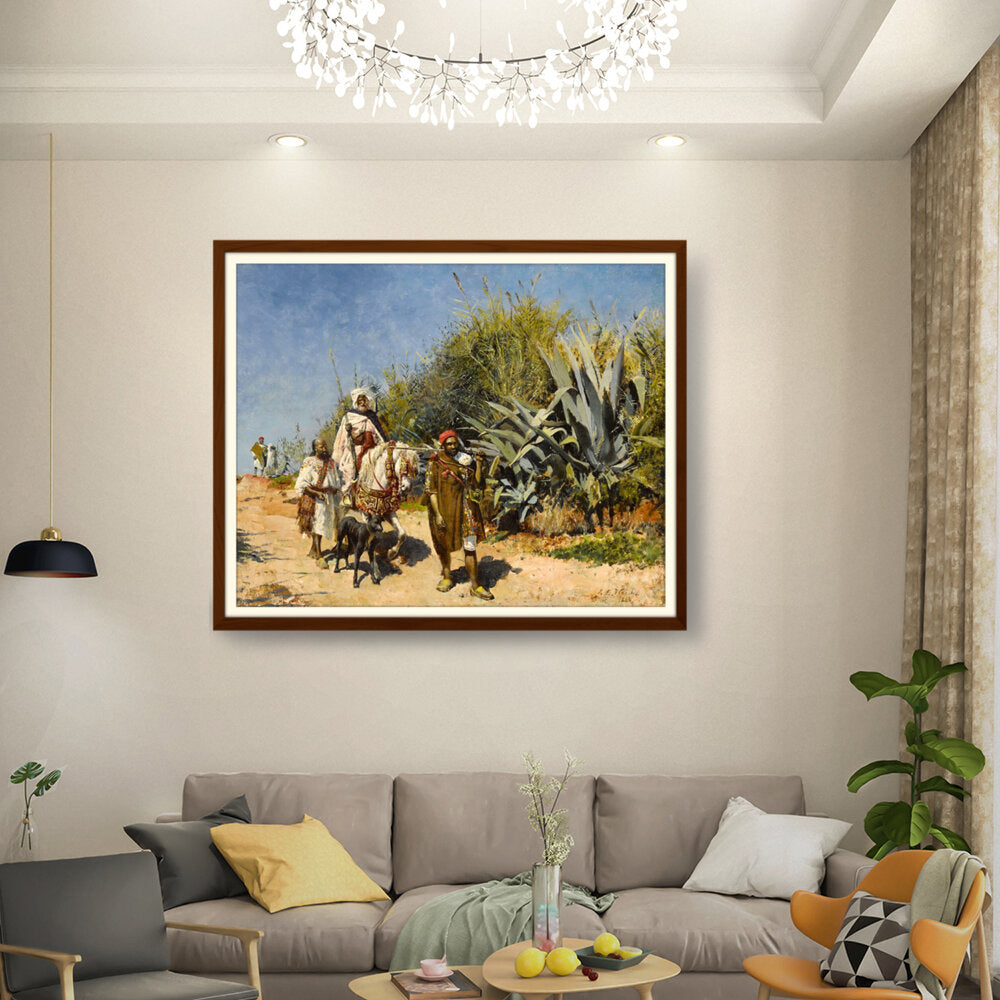 This artwork captures a serene landscape scene of figures journeying through a lush, vibrant environment. The masterful brushwork showcases the beauty of nature and the intricacies of human interaction with their surroundings. Perfect for adding an elegant touch to any space.