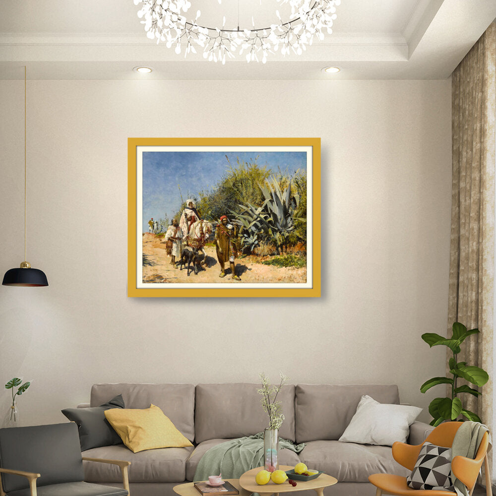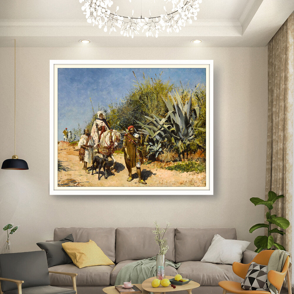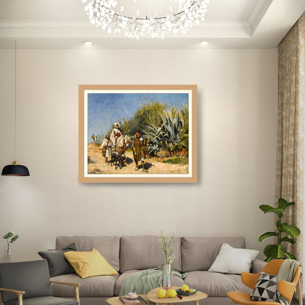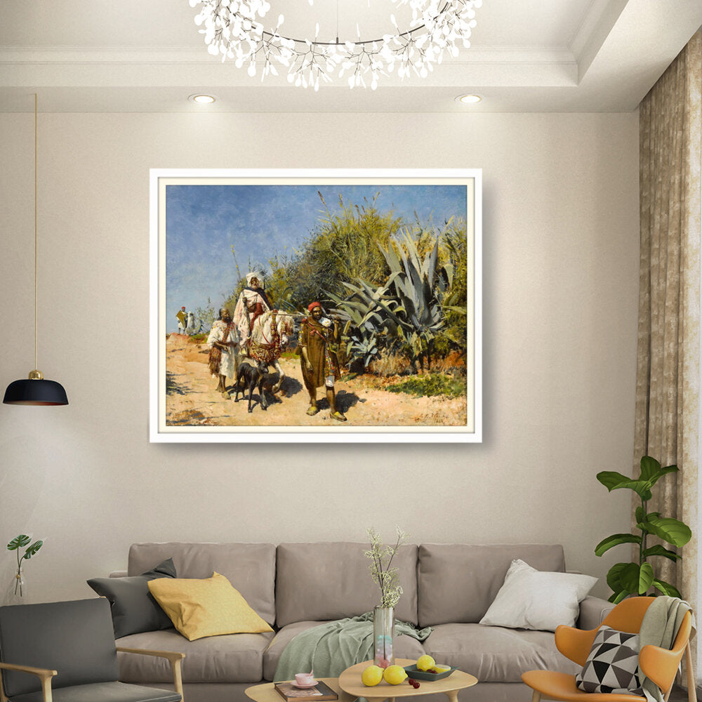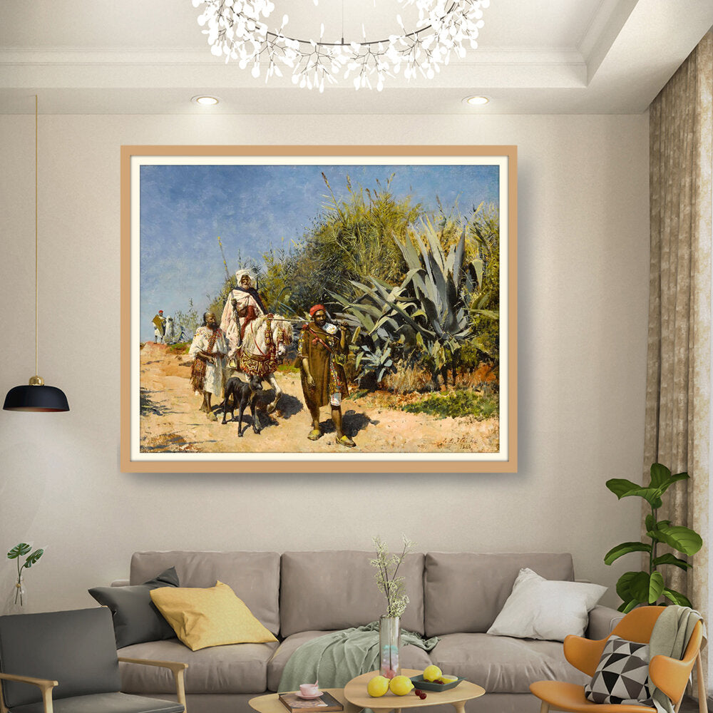 This artwork captures a serene landscape scene of figures journeying through a lush, vibrant environment. The masterful brushwork showcases the beauty of nature and the intricacies of human interaction with their surroundings. Perfect for adding an elegant touch to any space.