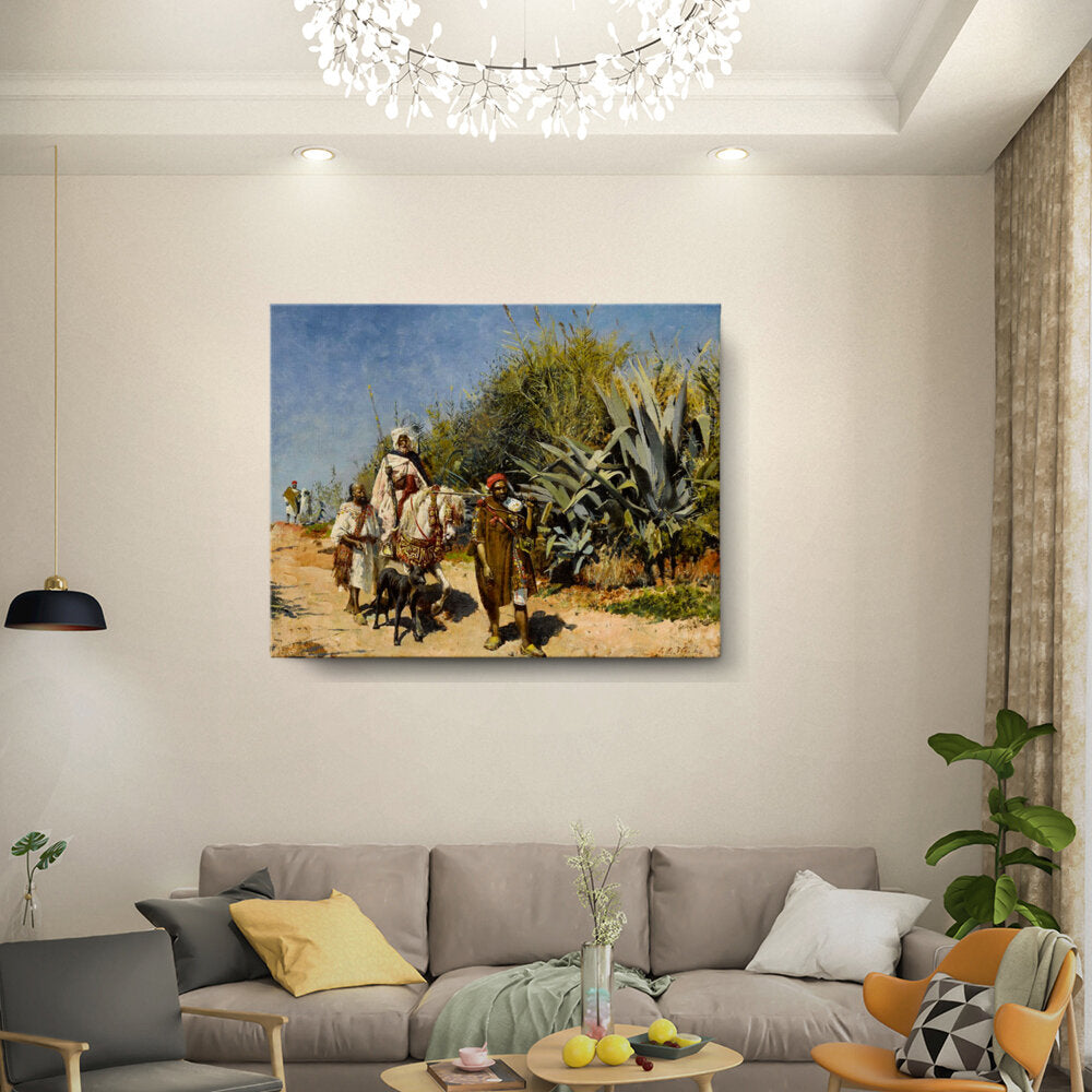 This artwork captures a serene landscape scene of figures journeying through a lush, vibrant environment. The masterful brushwork showcases the beauty of nature and the intricacies of human interaction with their surroundings. Perfect for adding an elegant touch to any space.