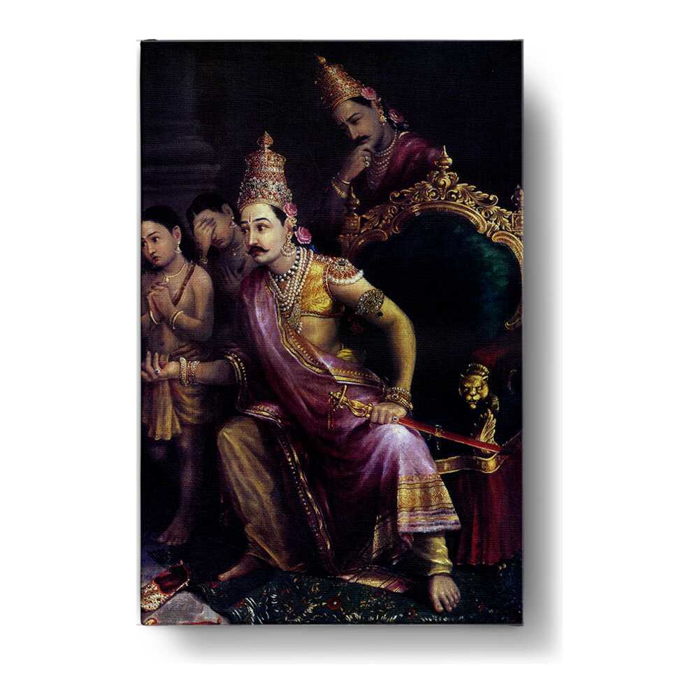 This exquisite artwork depicts a majestic ruler adorned in traditional attire, showcasing the rich cultural heritage of Indian art. The intricate details and expressive figures create a captivating narrative, making it a perfect addition to any living space.