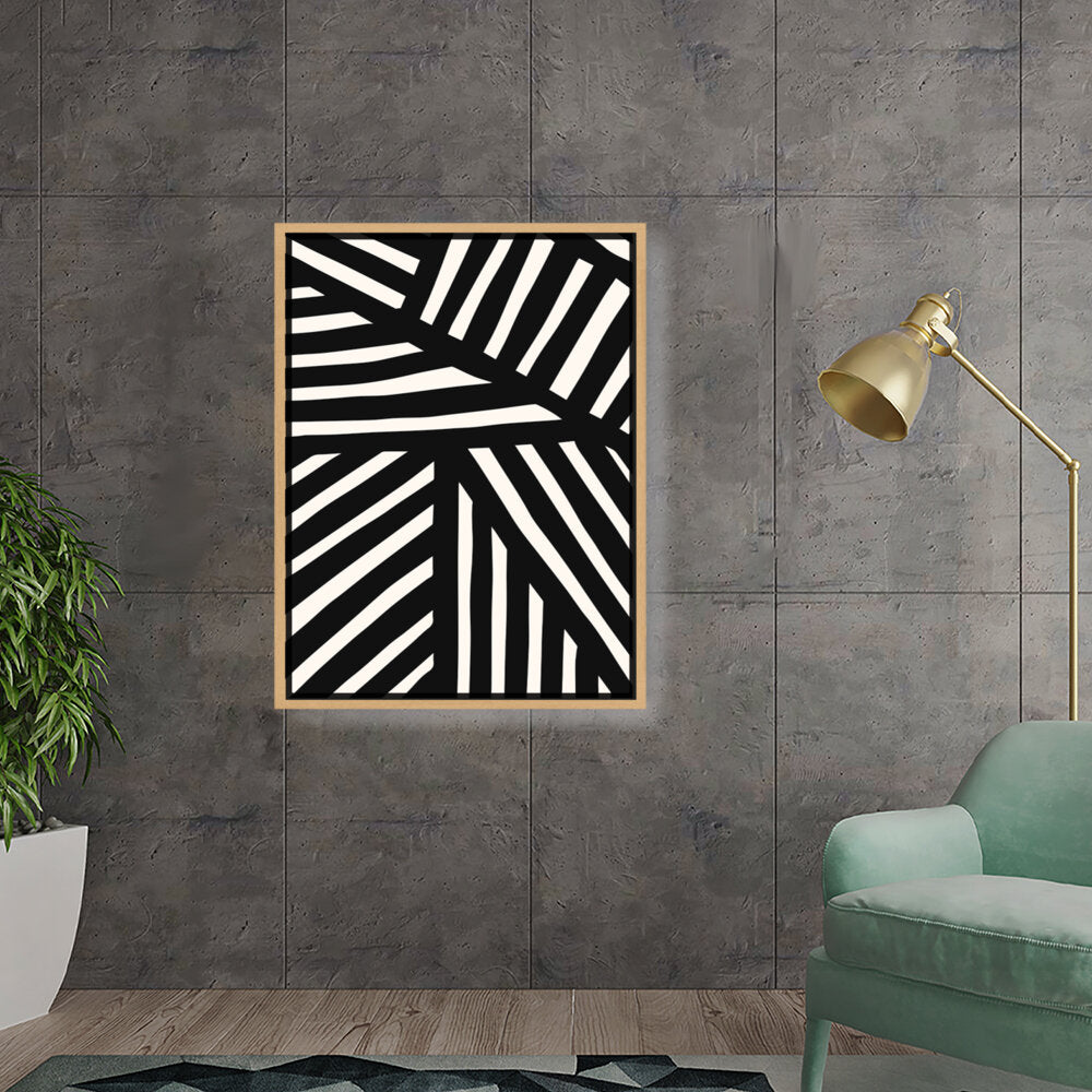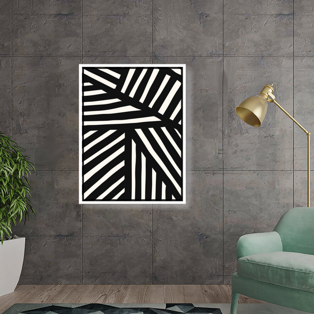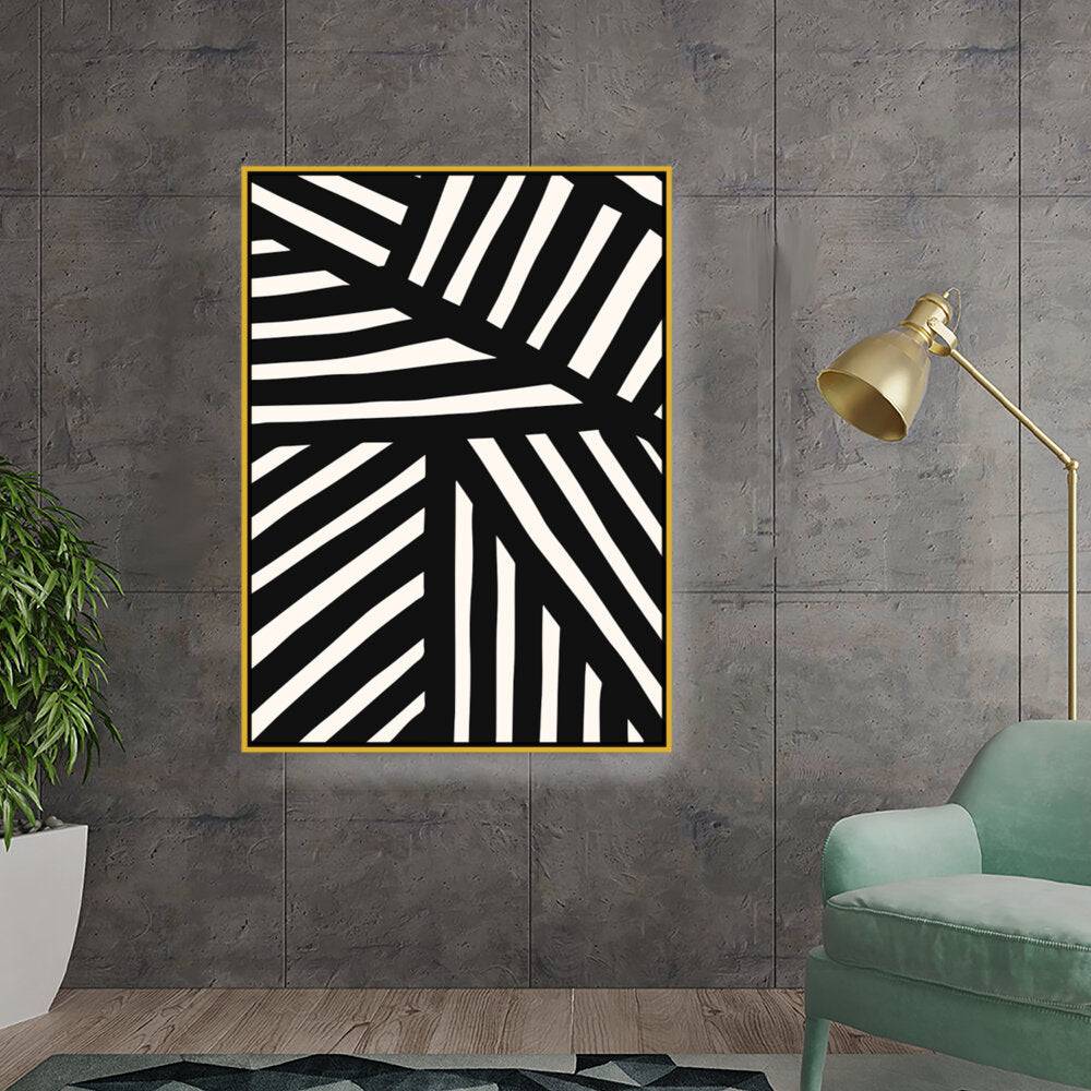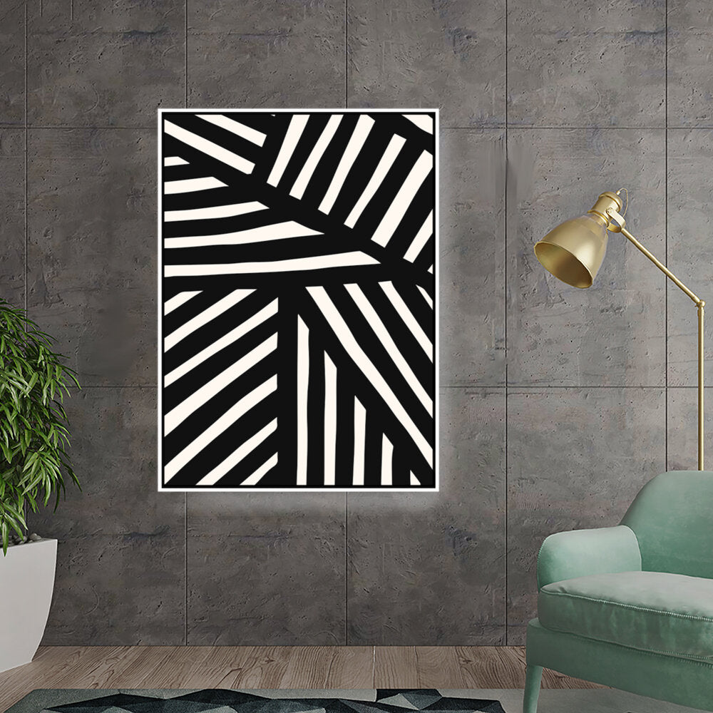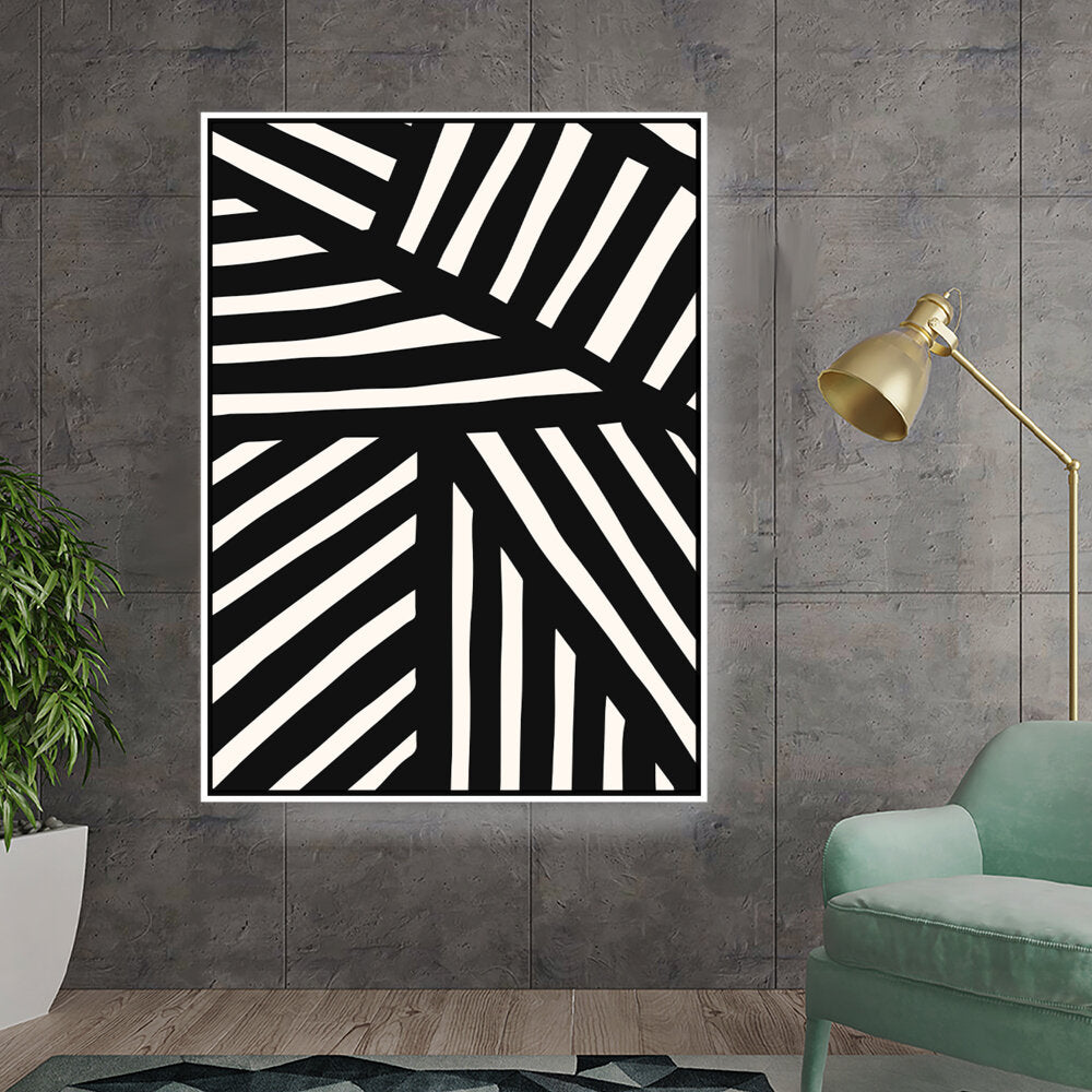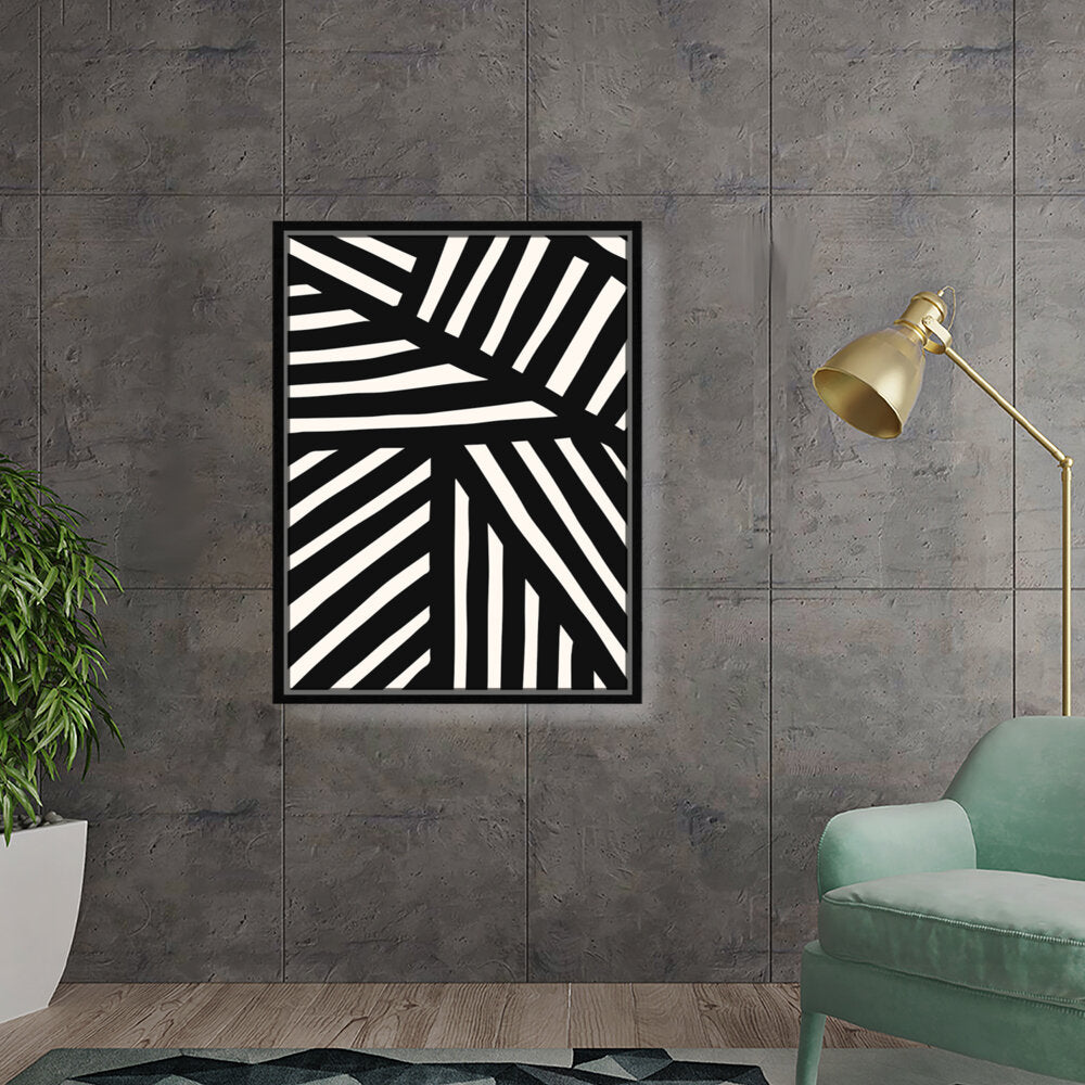 This artwork features a striking pattern of monochrome stripes, creating a modern and minimalistic design. Perfect for adding a contemporary touch to any space, this piece blends seamlessly with various interior styles.