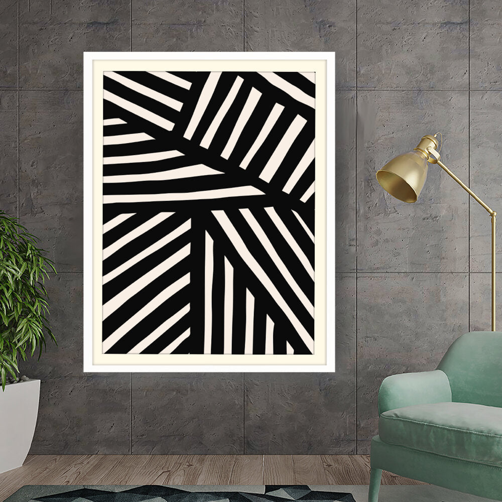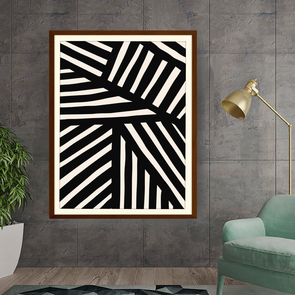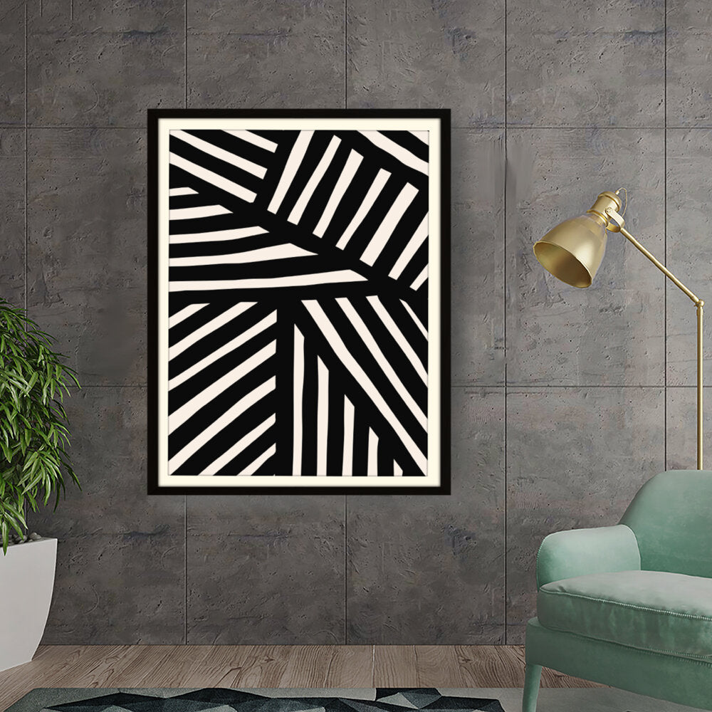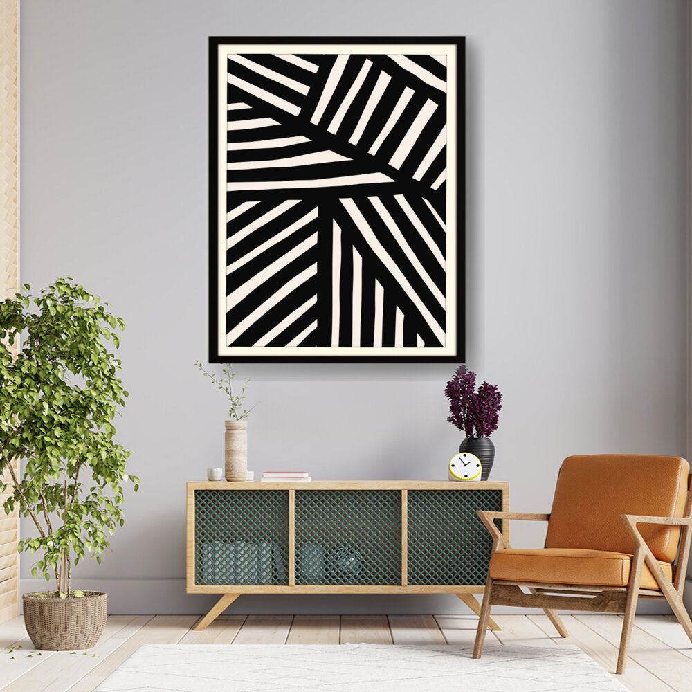 This artwork features a striking pattern of monochrome stripes, creating a modern and minimalistic design. Perfect for adding a contemporary touch to any space, this piece blends seamlessly with various interior styles.