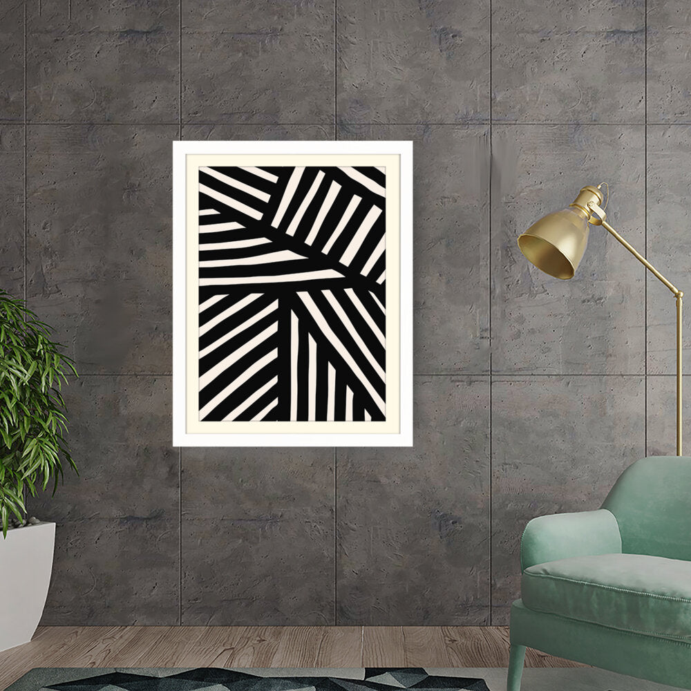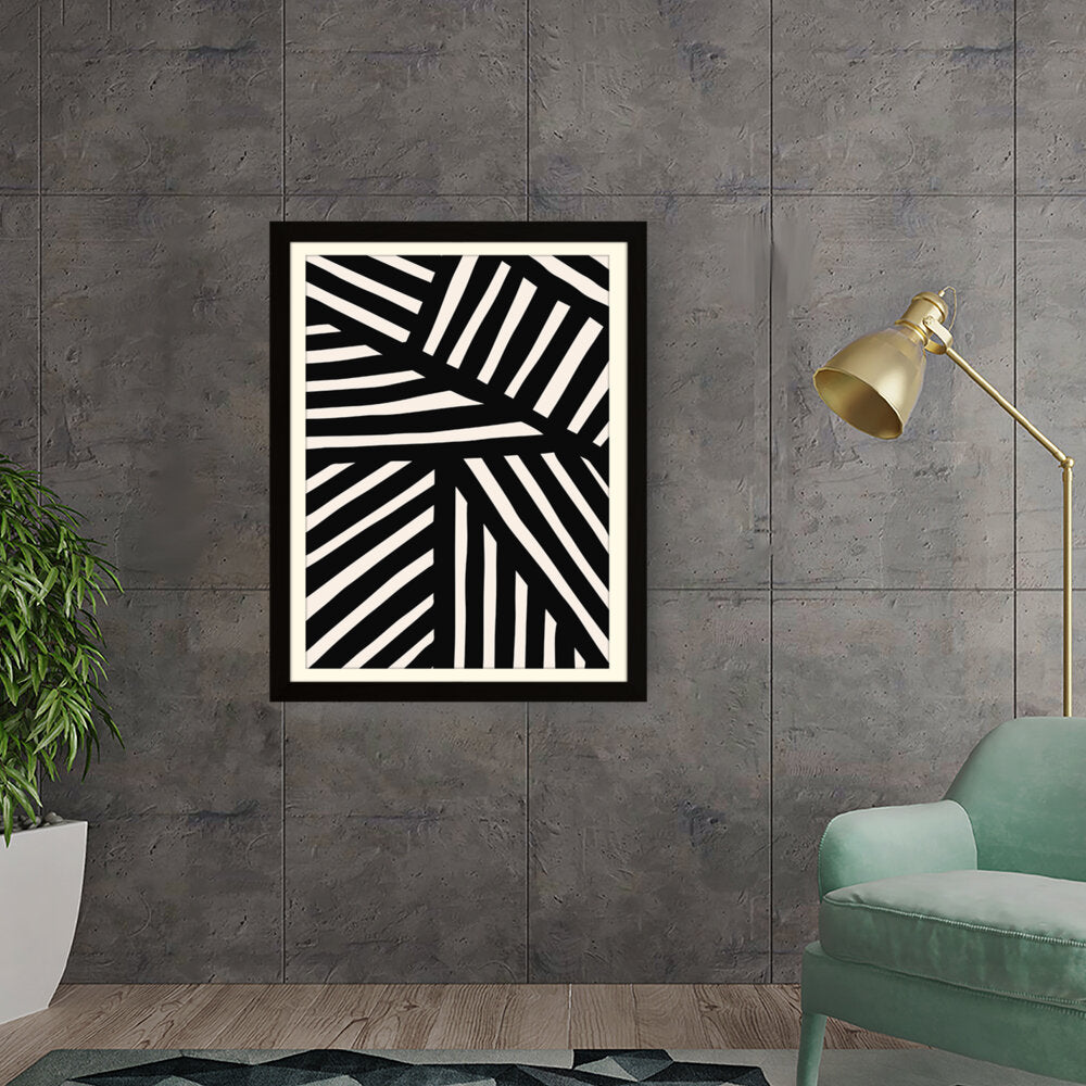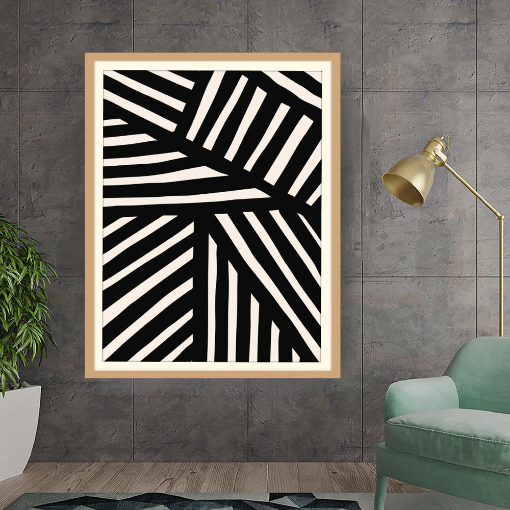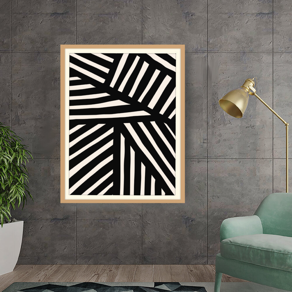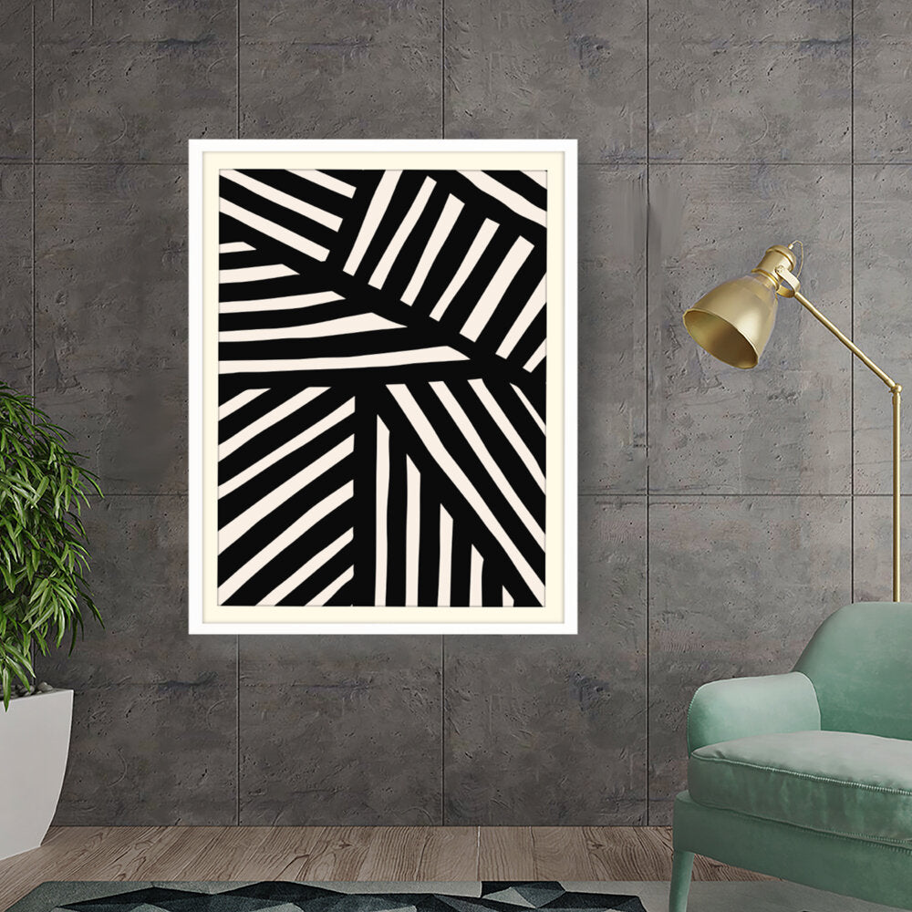 This artwork features a striking pattern of monochrome stripes, creating a modern and minimalistic design. Perfect for adding a contemporary touch to any space, this piece blends seamlessly with various interior styles.