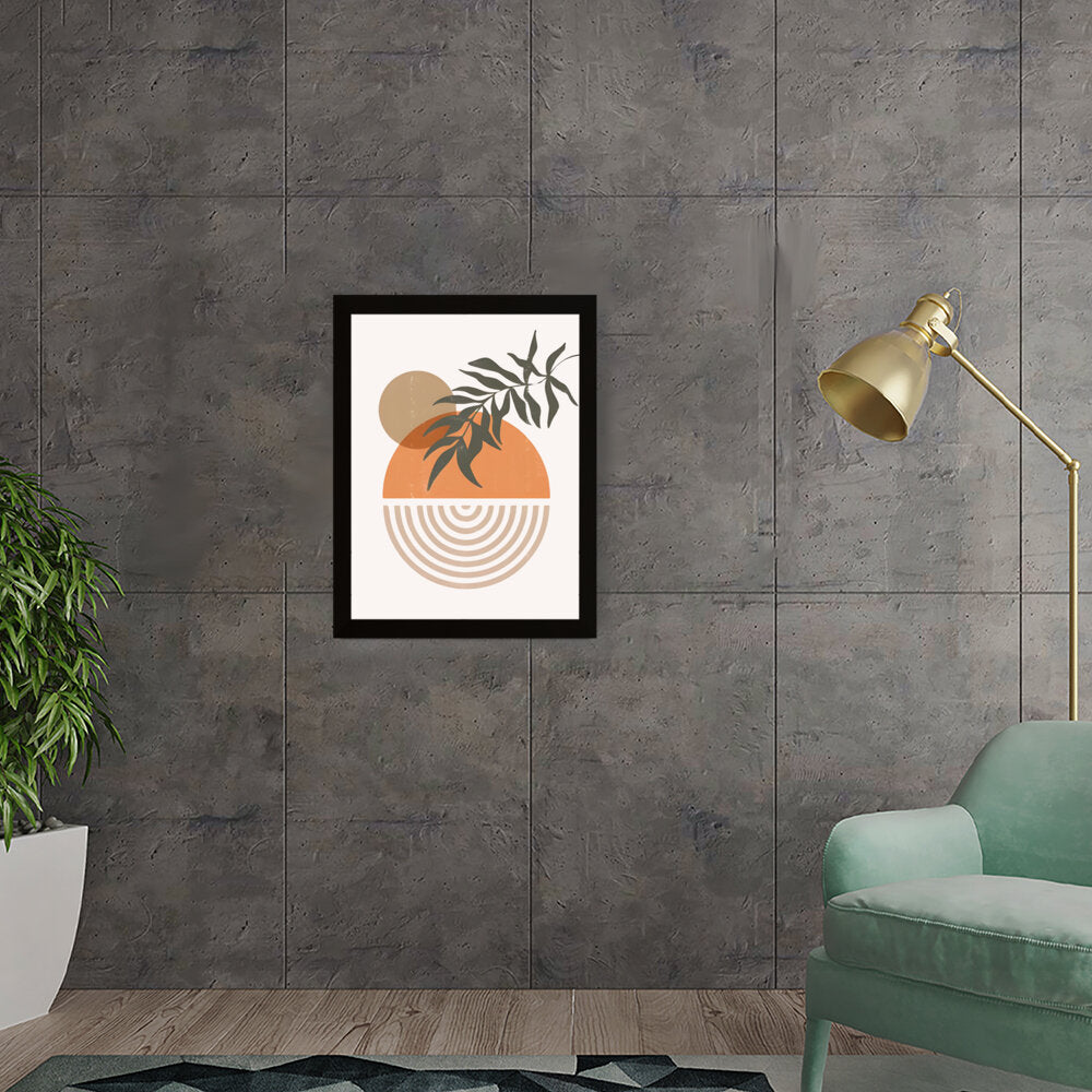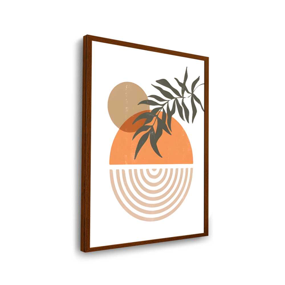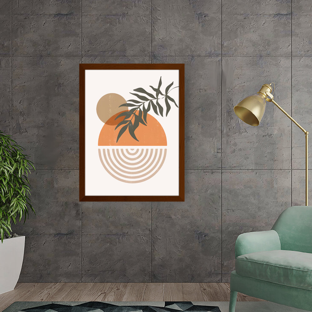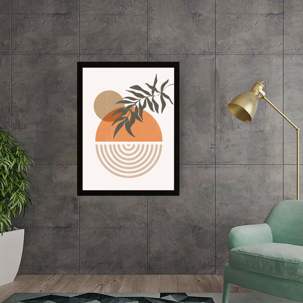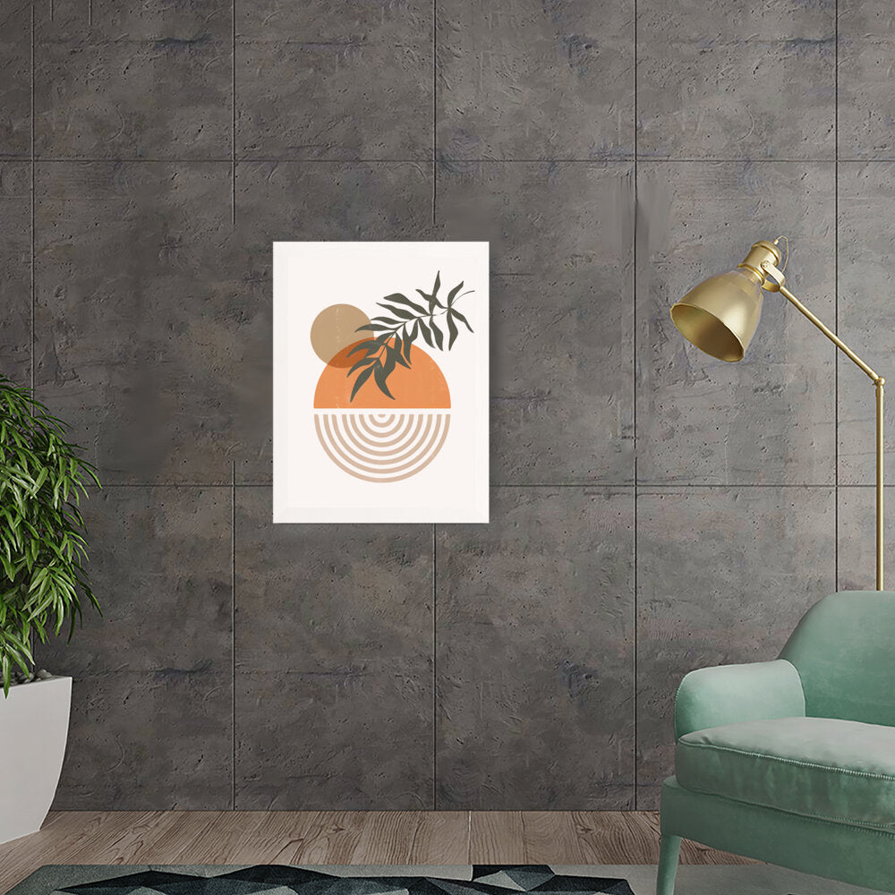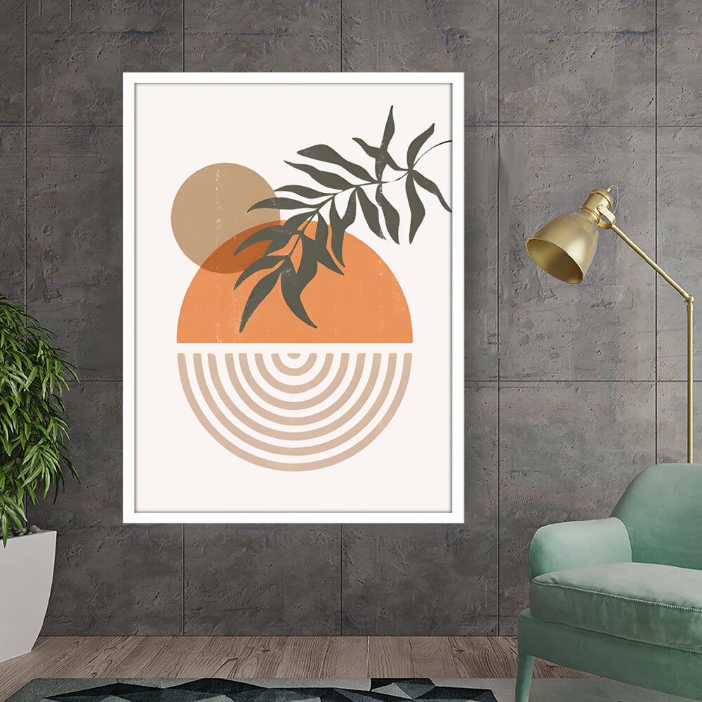 This modern digital illustration beautifully balances organic shapes and geometric patterns. The earthy tones and foliage add a calming touch, making it an ideal statement piece for contemporary interiors.