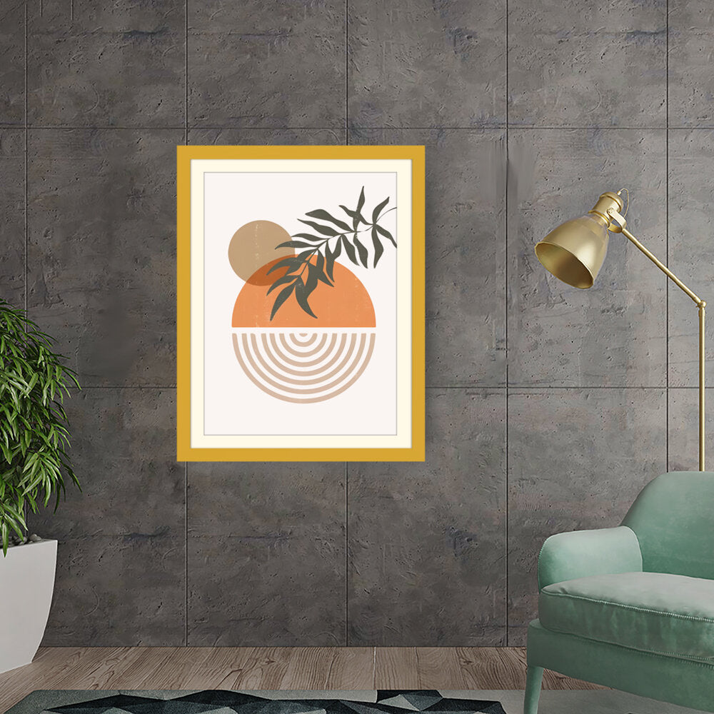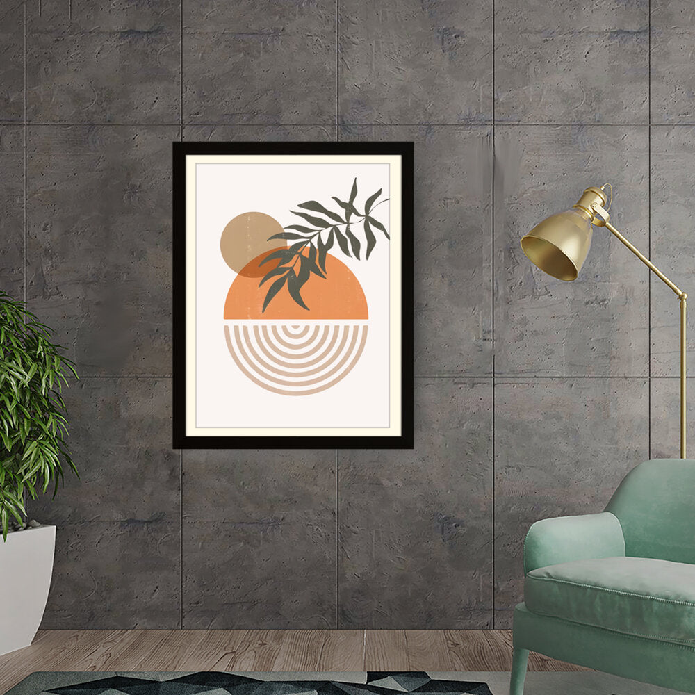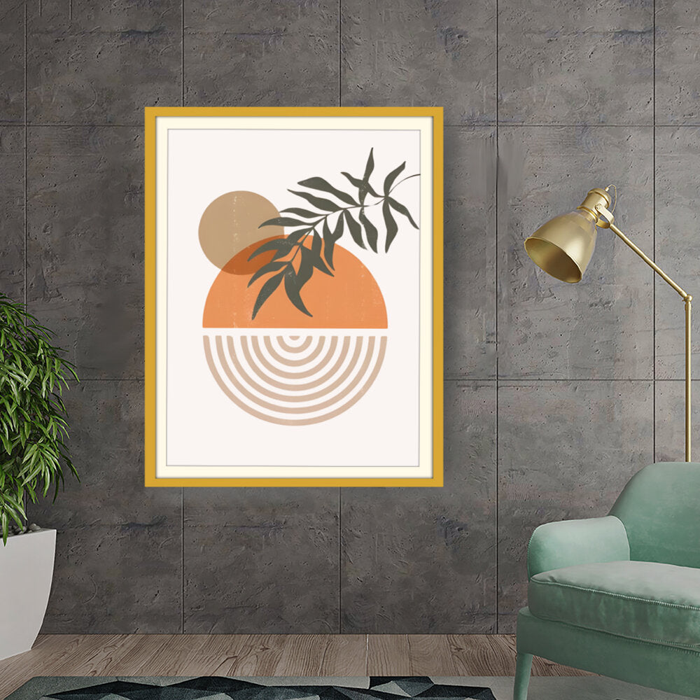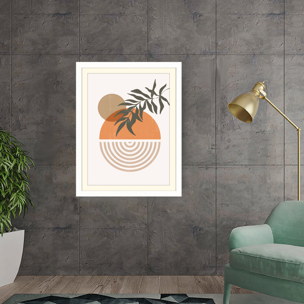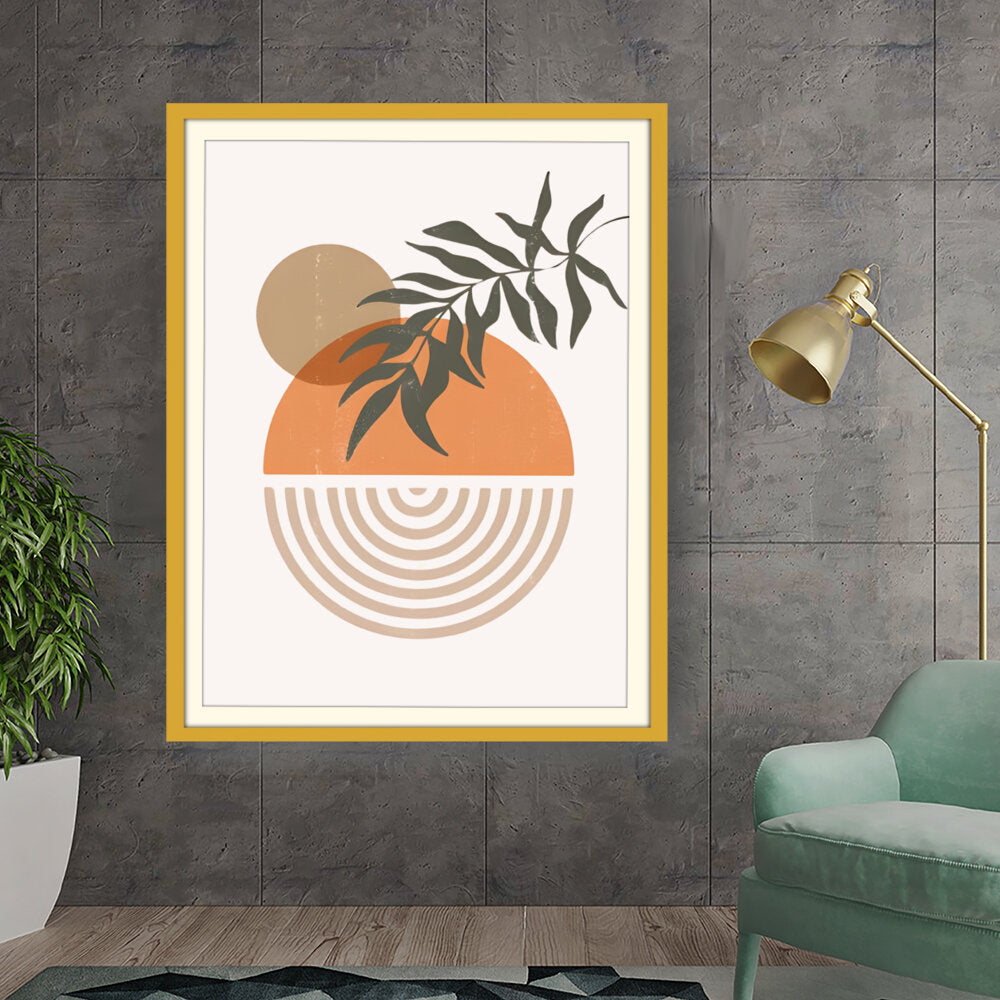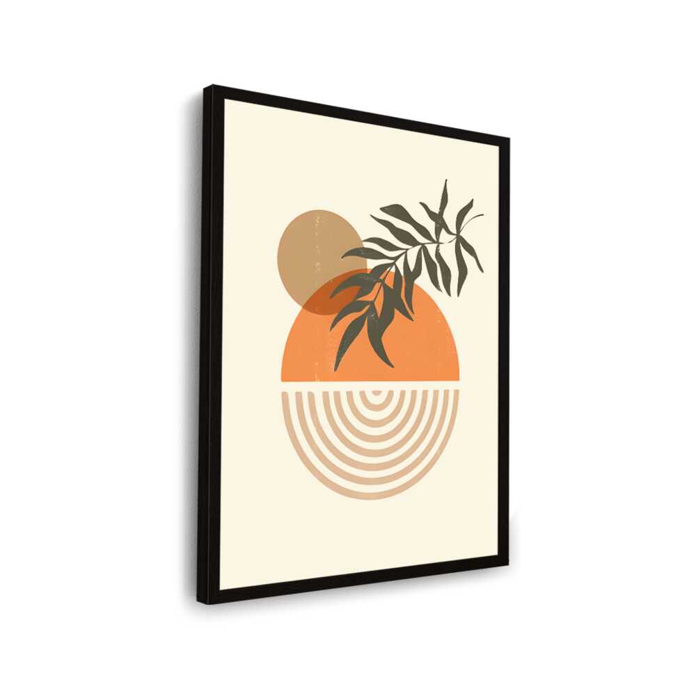 This modern digital illustration beautifully balances organic shapes and geometric patterns. The earthy tones and foliage add a calming touch, making it an ideal statement piece for contemporary interiors.