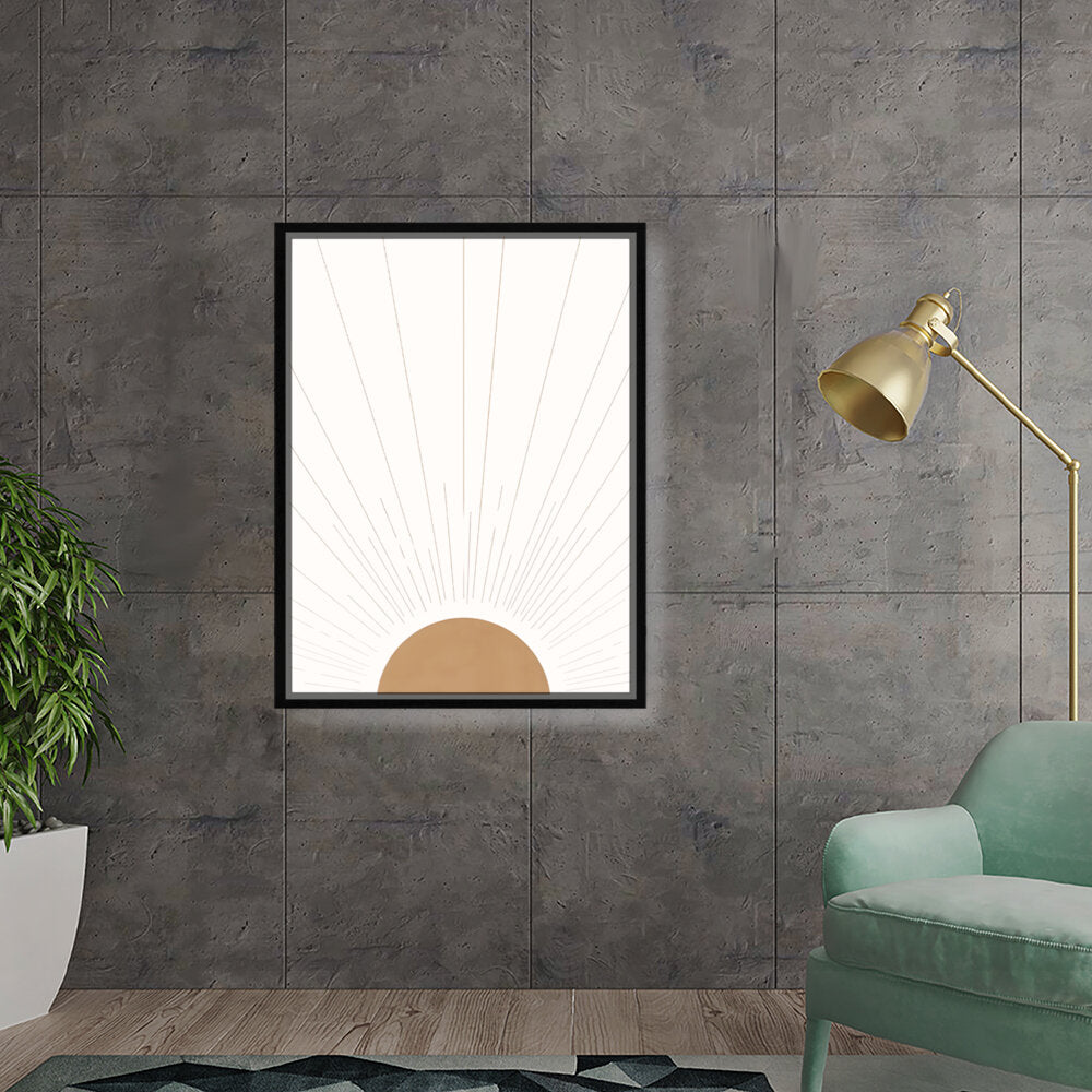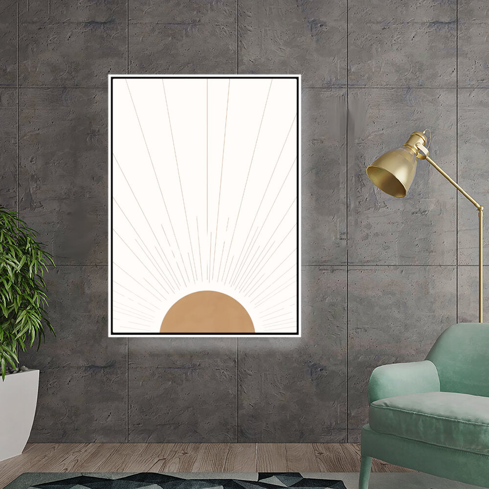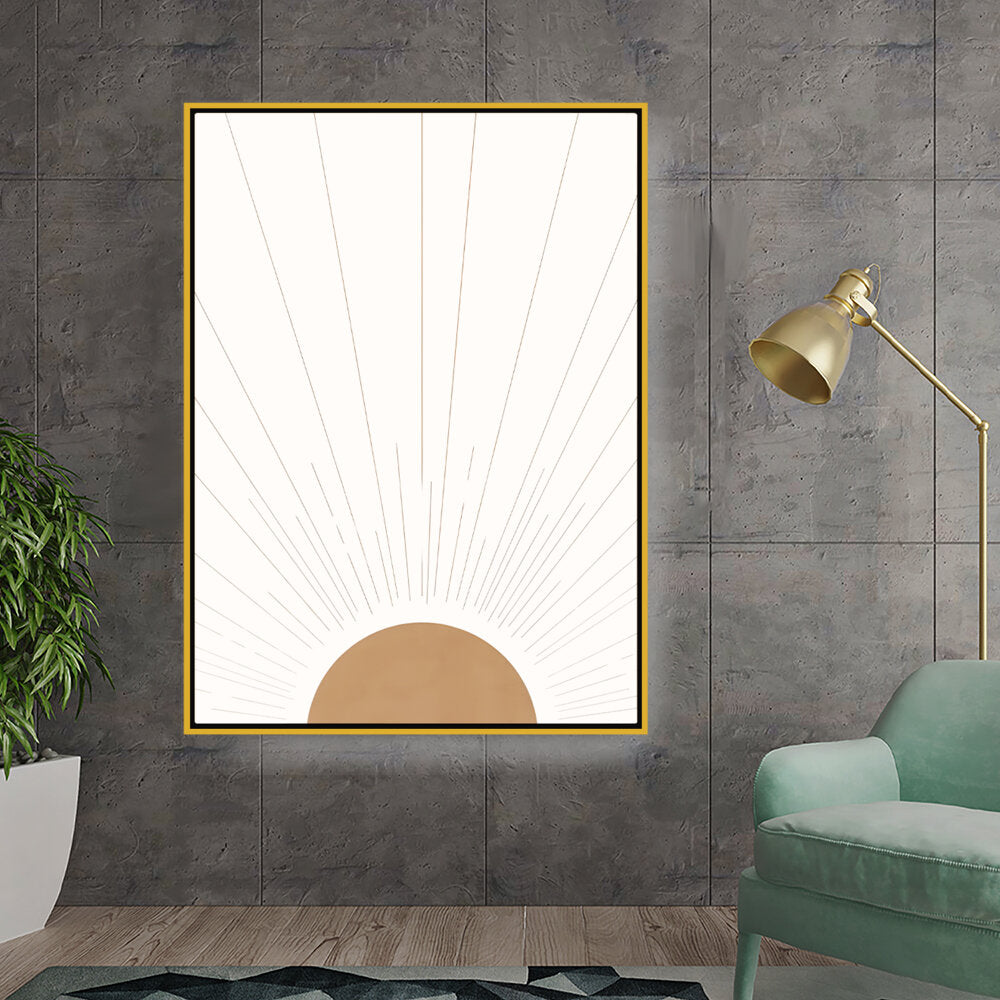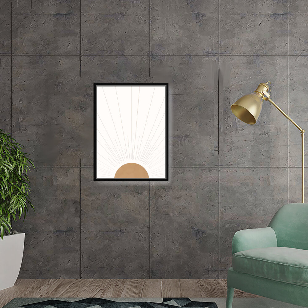 Radiant Dawn captures the essence of sunlight breaking through the horizon with simple yet elegant geometric shapes. The minimalist design makes it a timeless addition to any space, perfect for adding warmth and serenity.