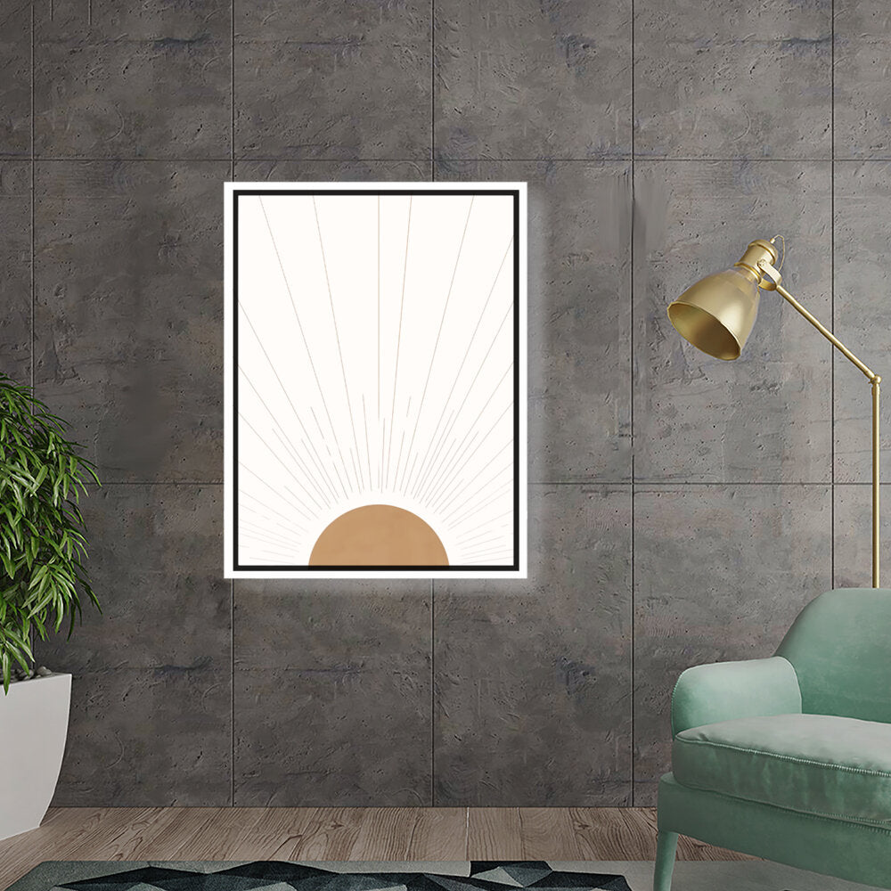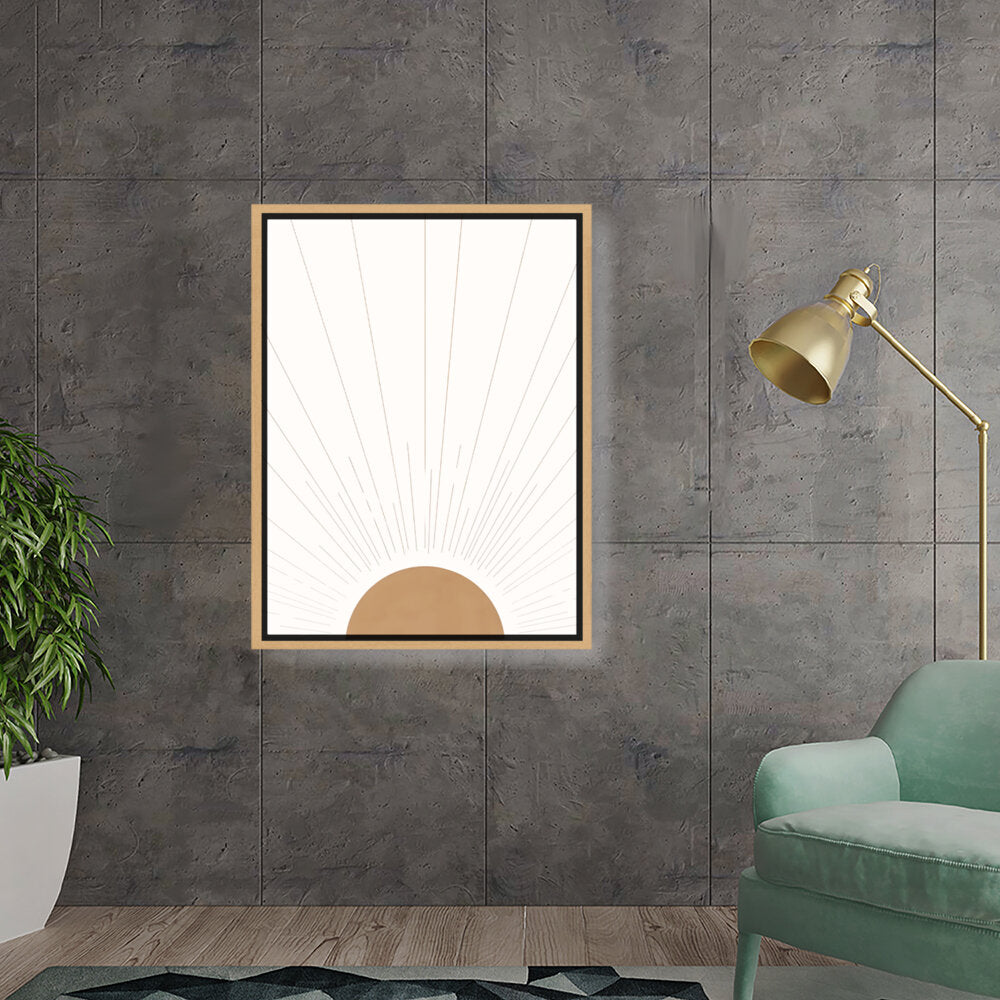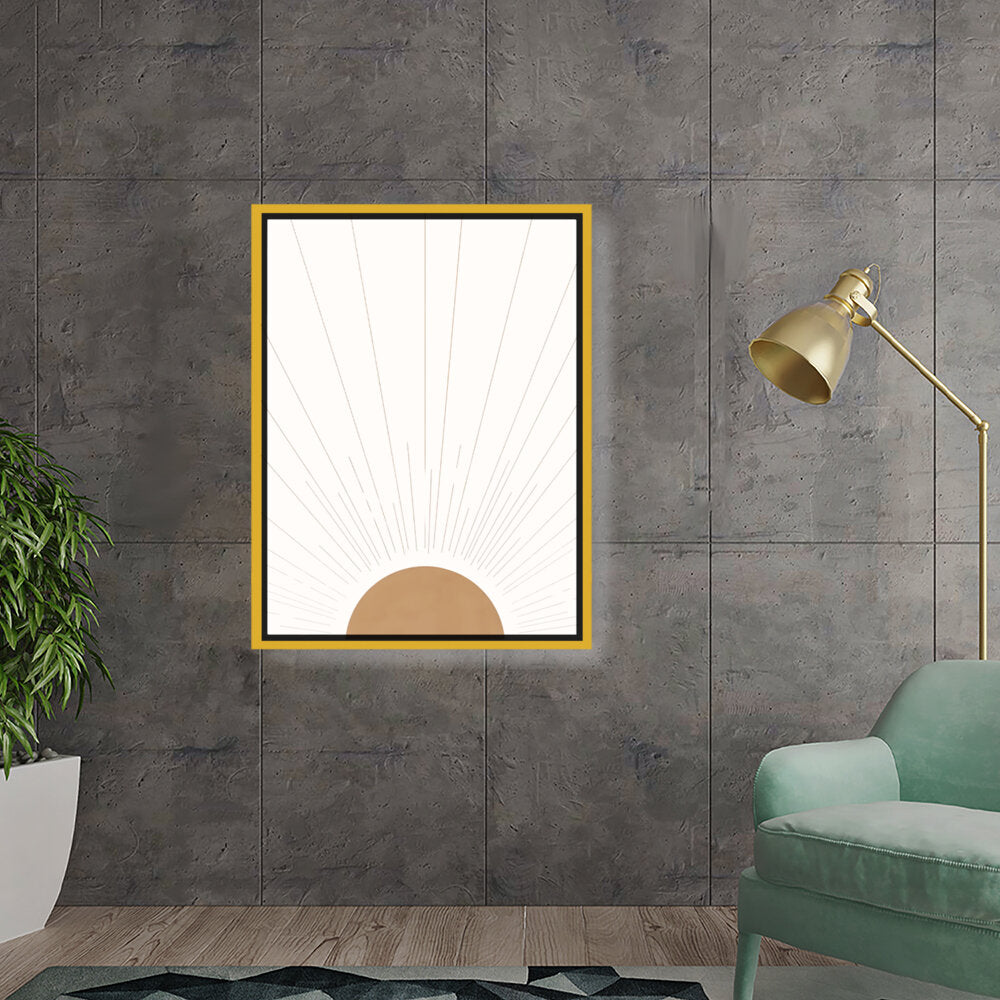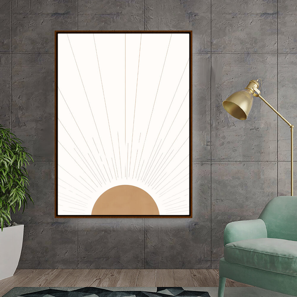 Radiant Dawn captures the essence of sunlight breaking through the horizon with simple yet elegant geometric shapes. The minimalist design makes it a timeless addition to any space, perfect for adding warmth and serenity.