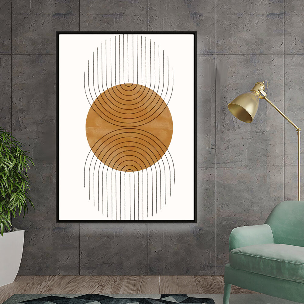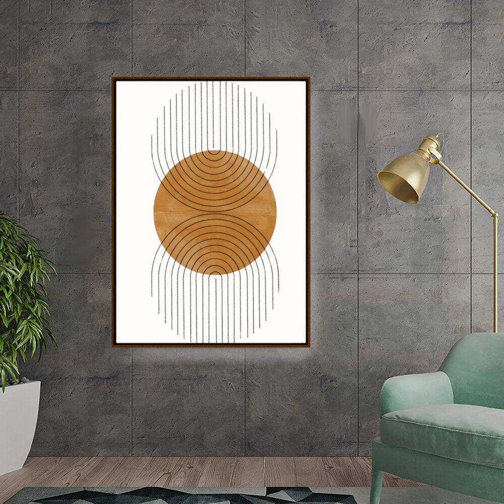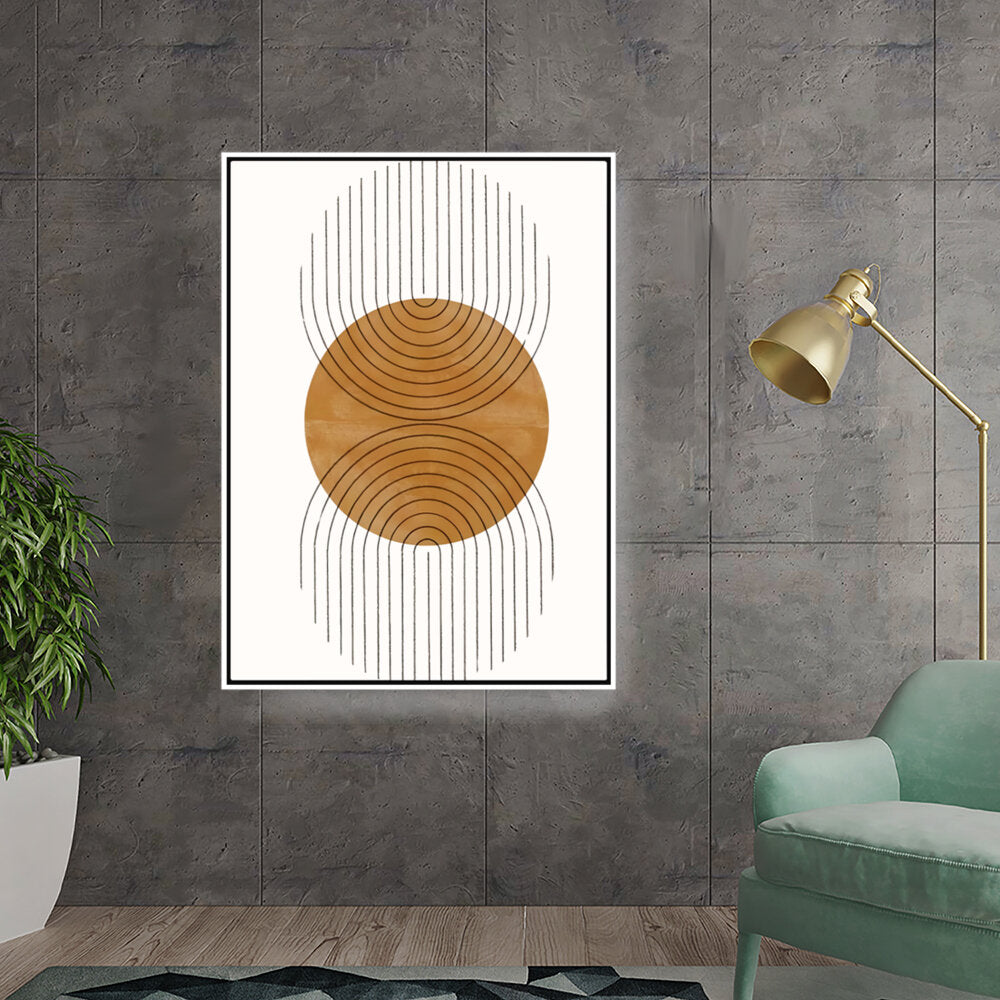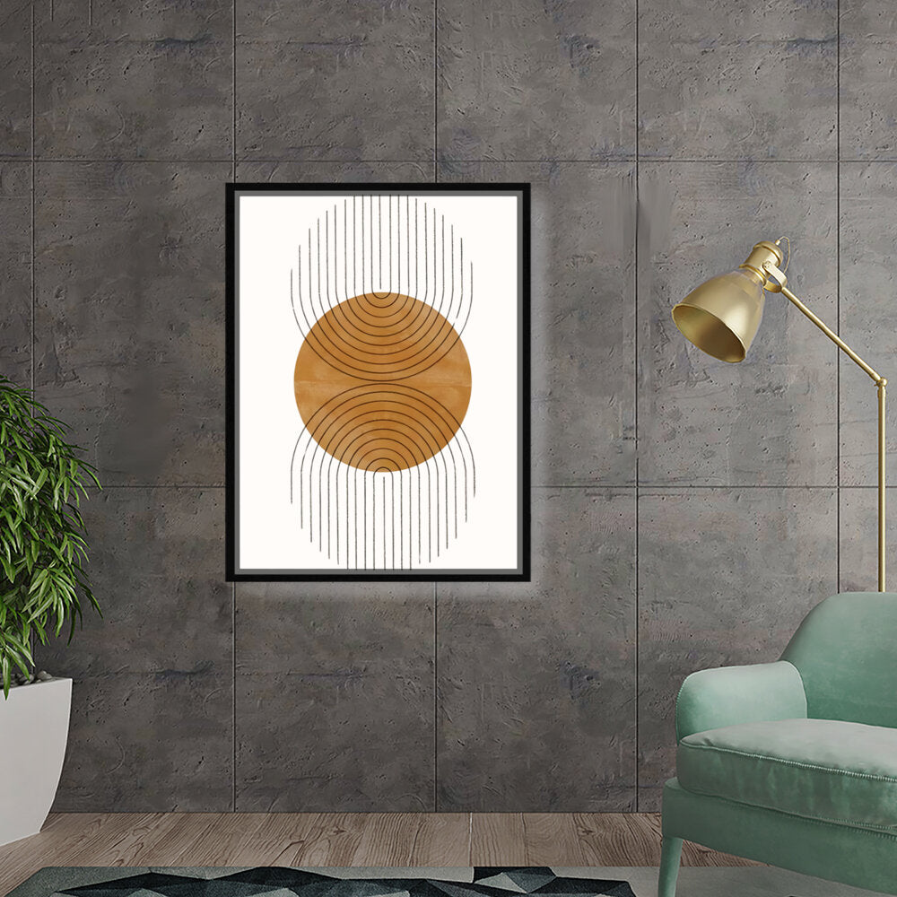 This artwork features a harmonious balance of curves and lines, creating an engaging visual rhythm. Its warm tones and minimalistic design make it perfect for any contemporary space.