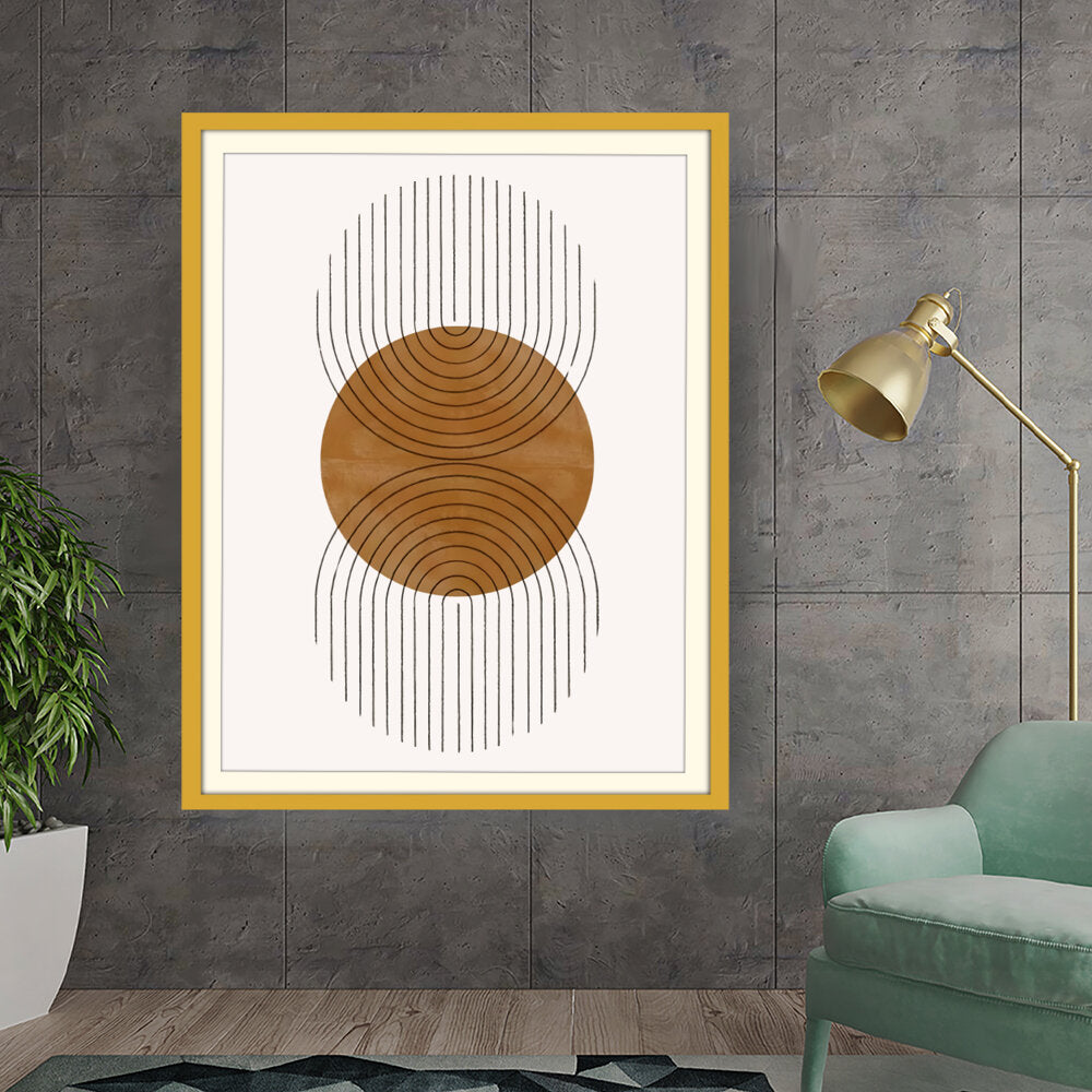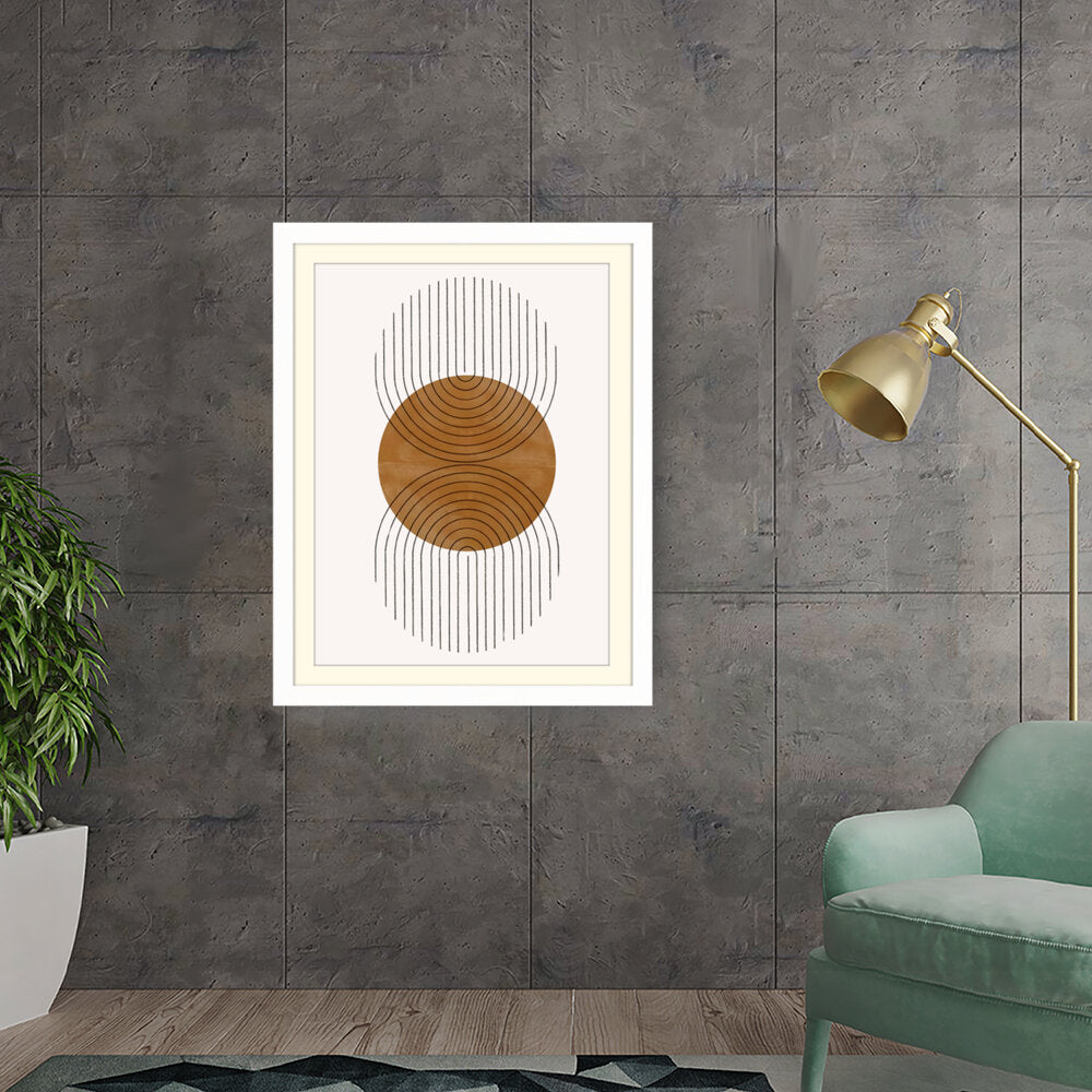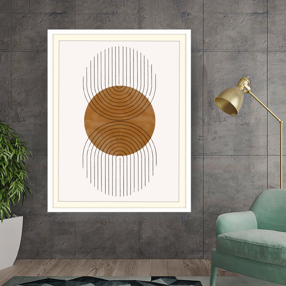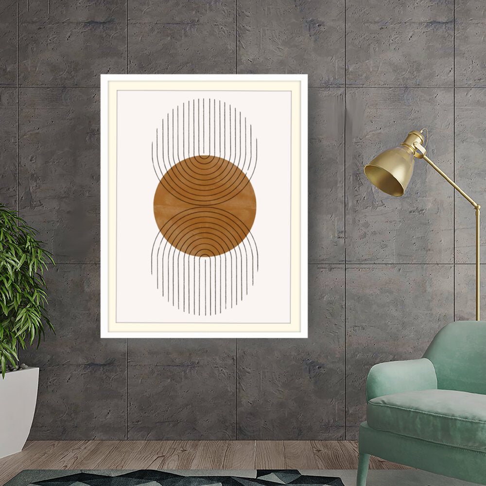 This artwork features a harmonious balance of curves and lines, creating an engaging visual rhythm. Its warm tones and minimalistic design make it perfect for any contemporary space.