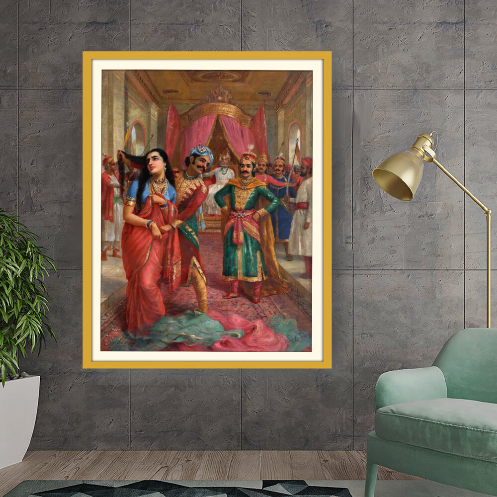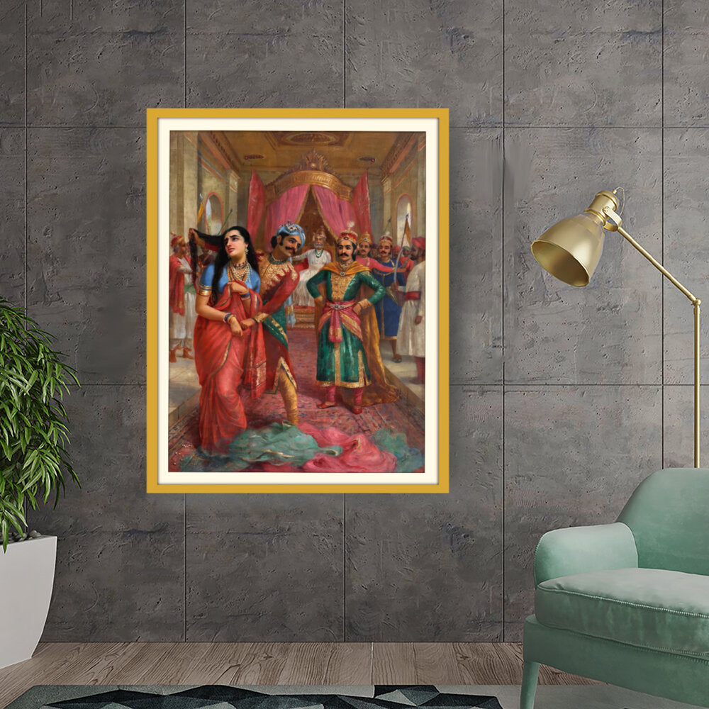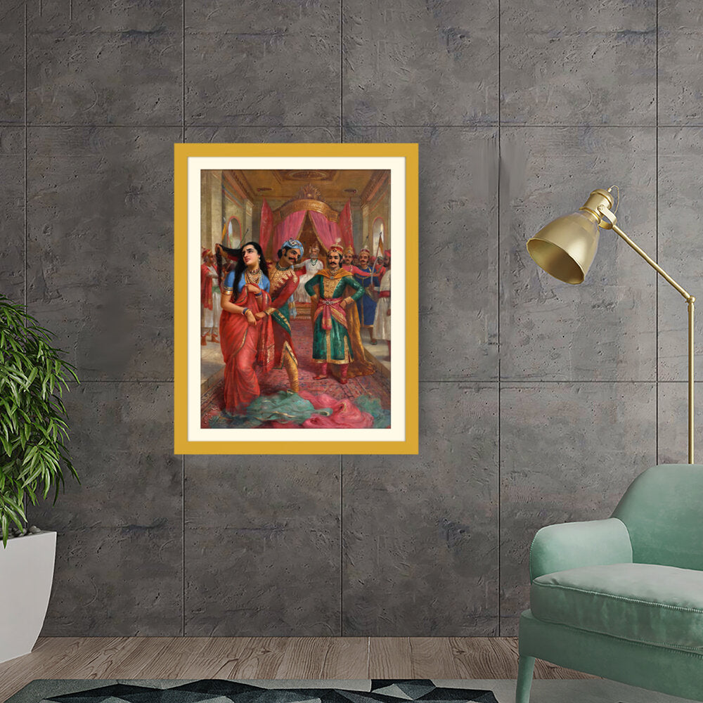 This stunning oil painting captures a vibrant royal scene featuring elegantly dressed figures in traditional attire. The rich colors and intricate details showcase the artist's skill and reflect the grandeur of Indian heritage.