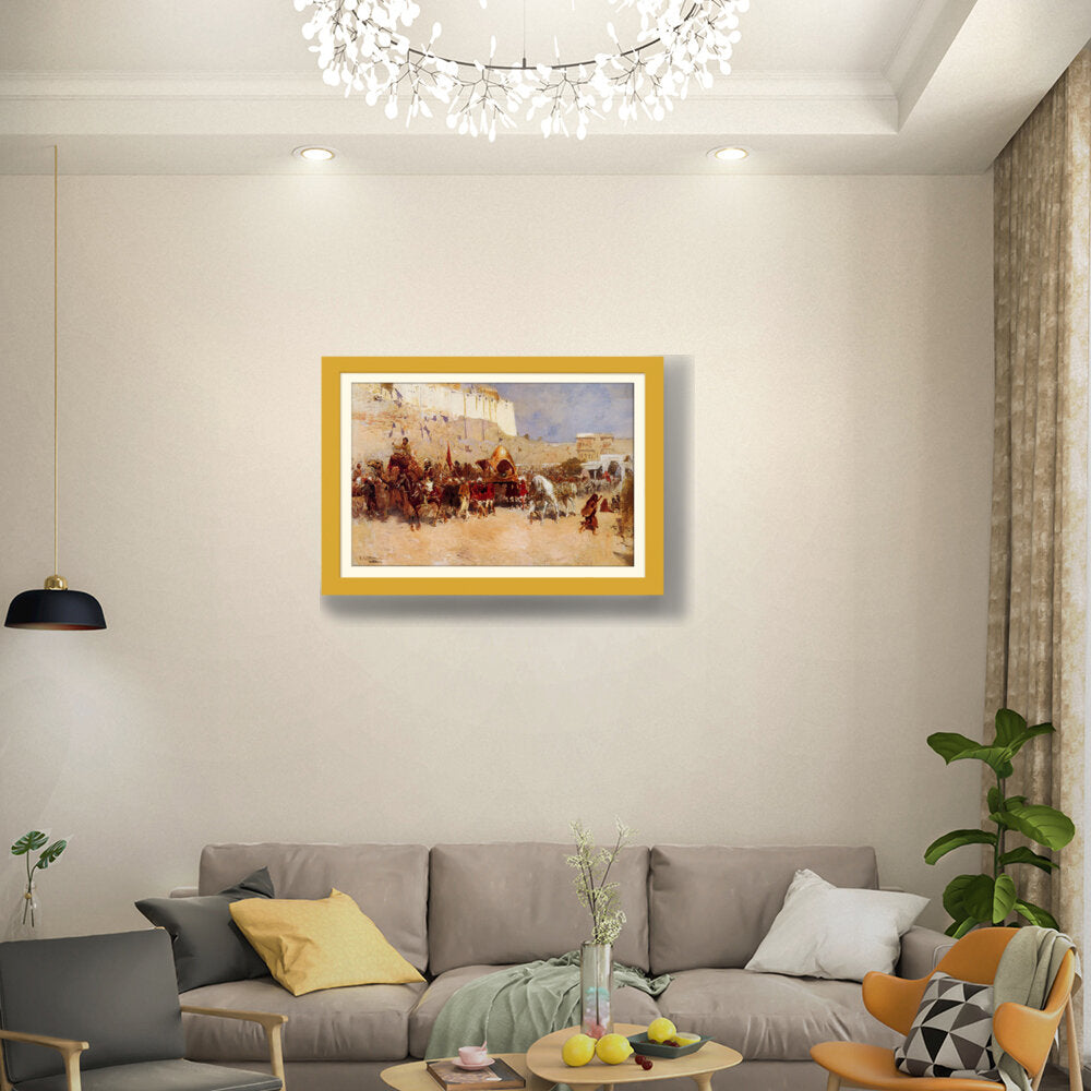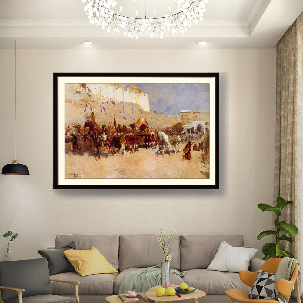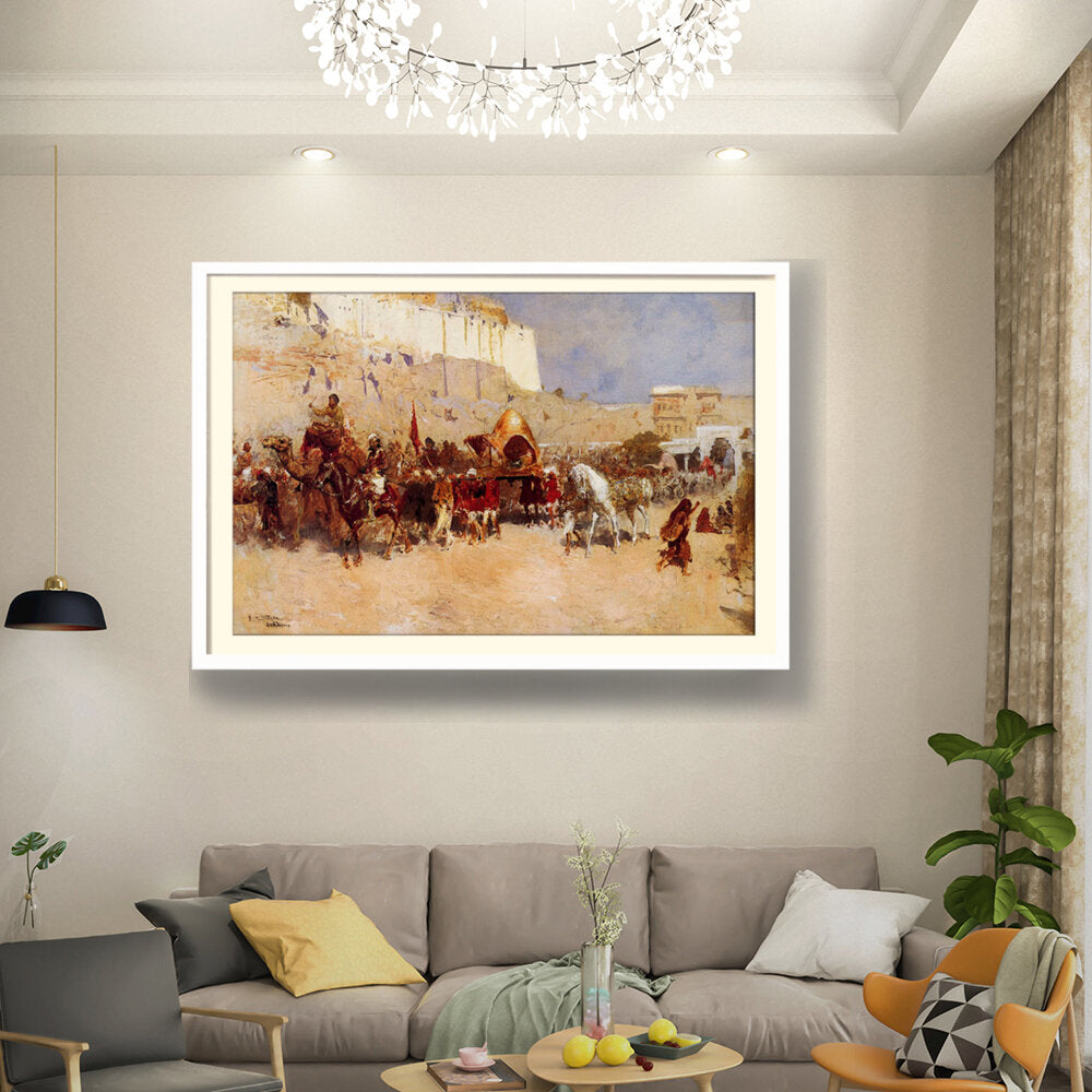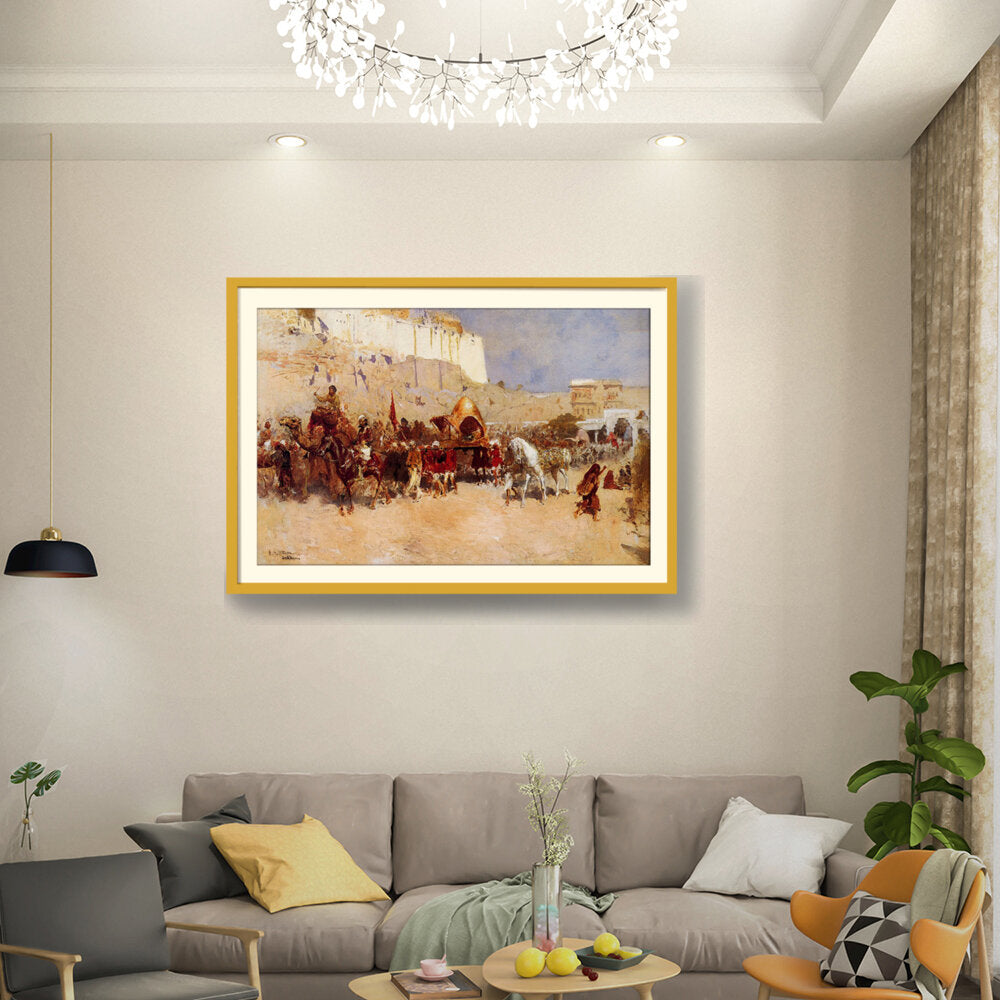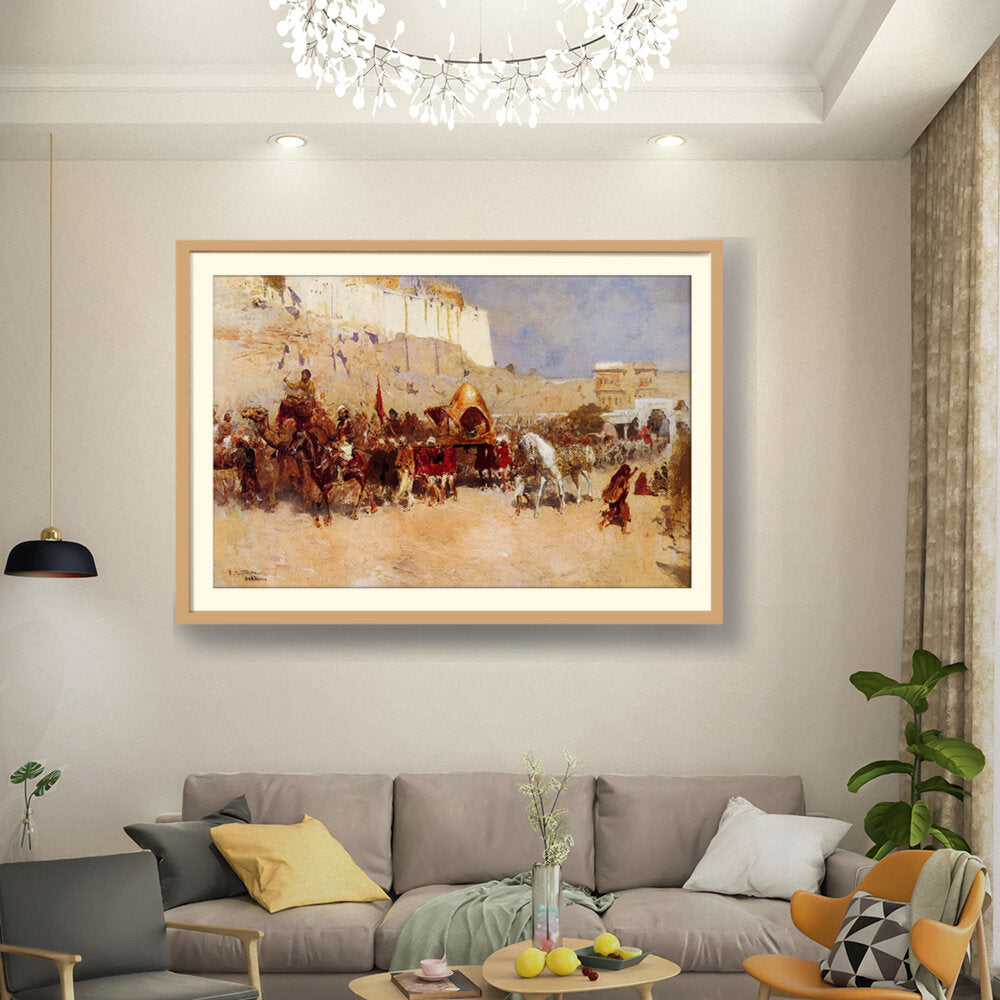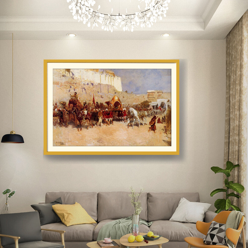 This captivating artwork depicts a royal procession, showcasing vibrant details and historical significance. The vivid colors and dynamic composition draw the viewer into the rich cultural narrative captured on canvas.