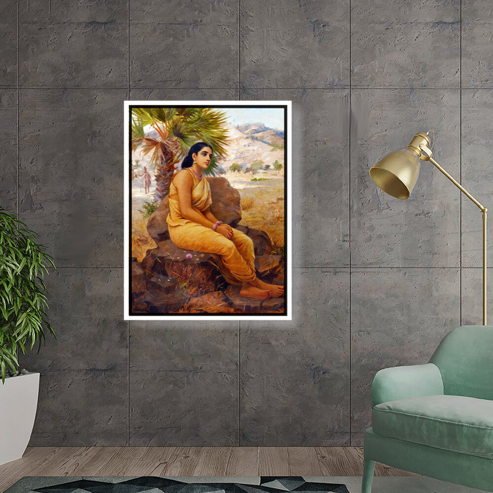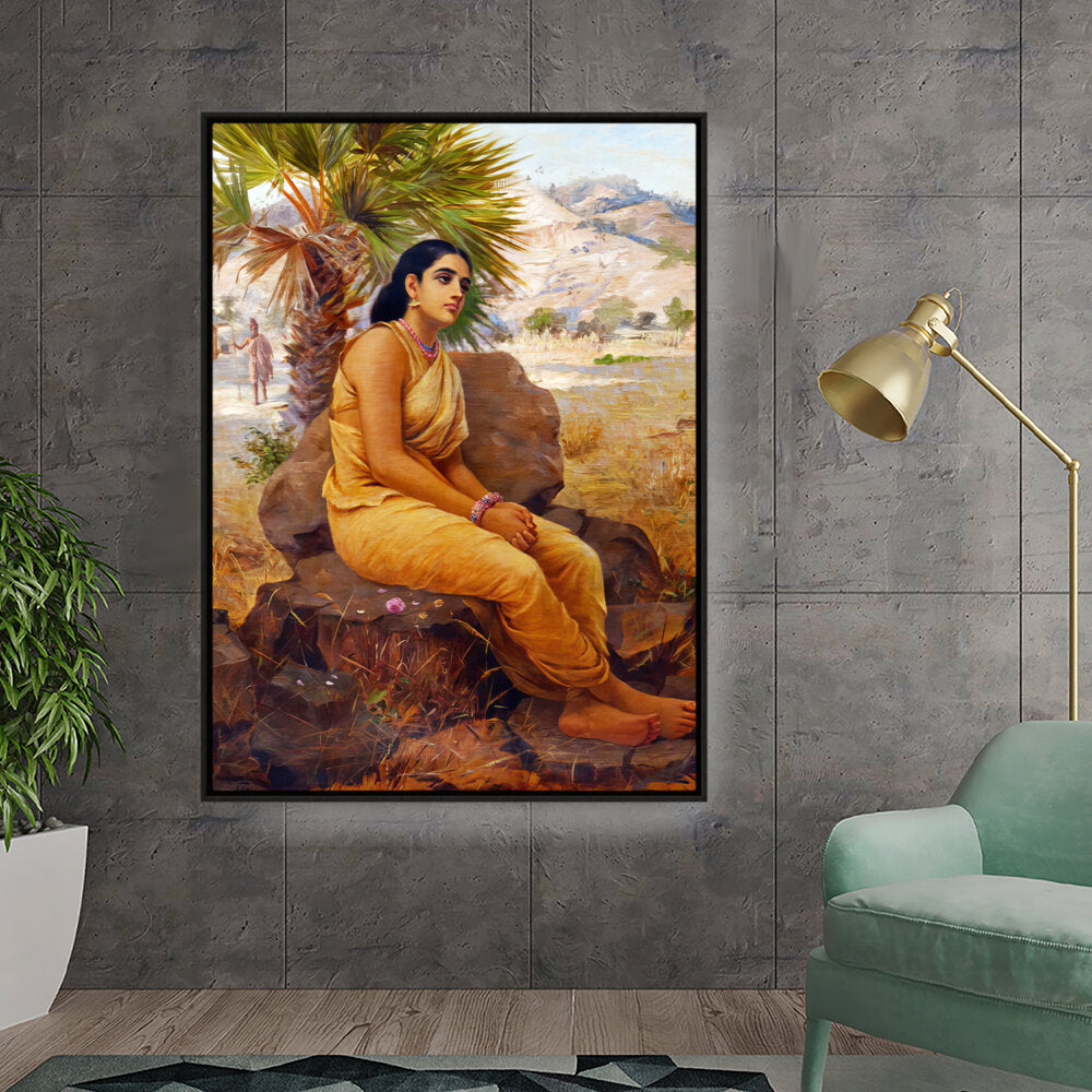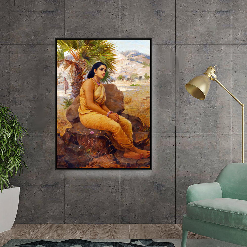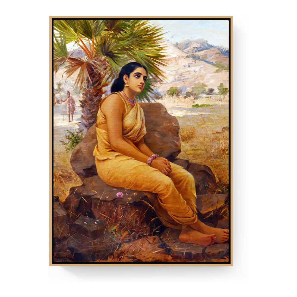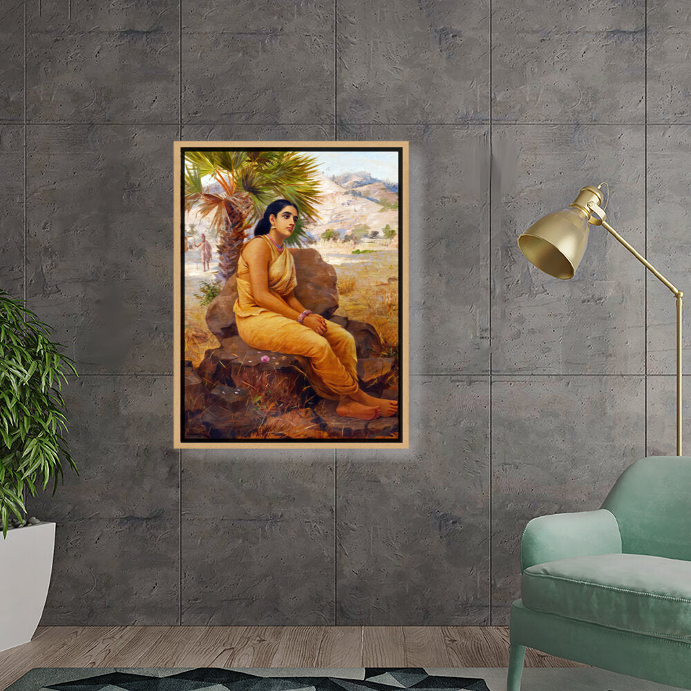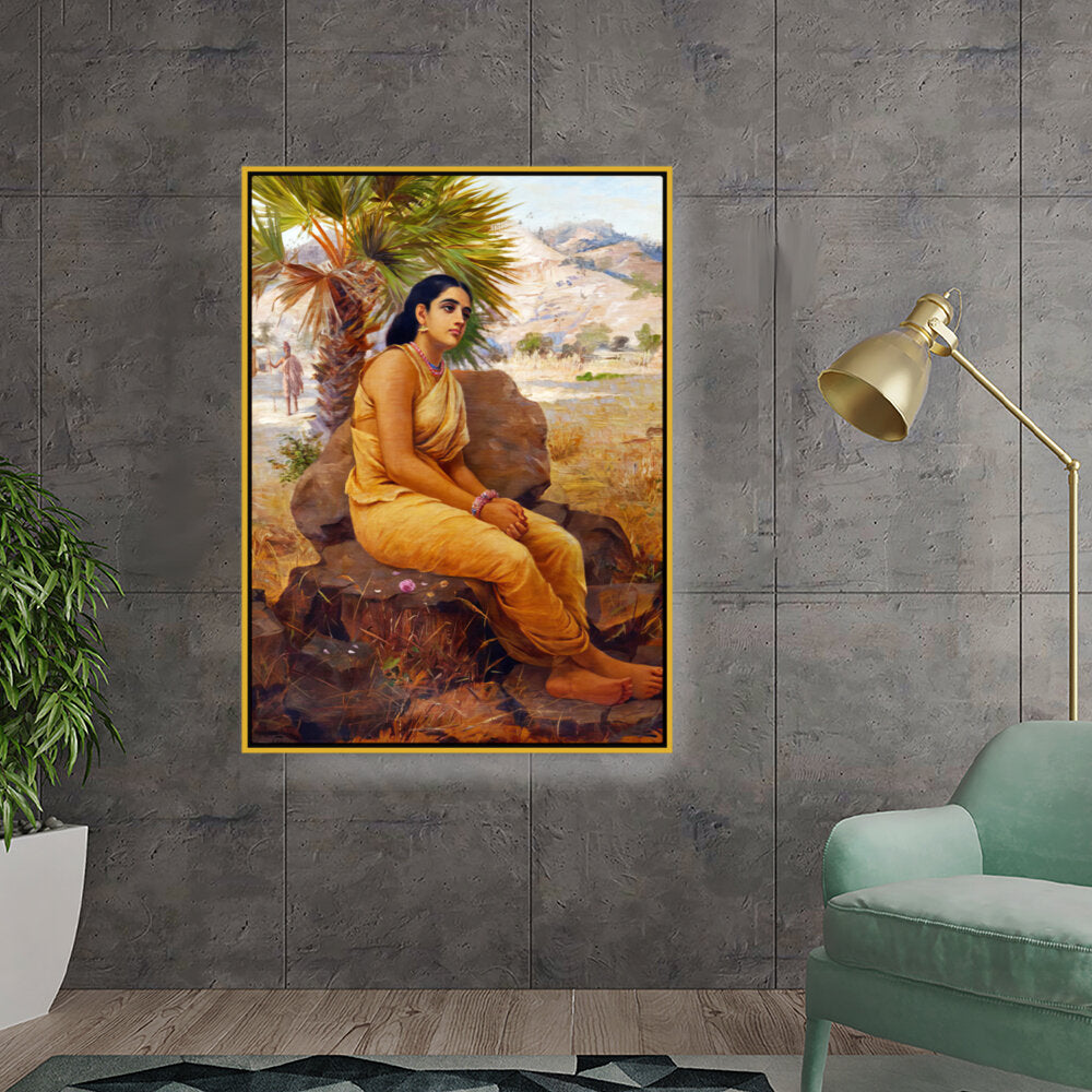 This exquisite oil on canvas piece captures a moment of introspection with a serene figure draped in traditional attire, set against a picturesque landscape. The artist beautifully combines realism and cultural elements to evoke a sense of tranquility and grace.