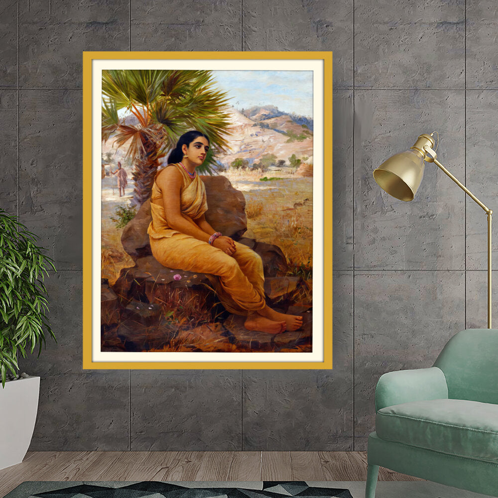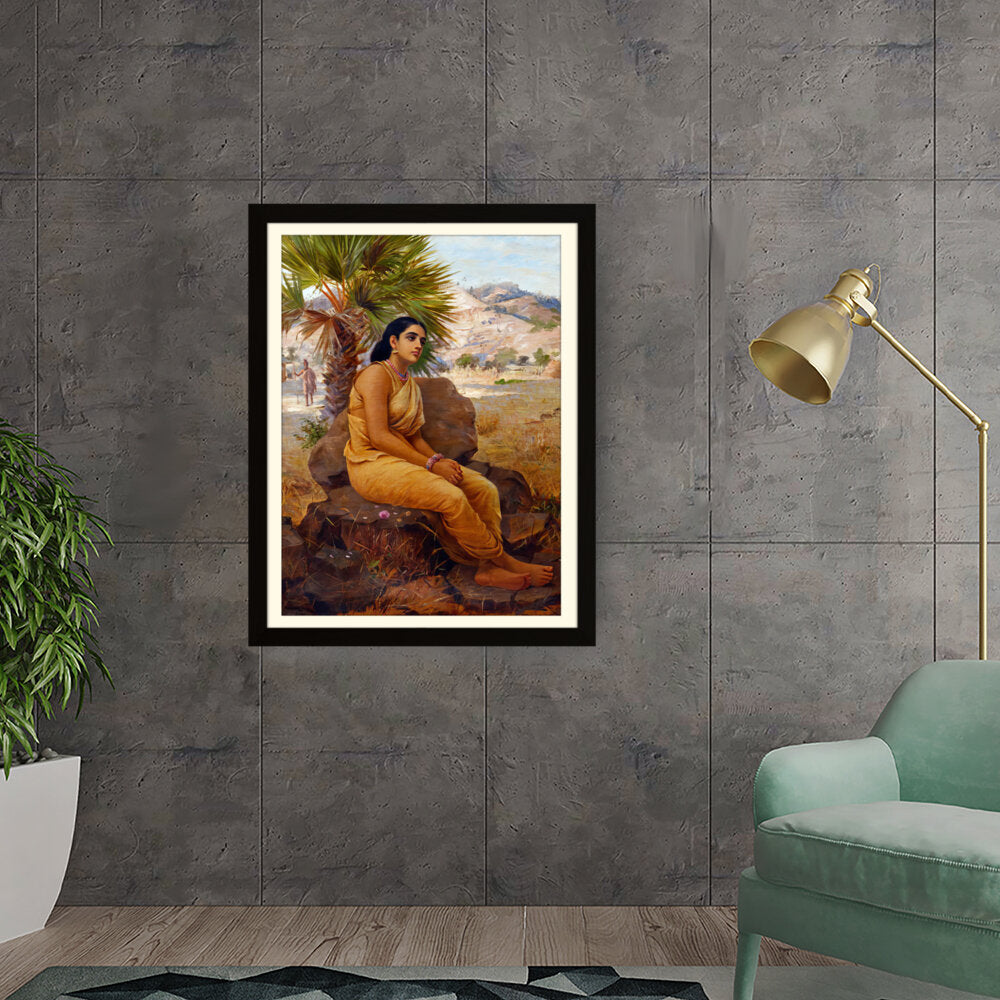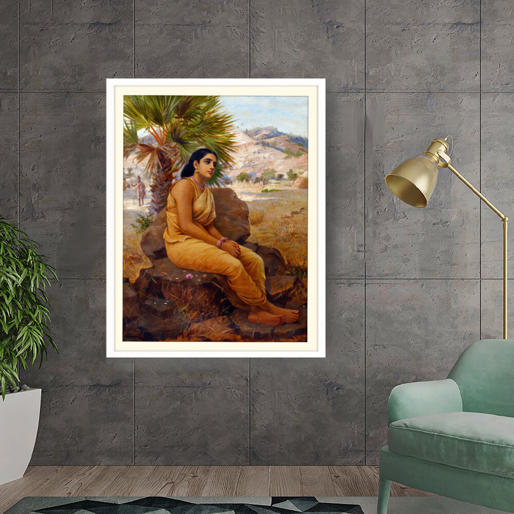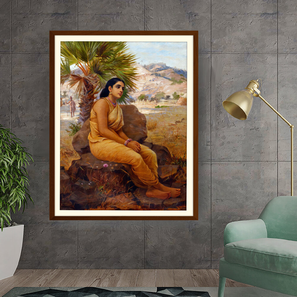 This exquisite oil on canvas piece captures a moment of introspection with a serene figure draped in traditional attire, set against a picturesque landscape. The artist beautifully combines realism and cultural elements to evoke a sense of tranquility and grace.