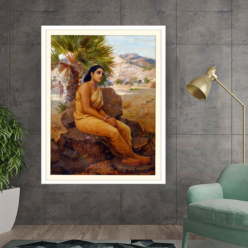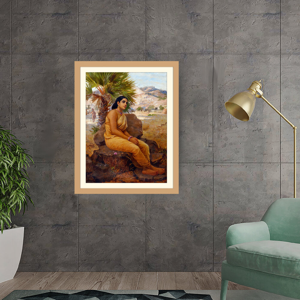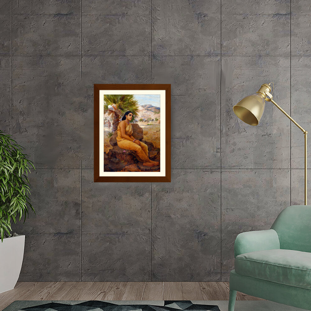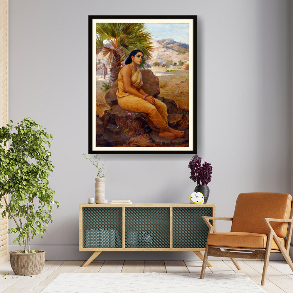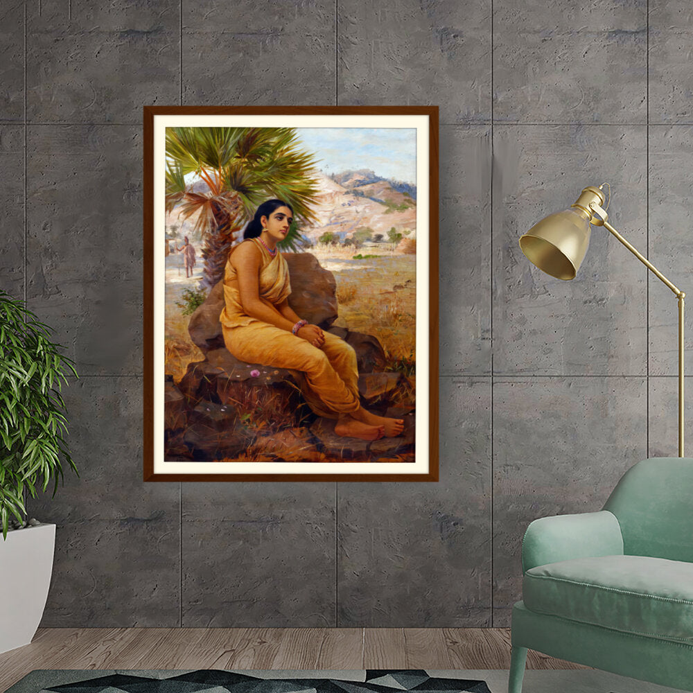 This exquisite oil on canvas piece captures a moment of introspection with a serene figure draped in traditional attire, set against a picturesque landscape. The artist beautifully combines realism and cultural elements to evoke a sense of tranquility and grace.