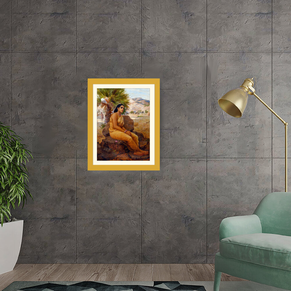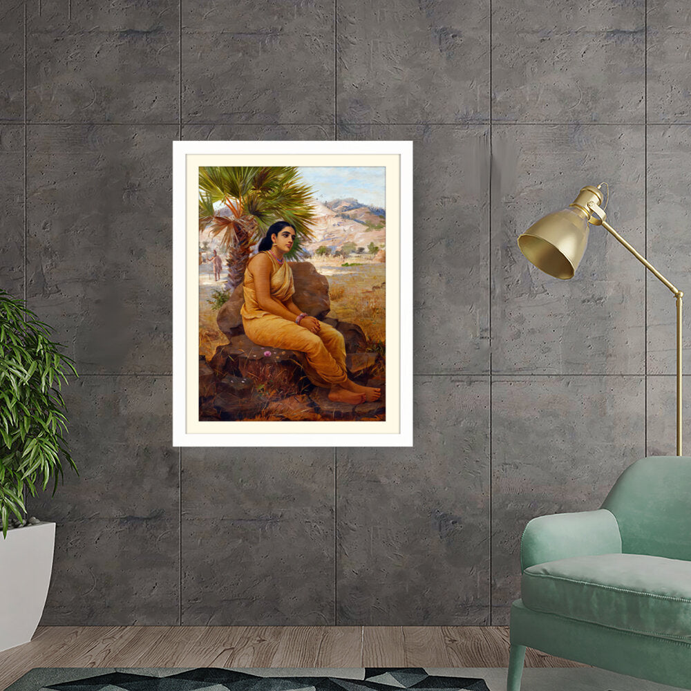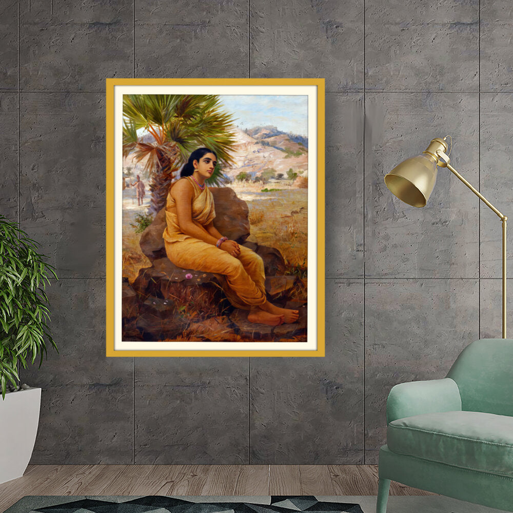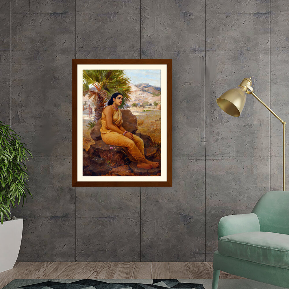 This exquisite oil on canvas piece captures a moment of introspection with a serene figure draped in traditional attire, set against a picturesque landscape. The artist beautifully combines realism and cultural elements to evoke a sense of tranquility and grace.