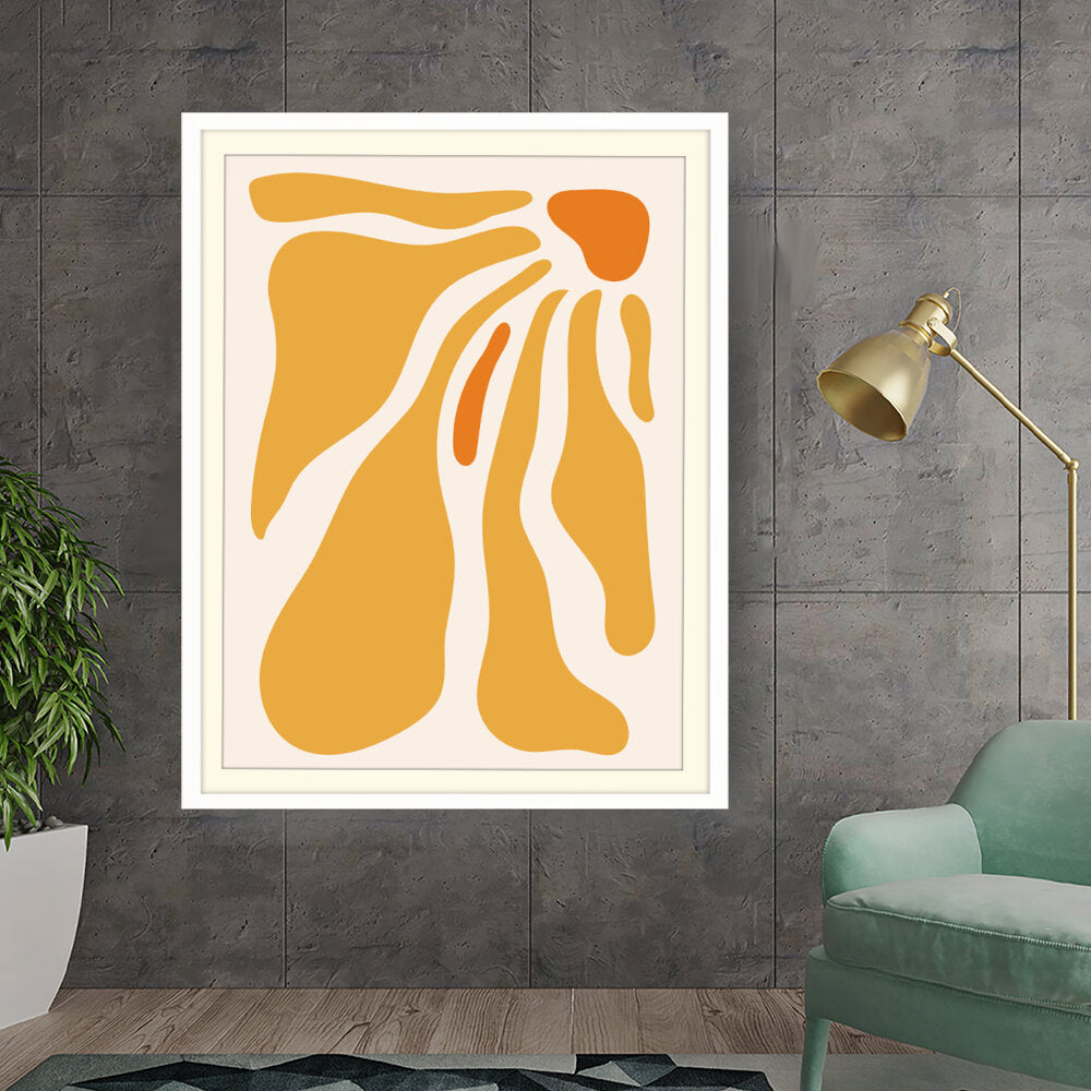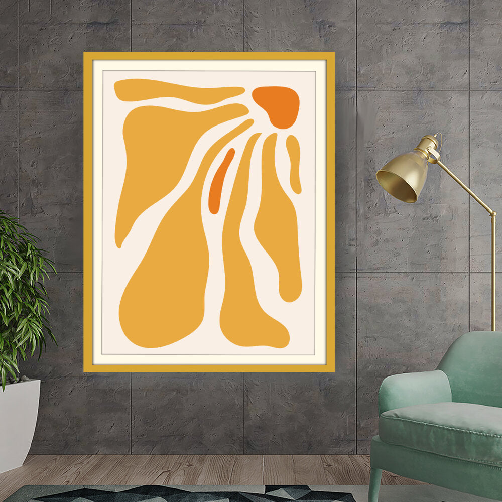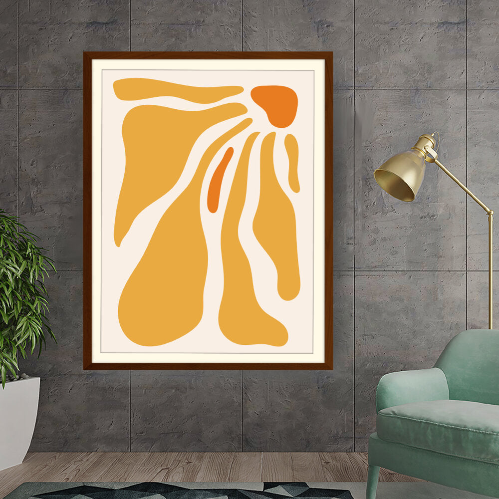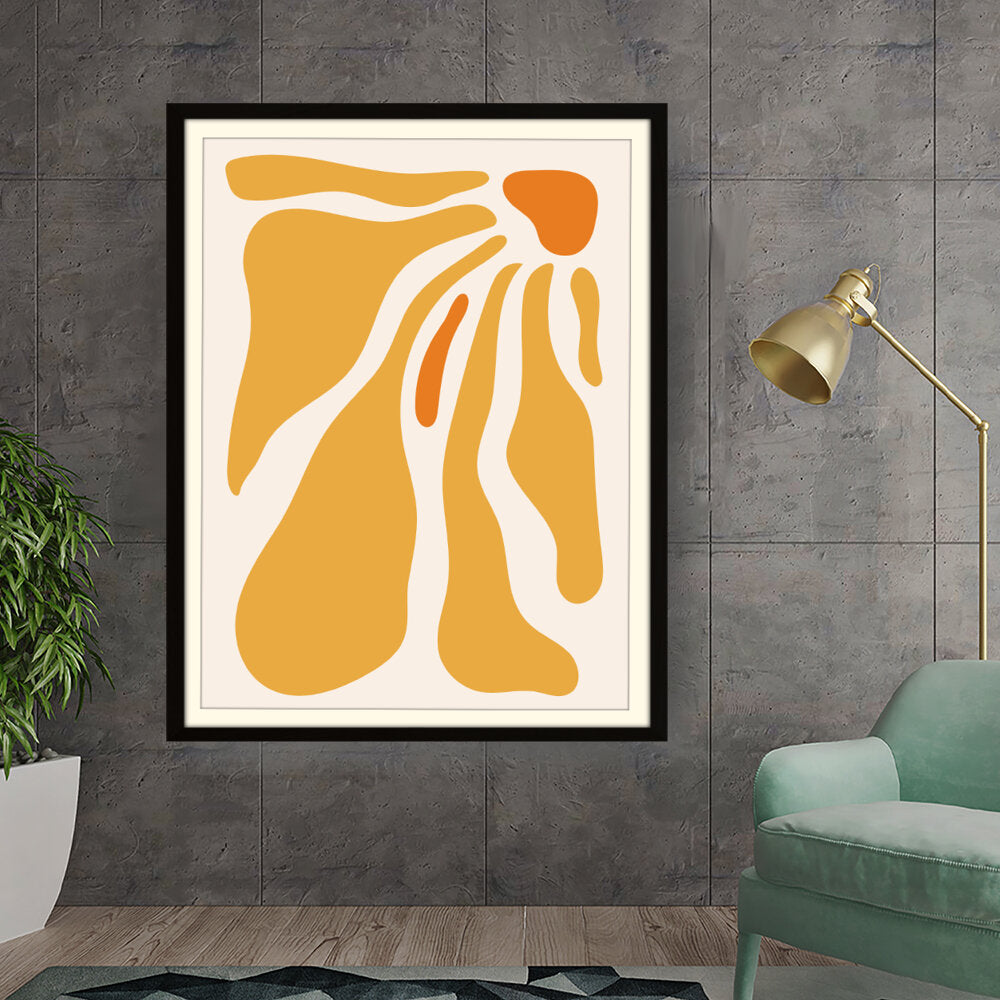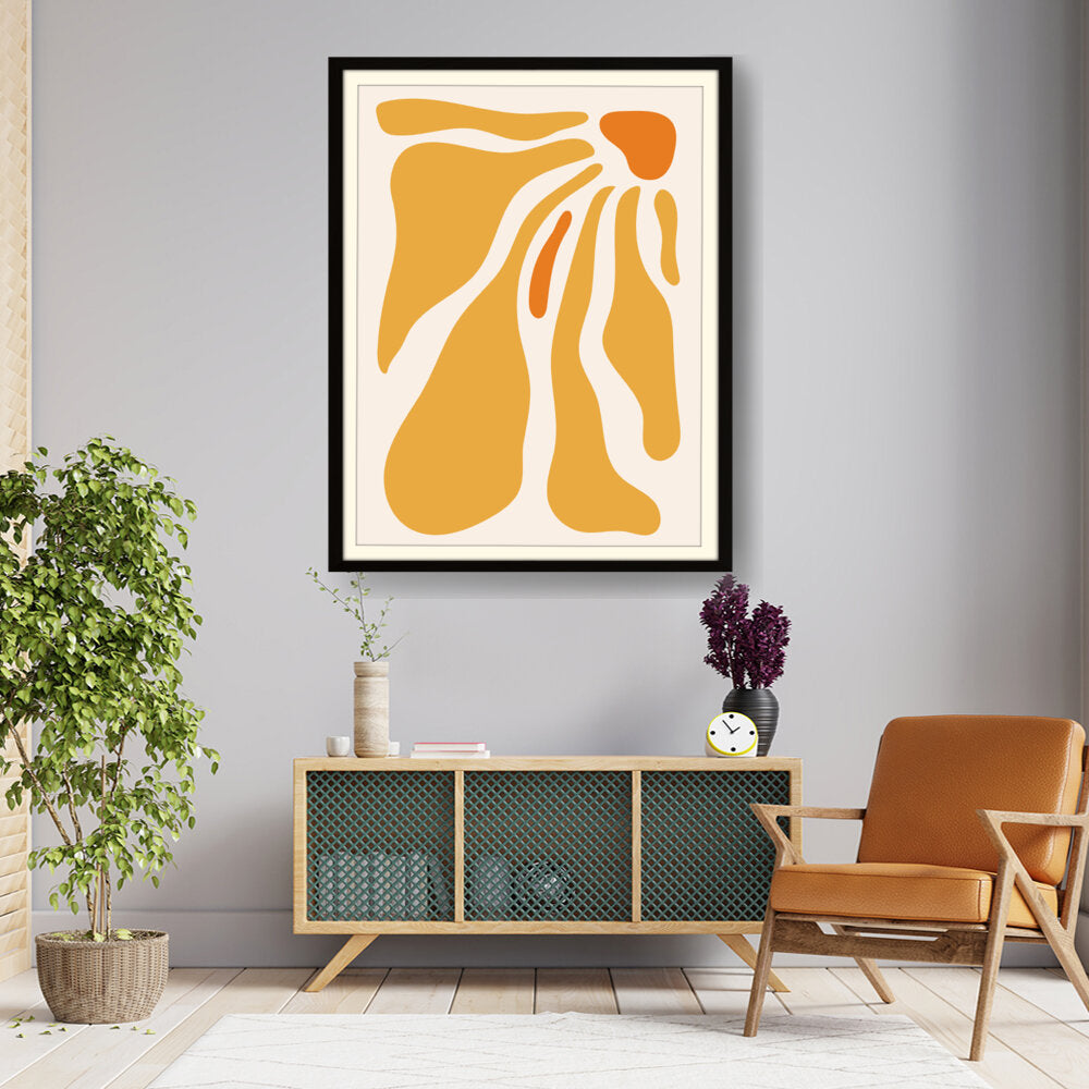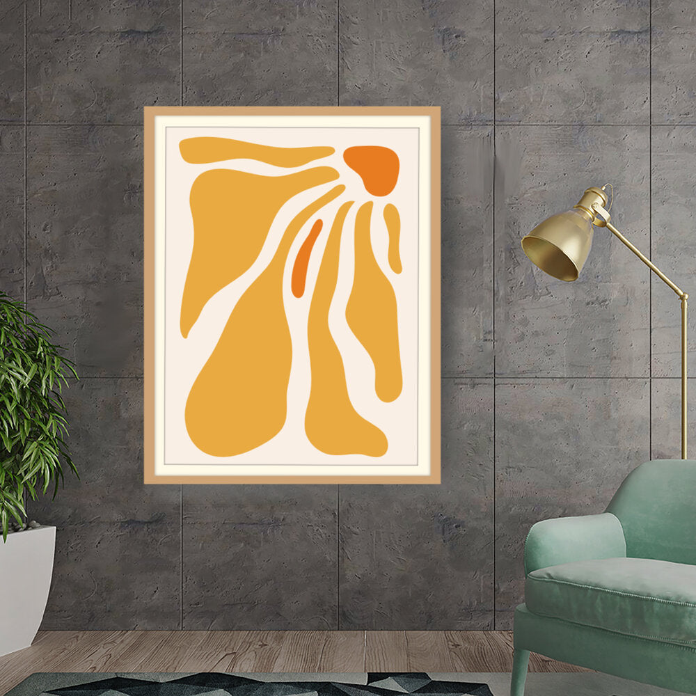 This artwork features flowing shapes in warm tones, evoking a sense of tranquility and playfulness. Perfect for adding a modern touch to your space, it seamlessly complements various interior themes.