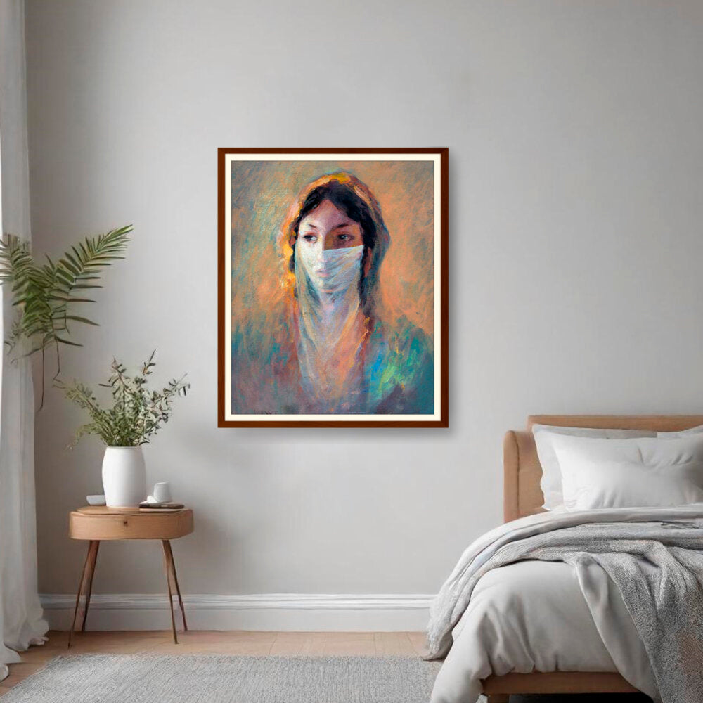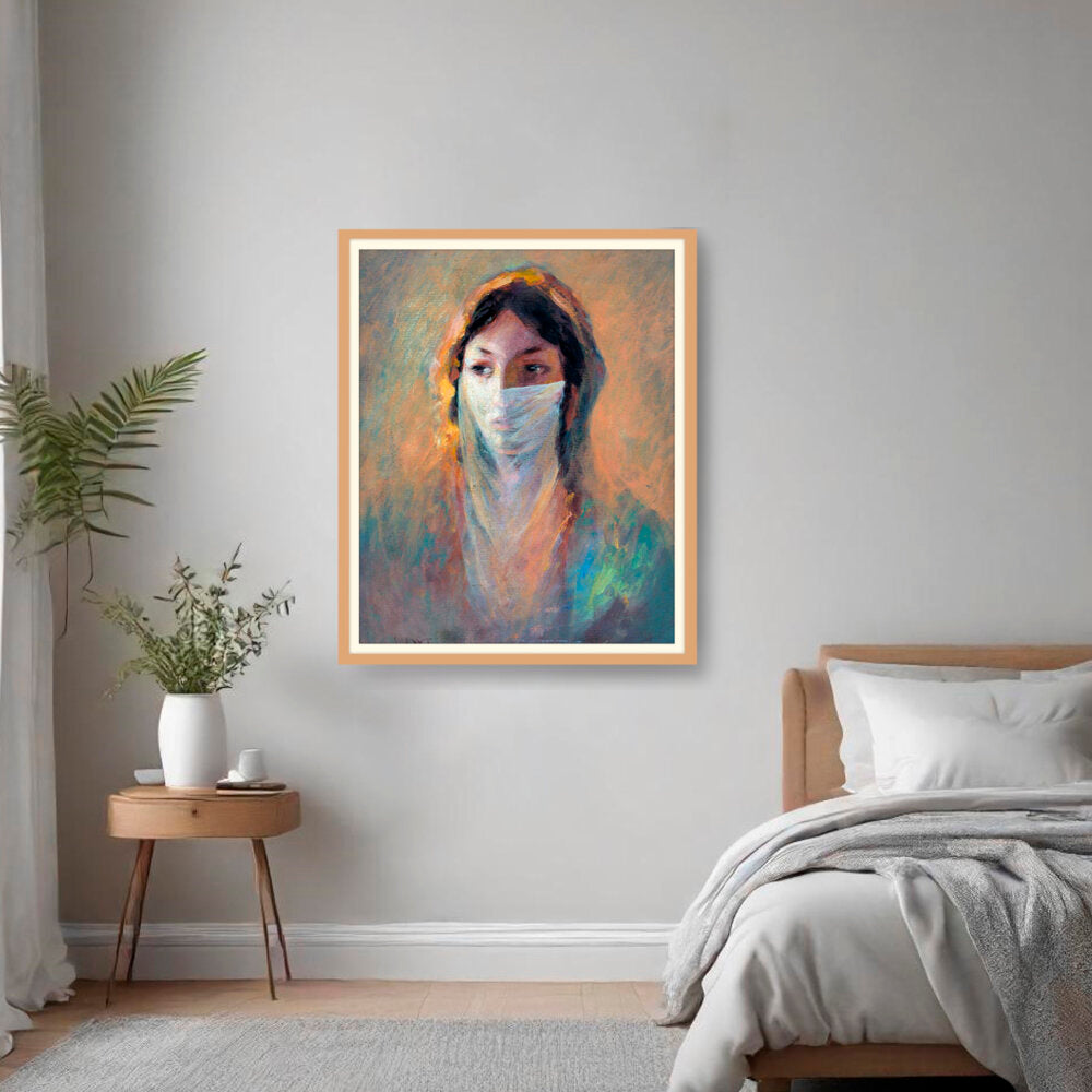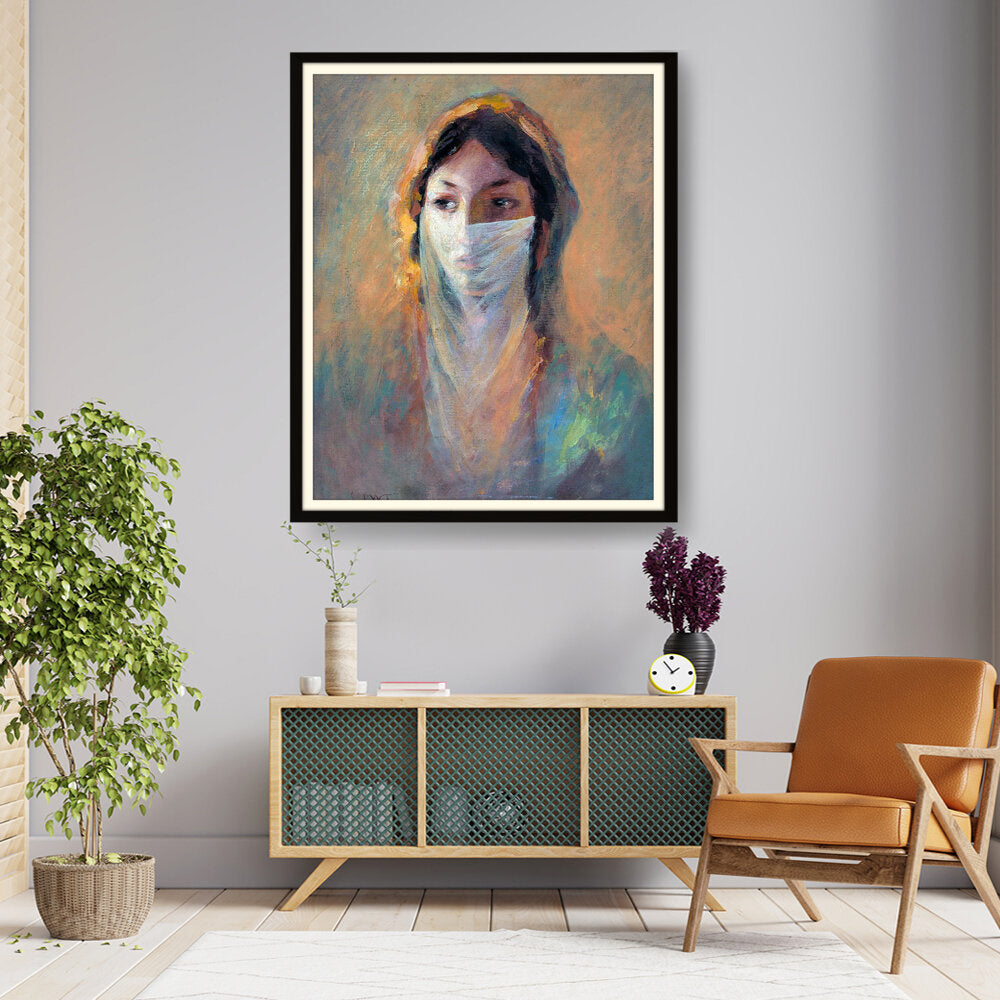 This captivating piece features a woman shrouded in a veil, invoking a sense of mystery and depth. The soft brush strokes and warm hues create an inviting atmosphere perfect for contemplation and reflection.