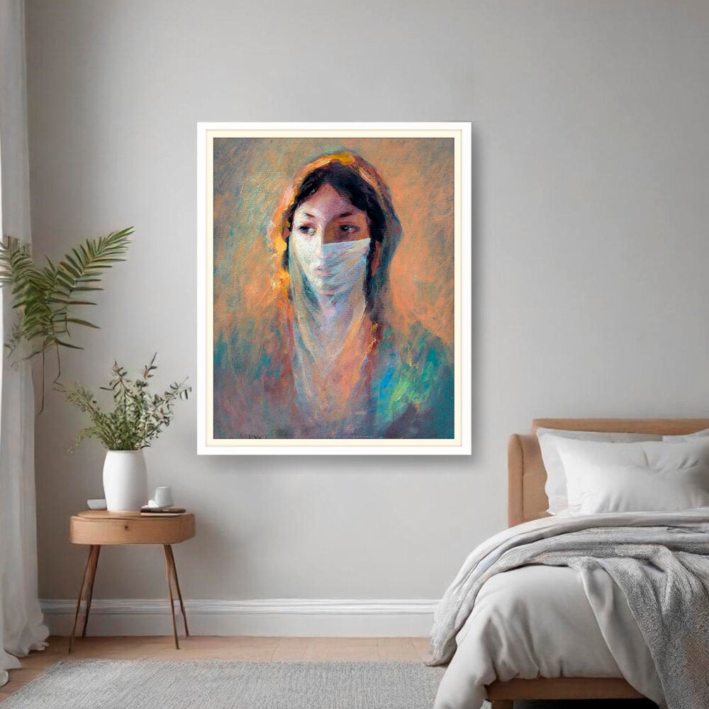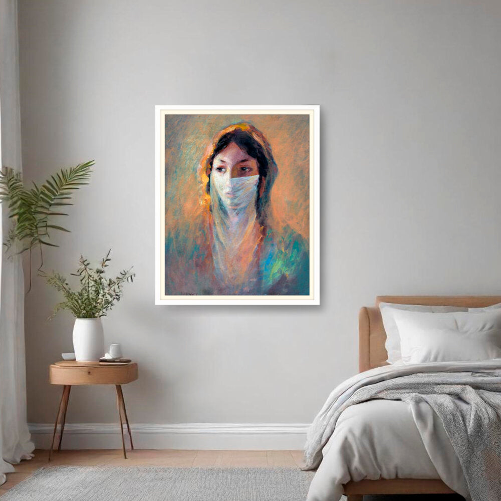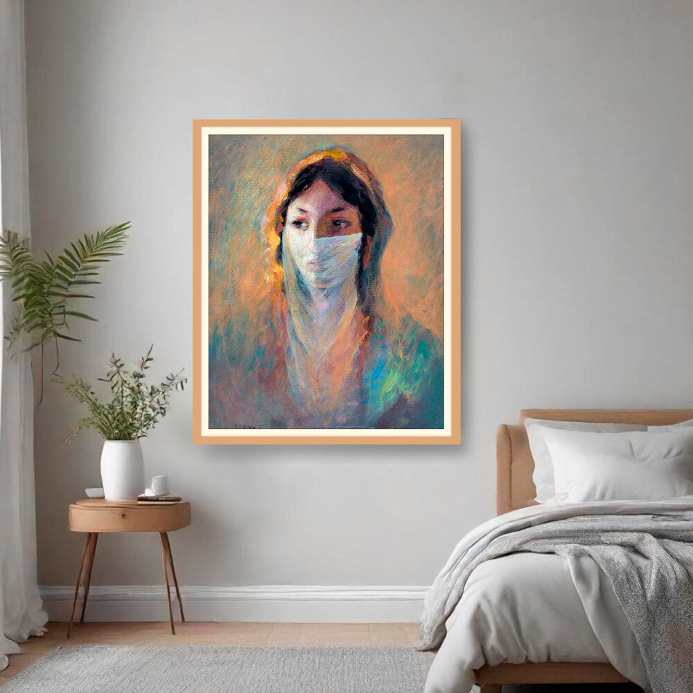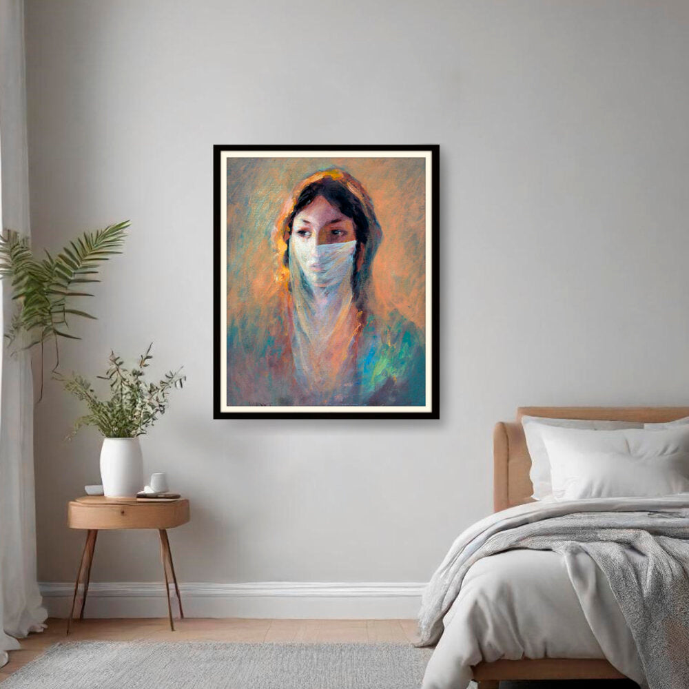 This captivating piece features a woman shrouded in a veil, invoking a sense of mystery and depth. The soft brush strokes and warm hues create an inviting atmosphere perfect for contemplation and reflection.