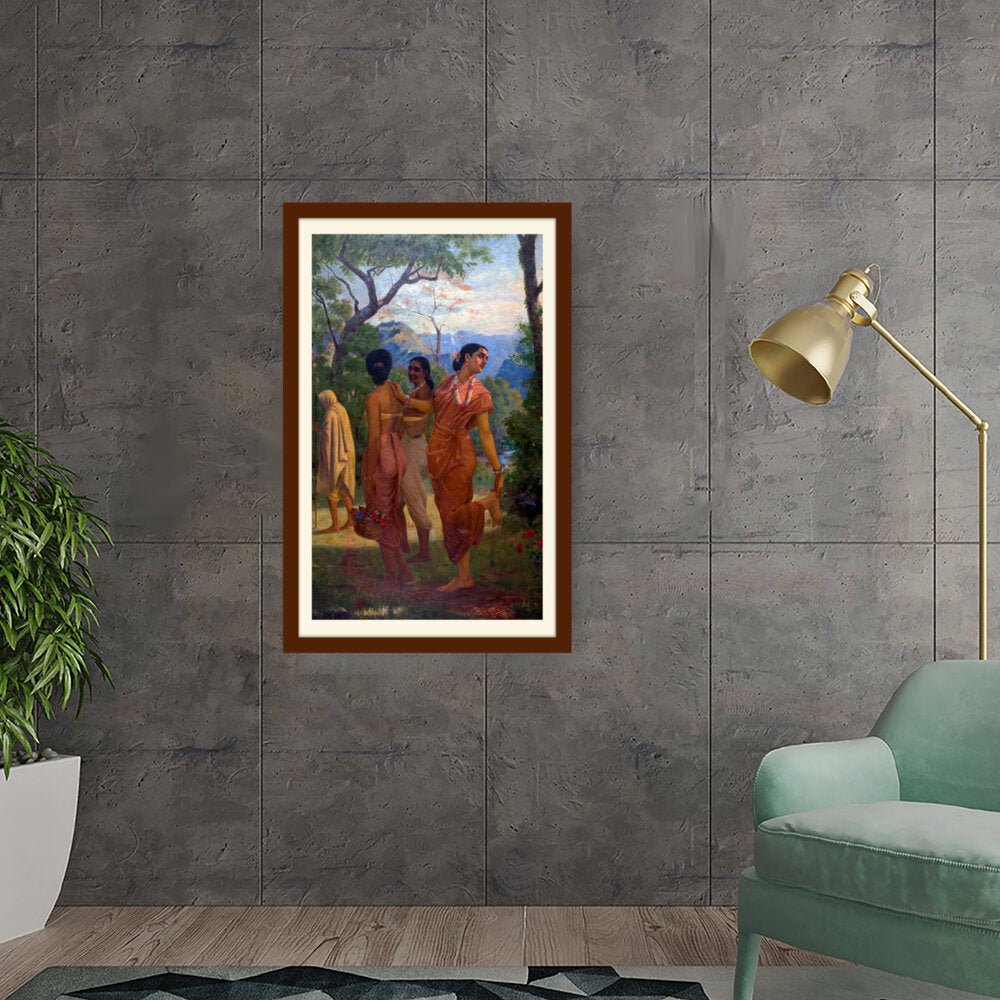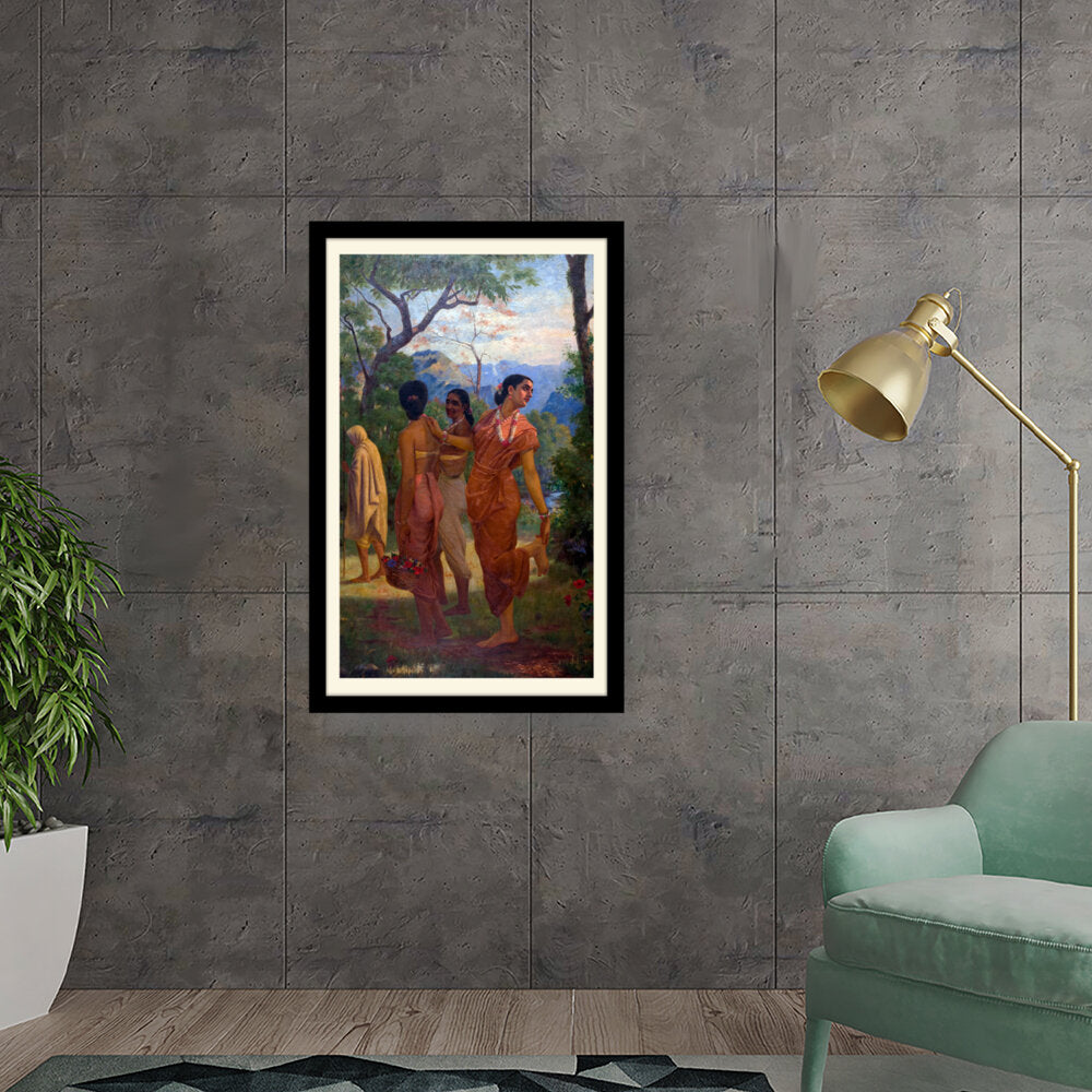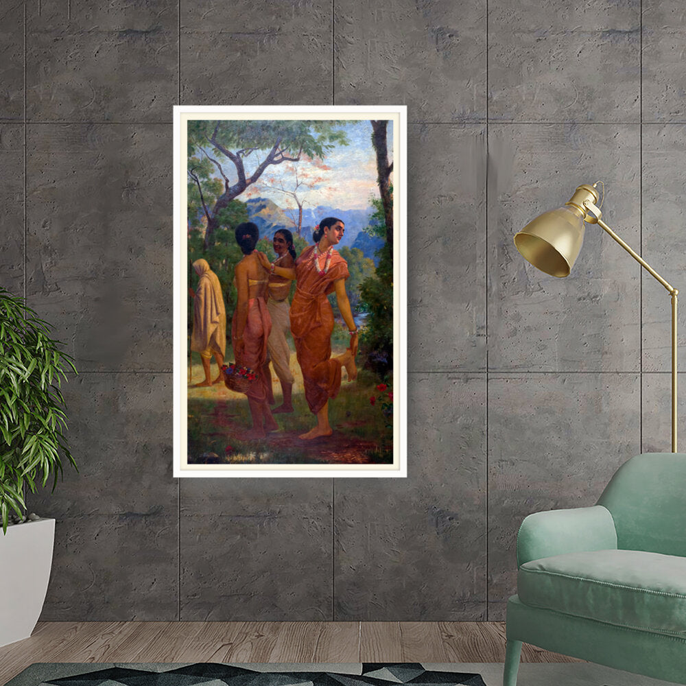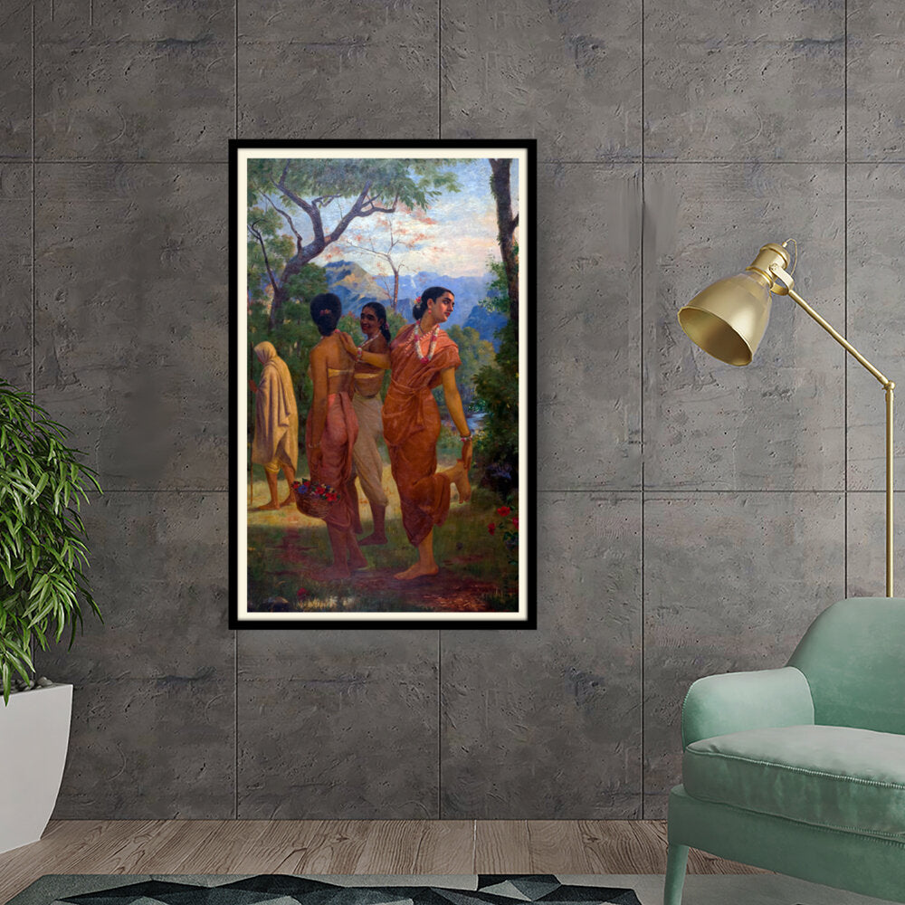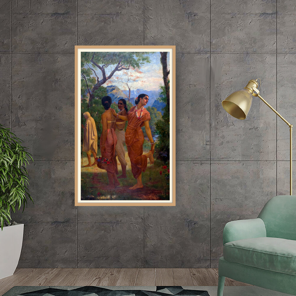This vibrant artwork features women in traditional attire amidst a lush landscape, celebrating the beauty of culture...