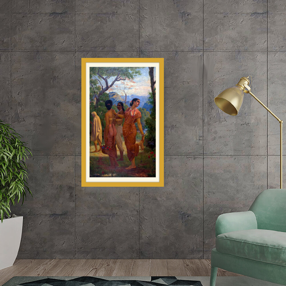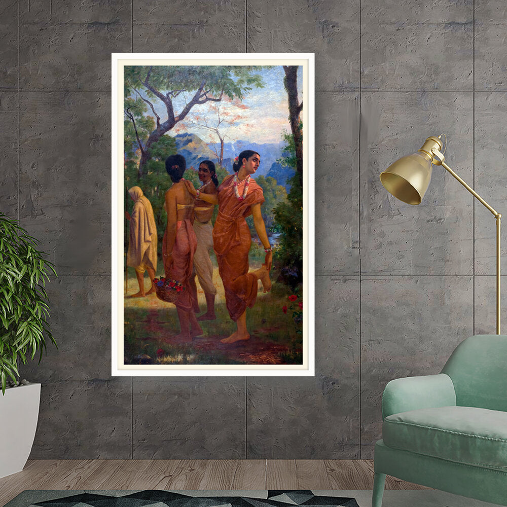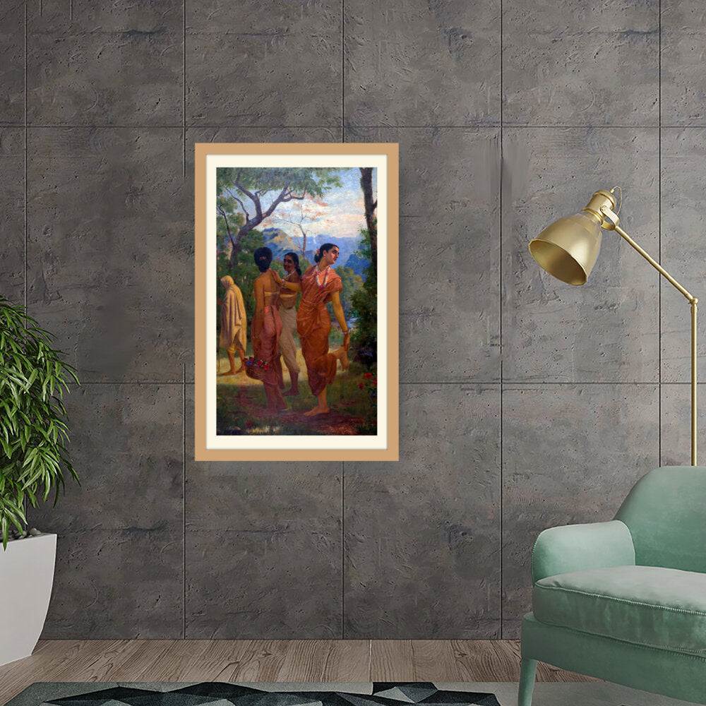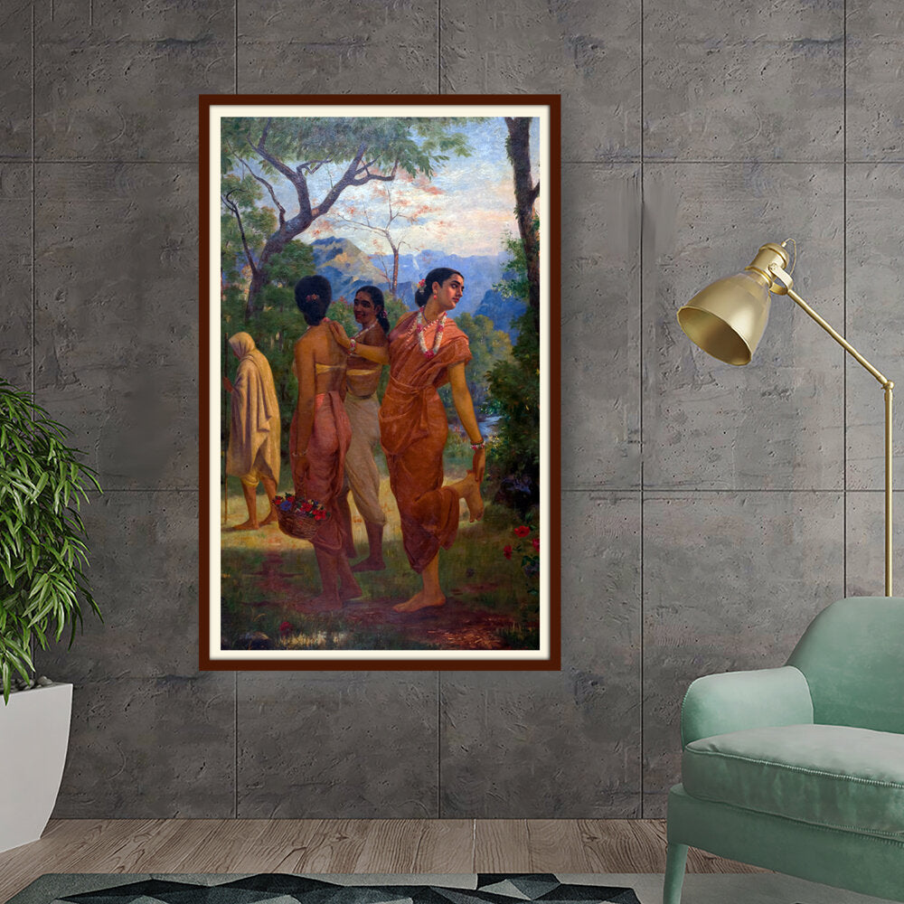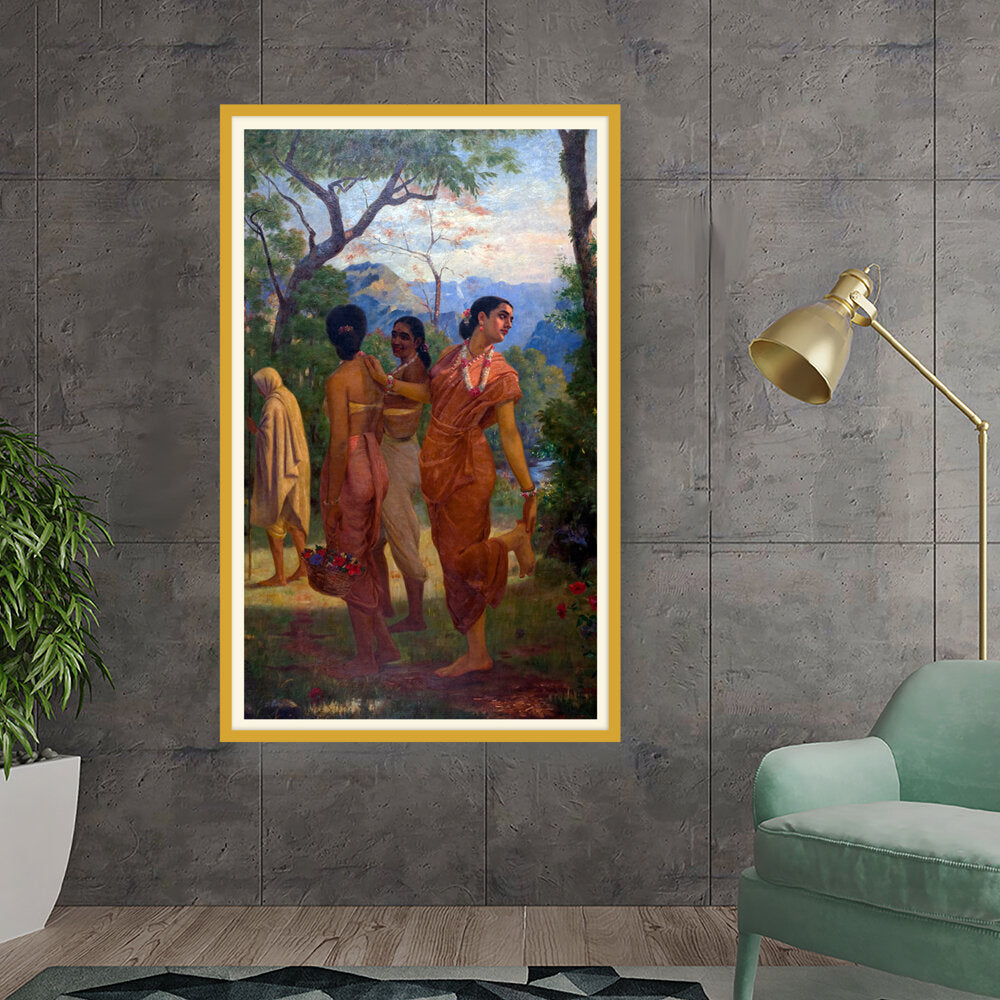 This vibrant artwork features women in traditional attire amidst a lush landscape, celebrating the beauty of culture...