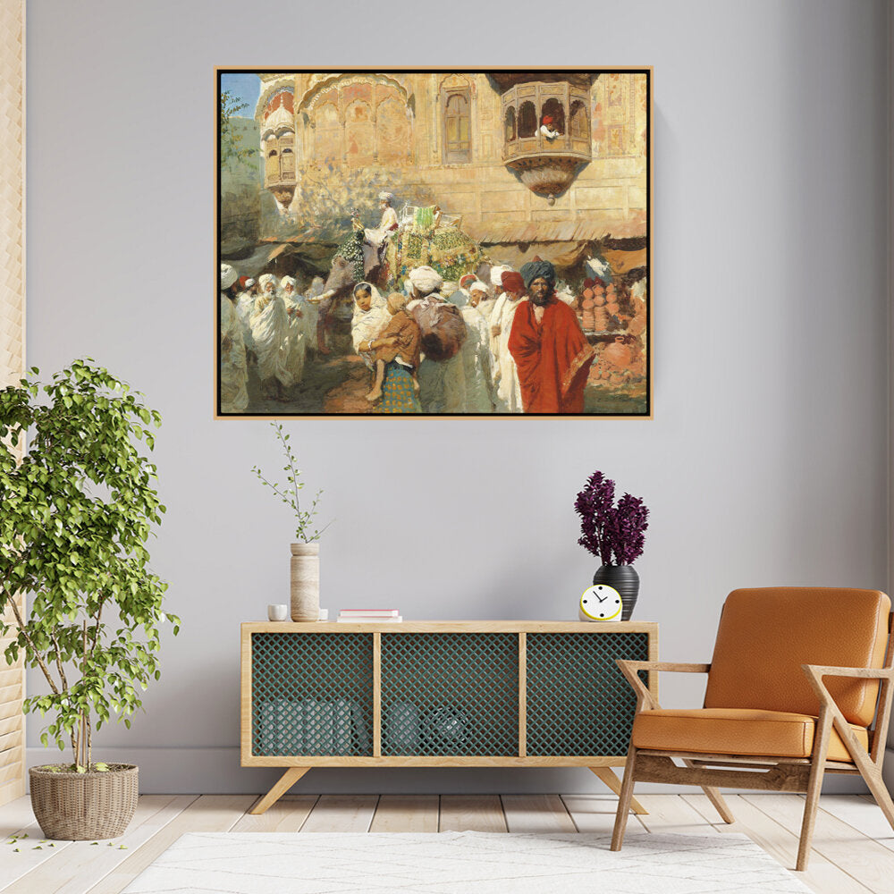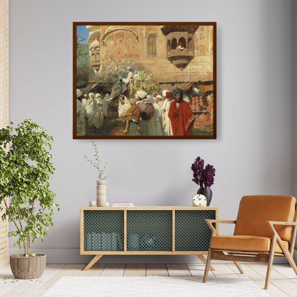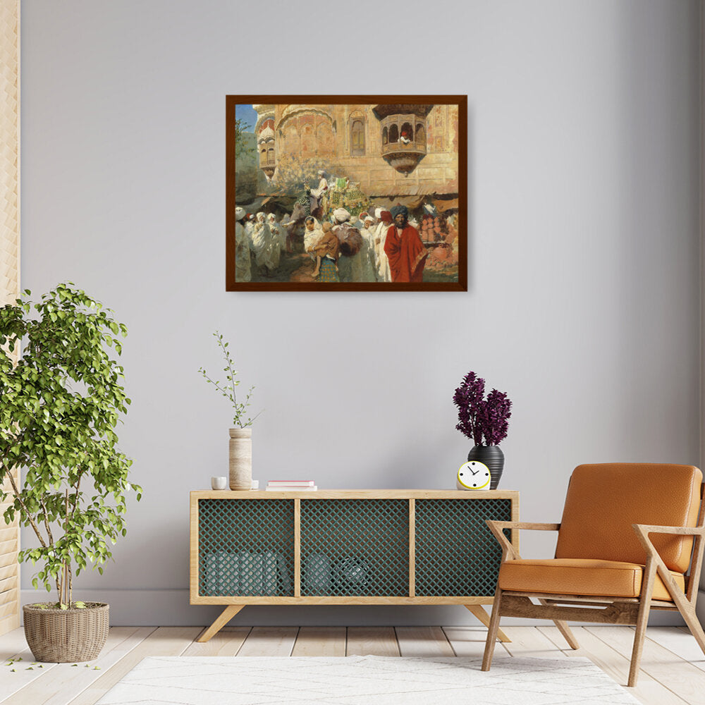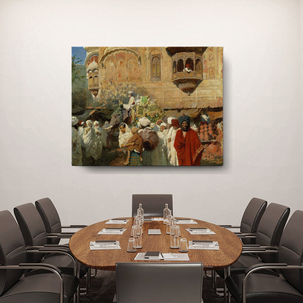 A Street In Jodhpur, India by Edwin Lord Weeks is a popular painting by the artist which represents a street of Jodhpur which is in its crowded state, depcited by the huge procession of the elephant carrying the man and being surrounded by a large flock of people.