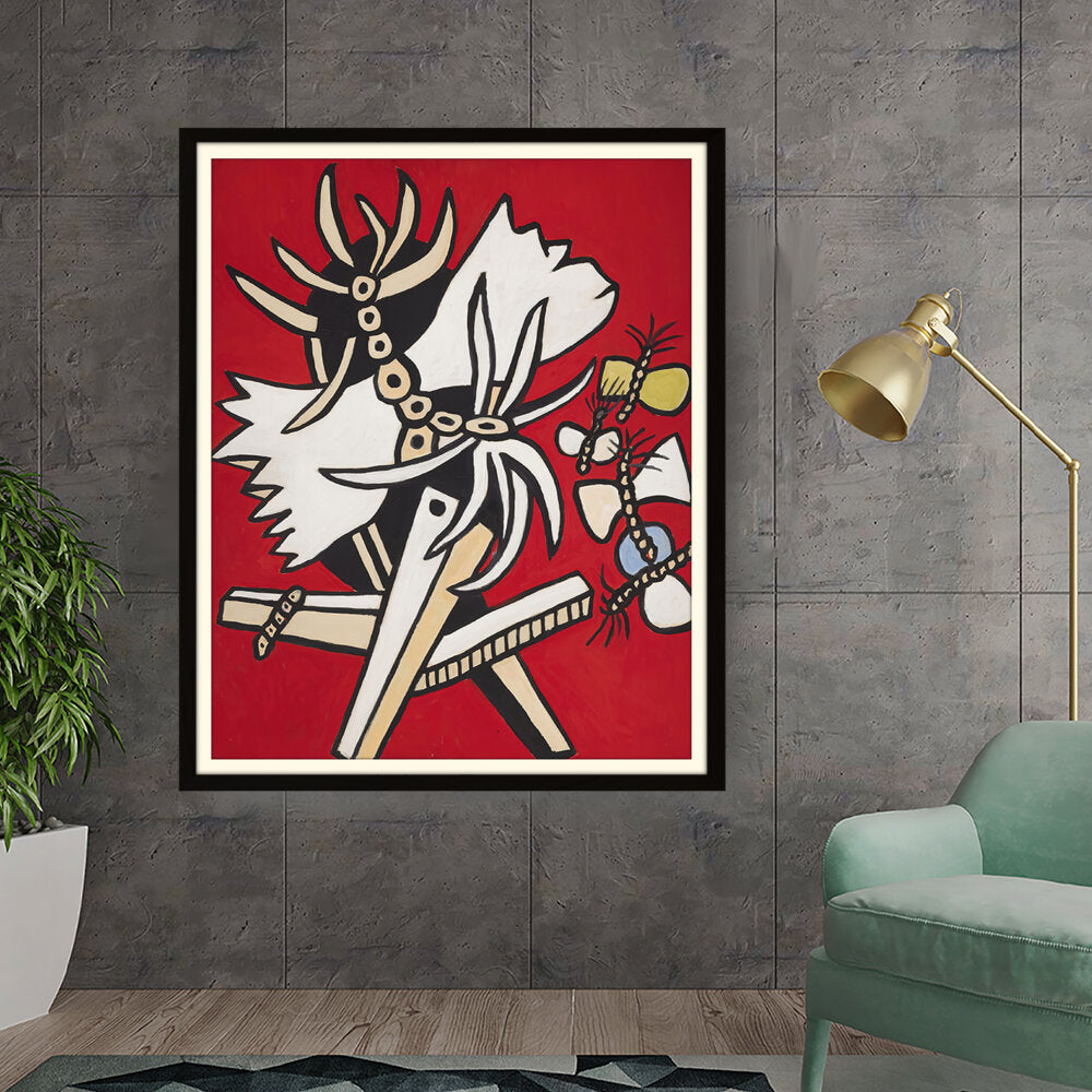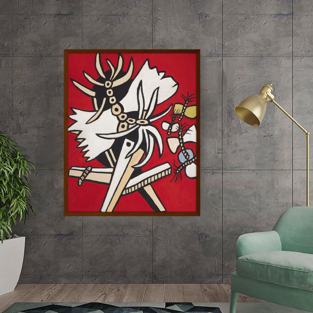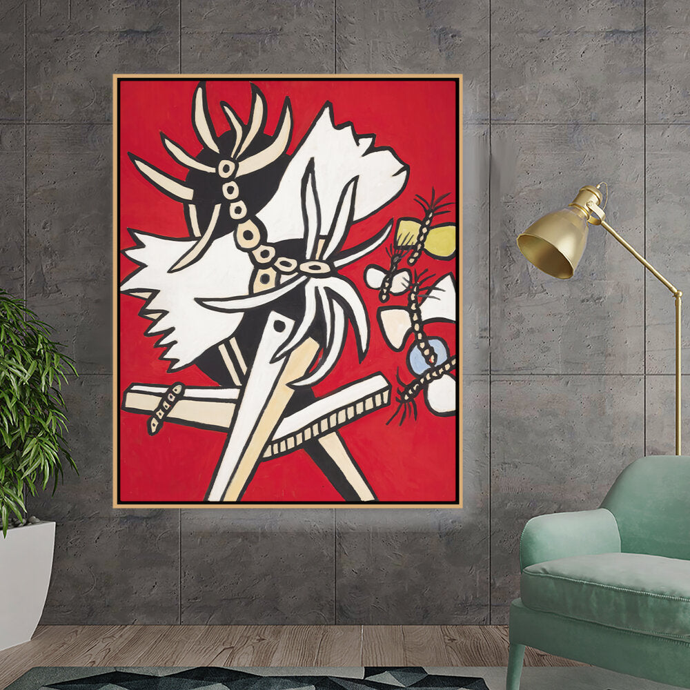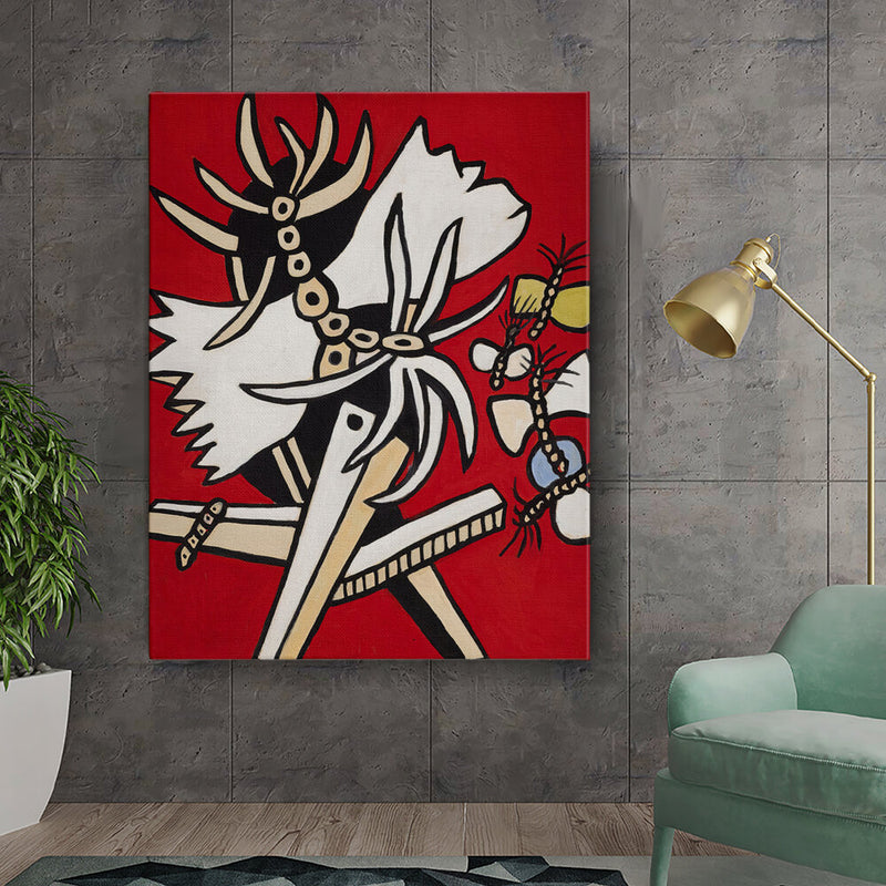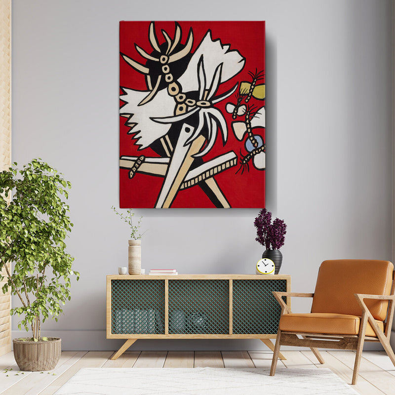 This vibrant abstract artwork features bold shapes and an energetic color palette, creating a striking visual impact. Perfect for adding a contemporary flair to any living space or creative environment.