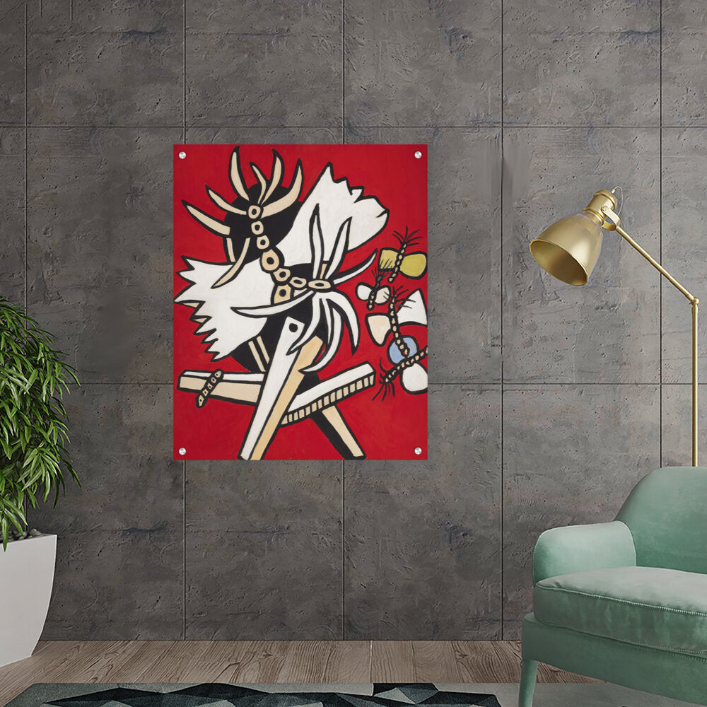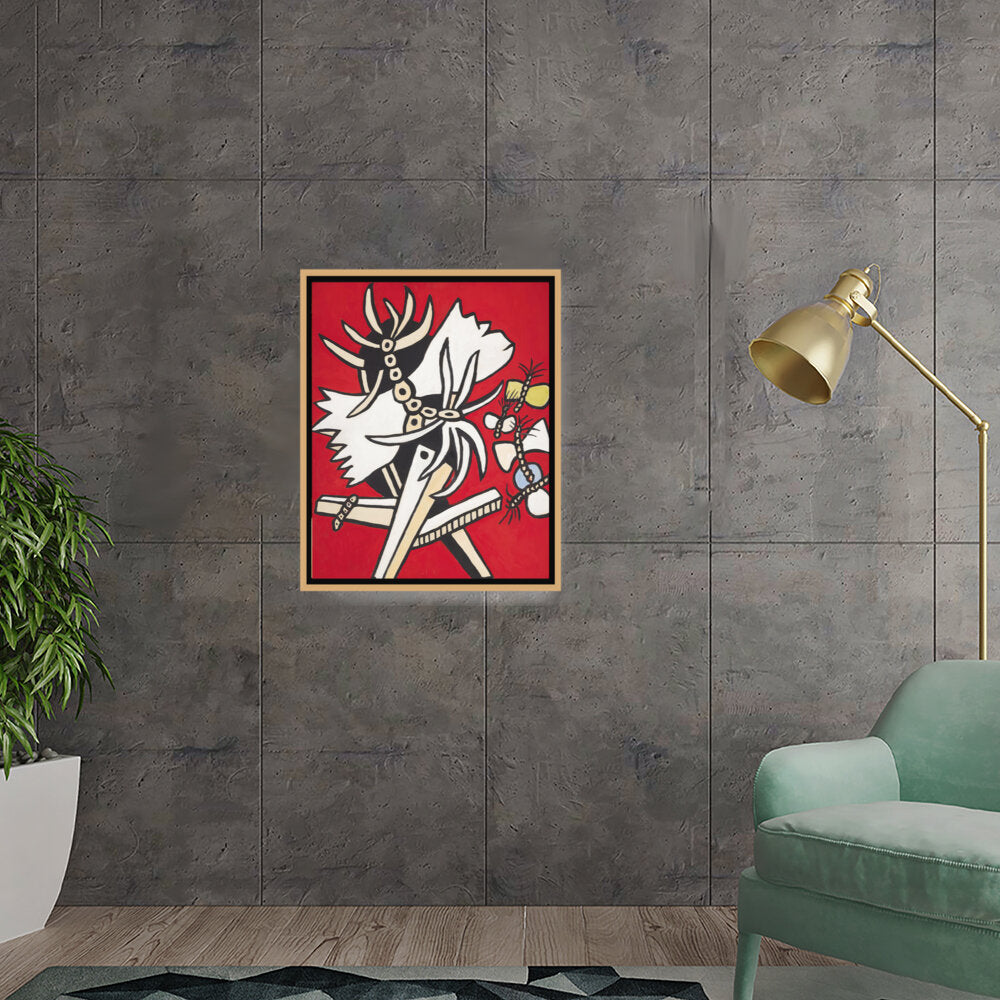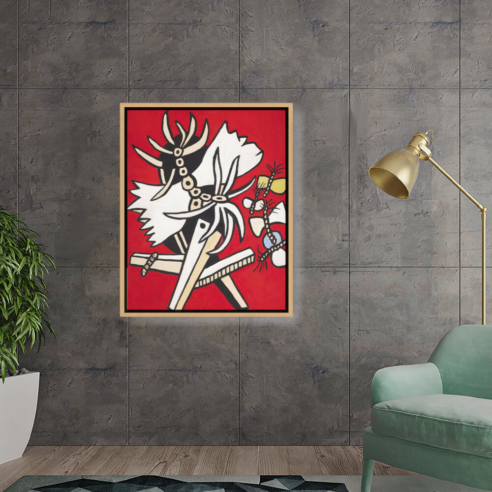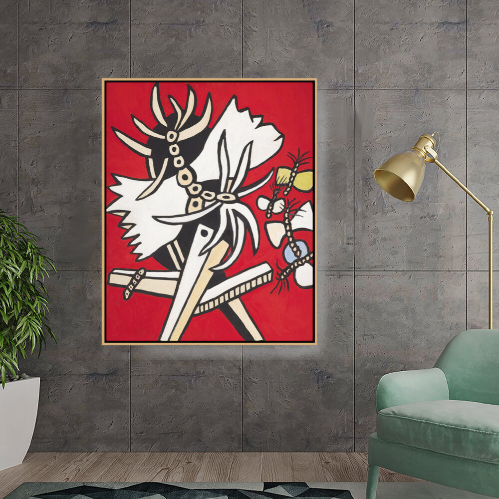 This vibrant abstract artwork features bold shapes and an energetic color palette, creating a striking visual impact. Perfect for adding a contemporary flair to any living space or creative environment.