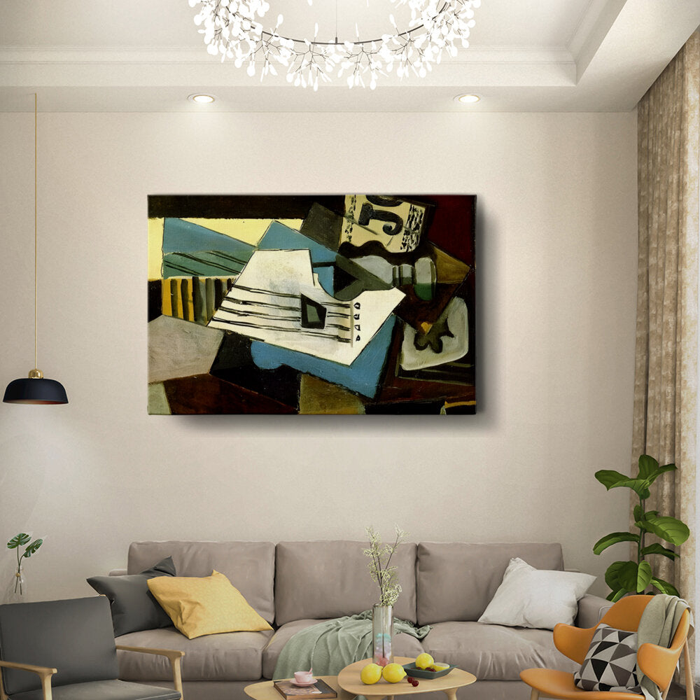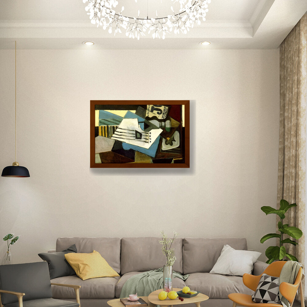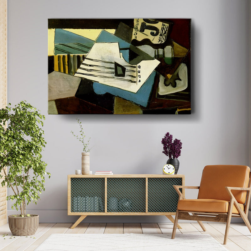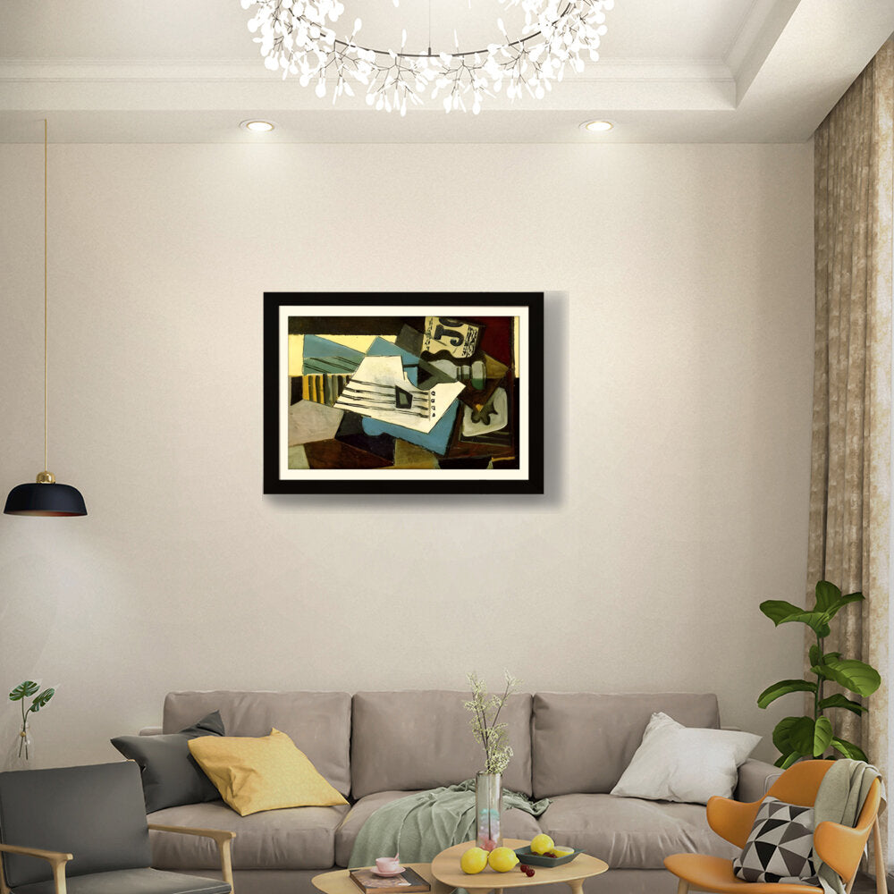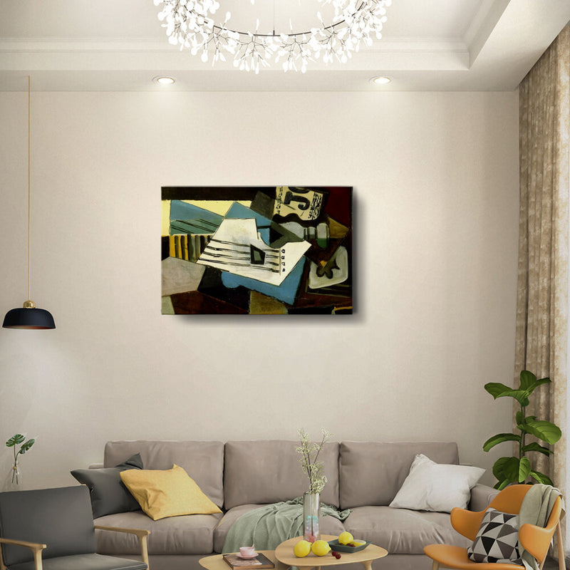This abstract painting features a dynamic composition of shapes and colors, intertwining forms that evoke a sense of movement. Its bold use of color and texture makes it a striking addition to any modern space.